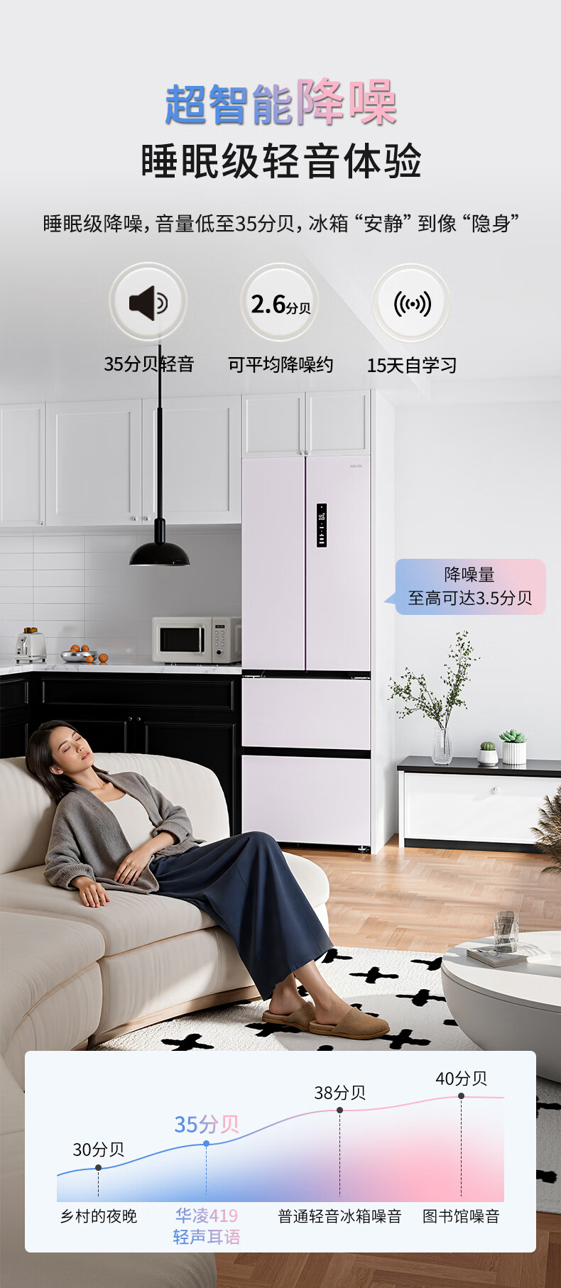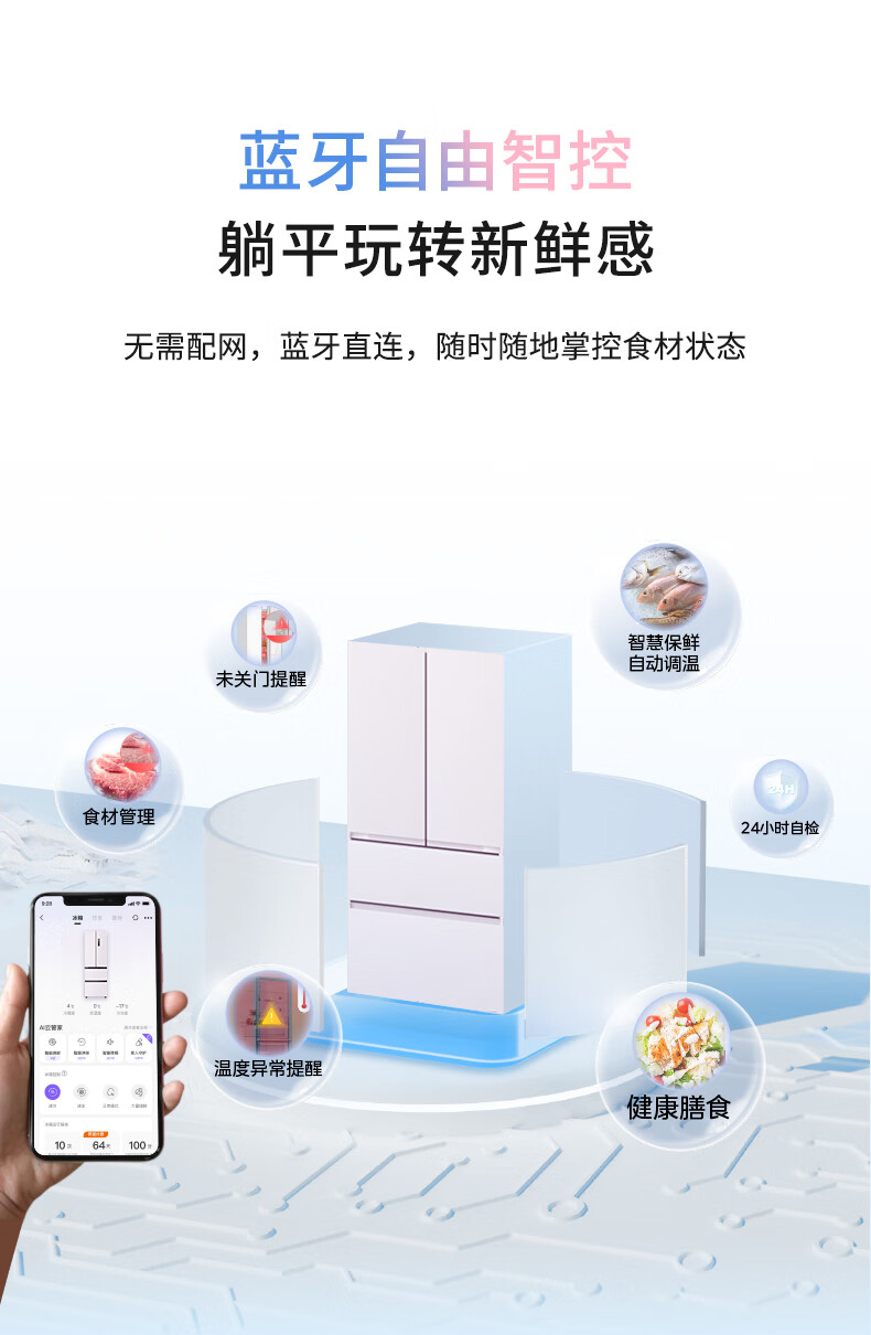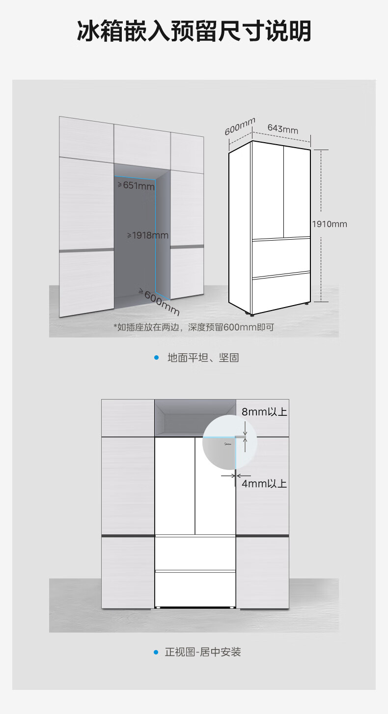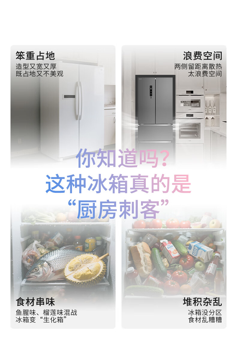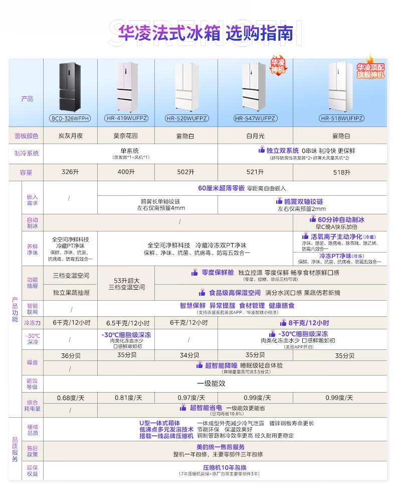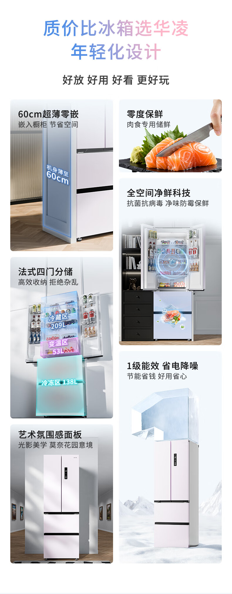 华凌美的出品400L法式多门60cm超薄零嵌入一级能效双变频净味风冷无霜家用电冰箱HR-419WUFPZ国家补贴