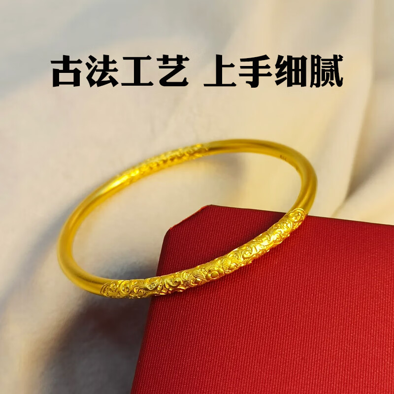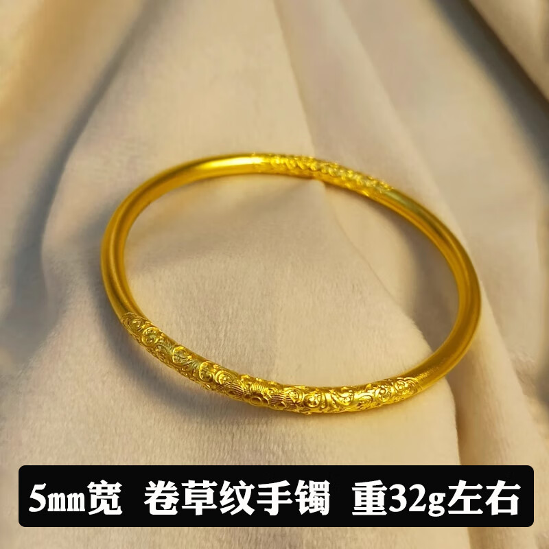 越南沙金手镯古法传承轮胎宽版手镯女仿真黄金实心小众 轮胎手镯内径62:(130-165斤)