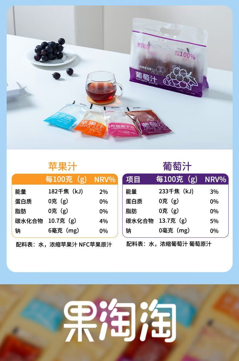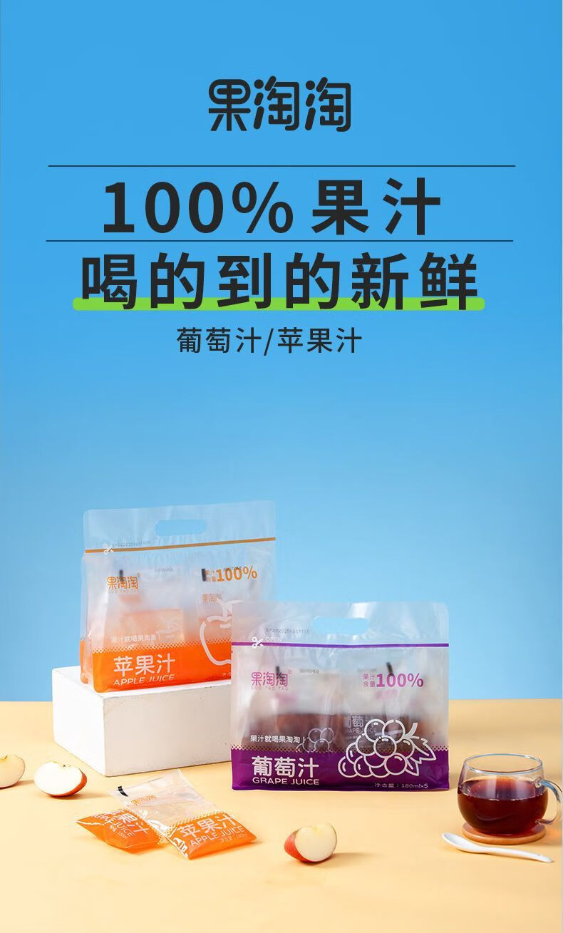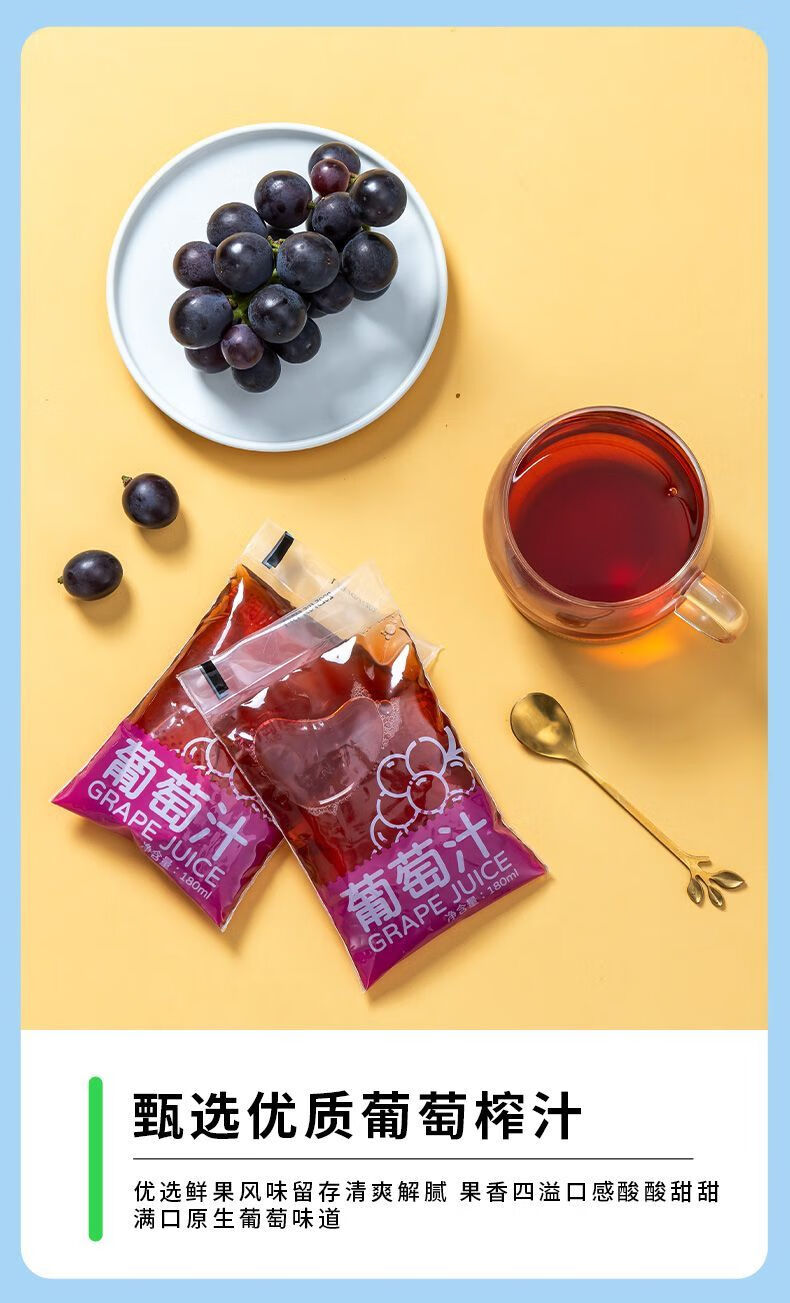 美意颂果淘淘葡萄汁果汁饮料180ml5袋多种营养清爽解腻夏天 葡萄汁1大袋【180ml*5袋】