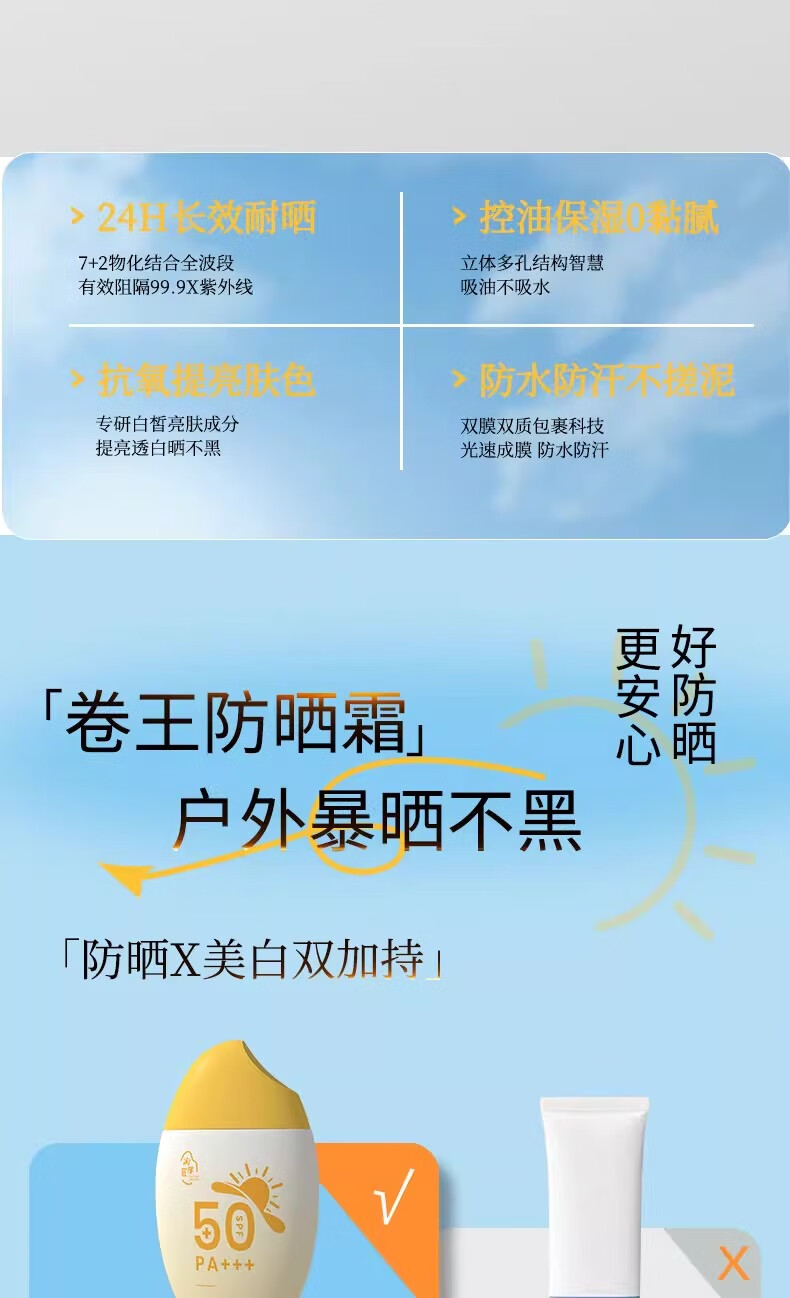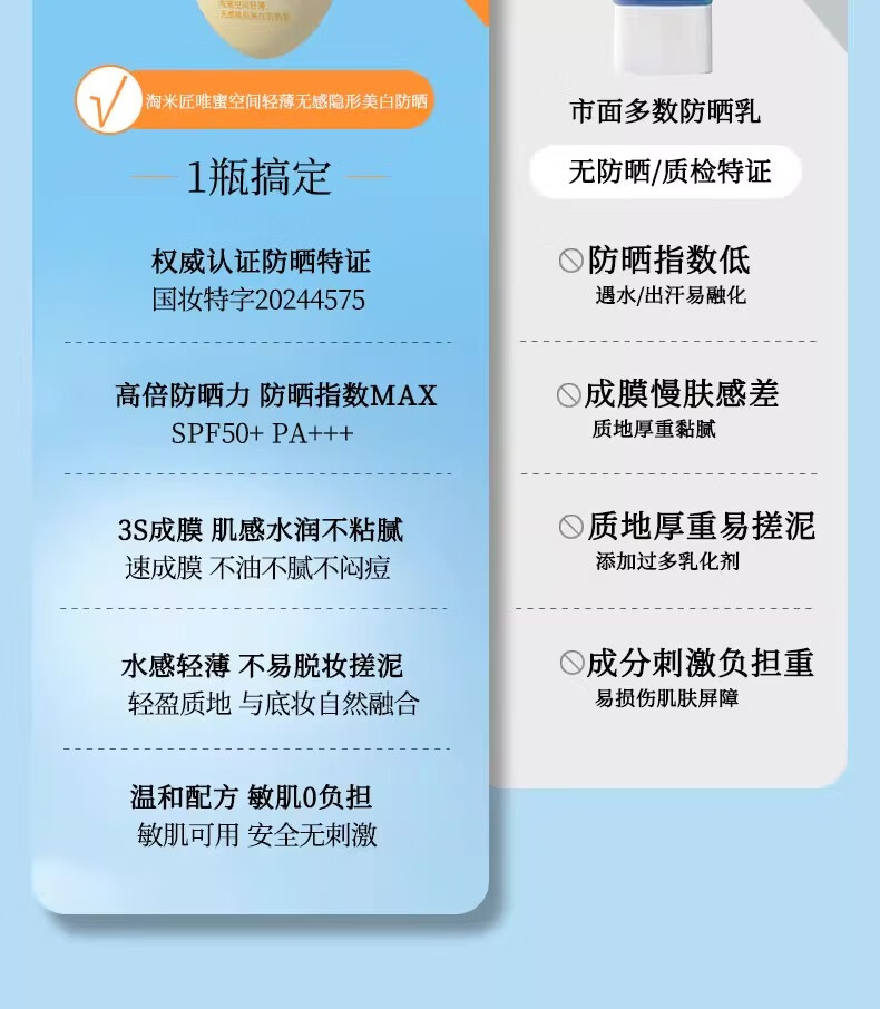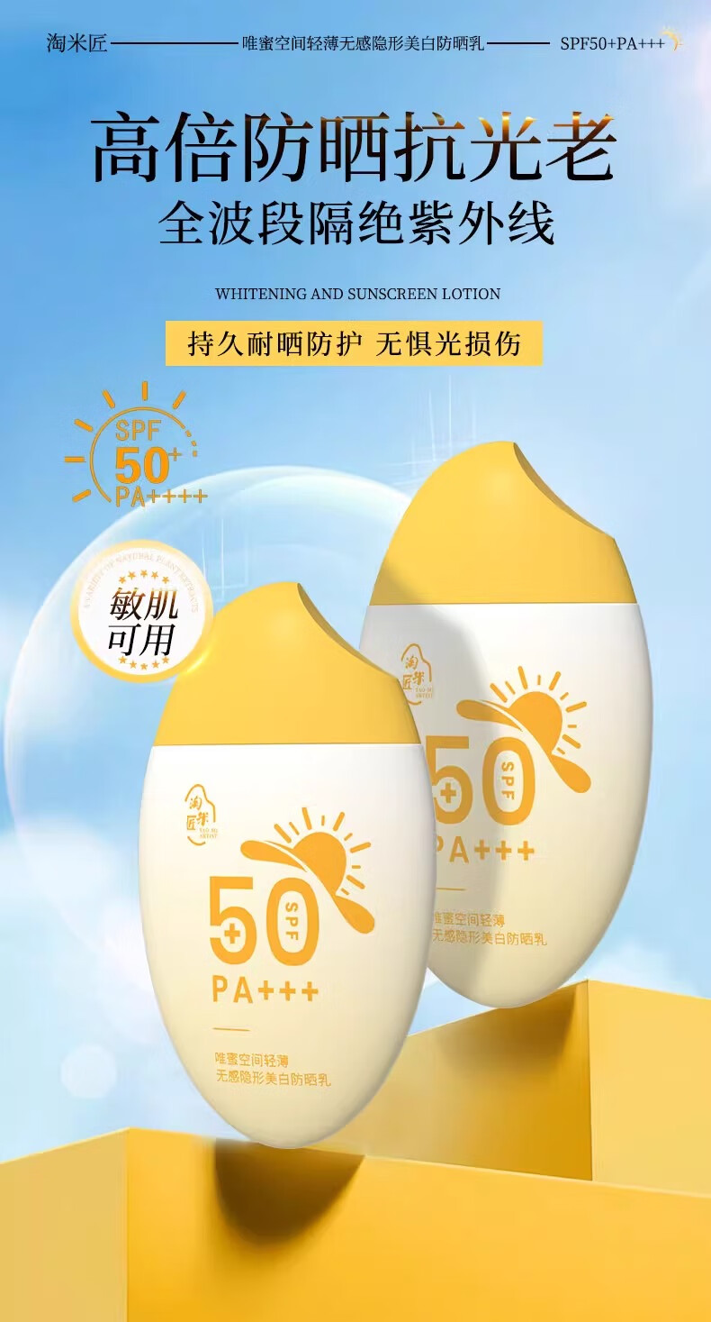 淘米匠防晒乳 防水防汗防紫外线隔离晒伤高倍防晒霜 美白提亮肤色 【高倍防晒】防晒乳50ml*1瓶