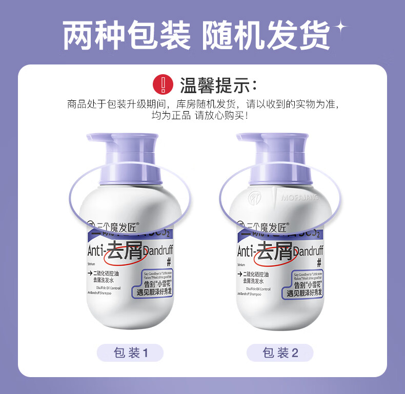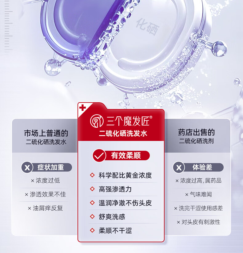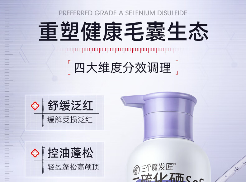 三个魔发匠二硫化硒洗发水400ml去屑止痒控油持久蓬松清痘男女士洗头膏露第1 去屑 400ml*1瓶 二硫化硒体验装