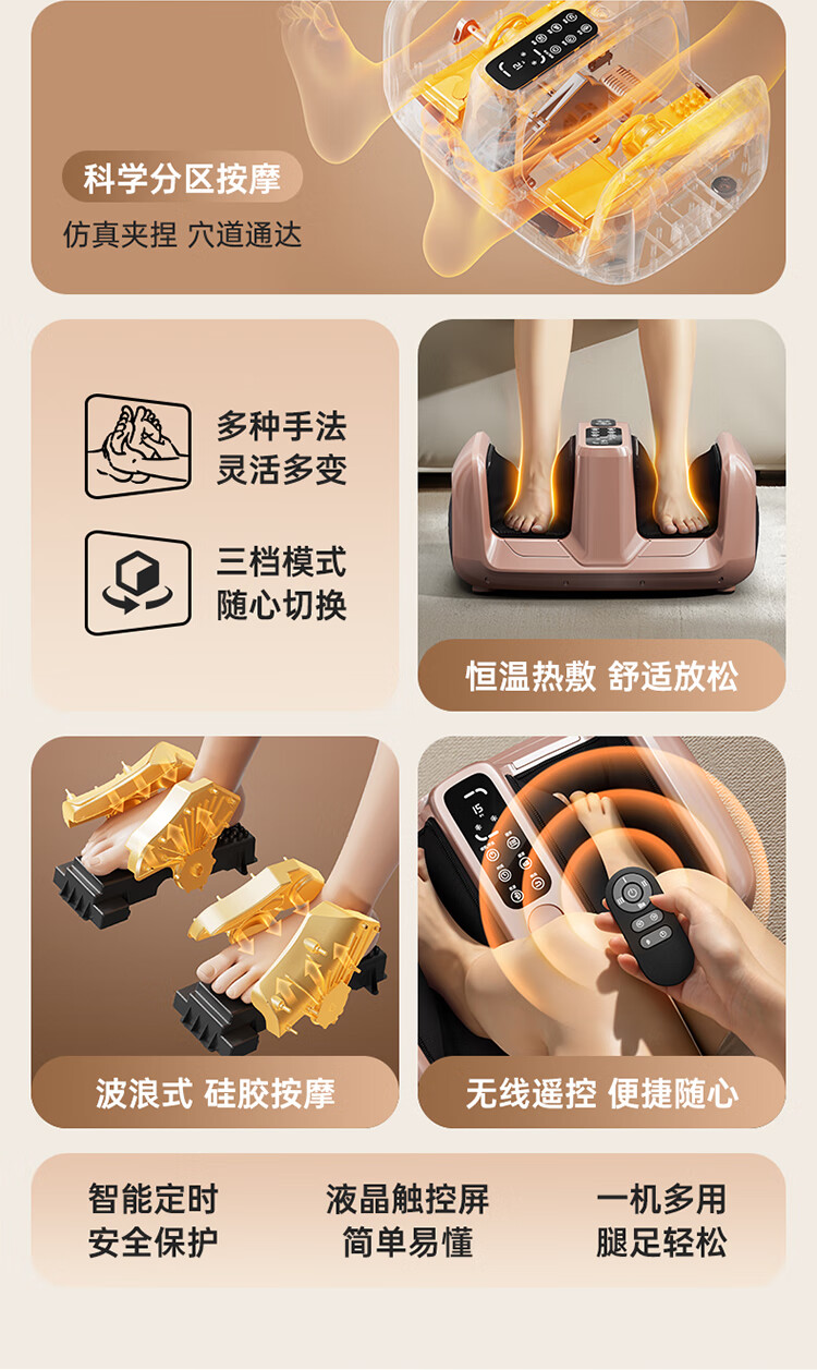 奥克斯足疗机腿部按摩器脚底足底脚部腿部小腿肌肉按摩仪足部酸痛全自动揉捏热敷经络疏通神器中秋节送礼 【2025全新升级】波浪式硅胶夹捏+滚轮刮痧按摩