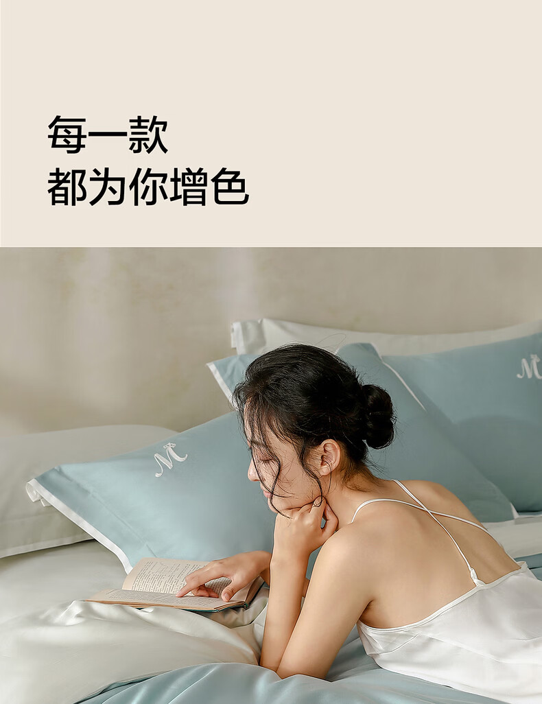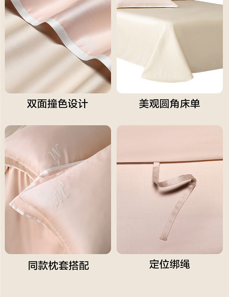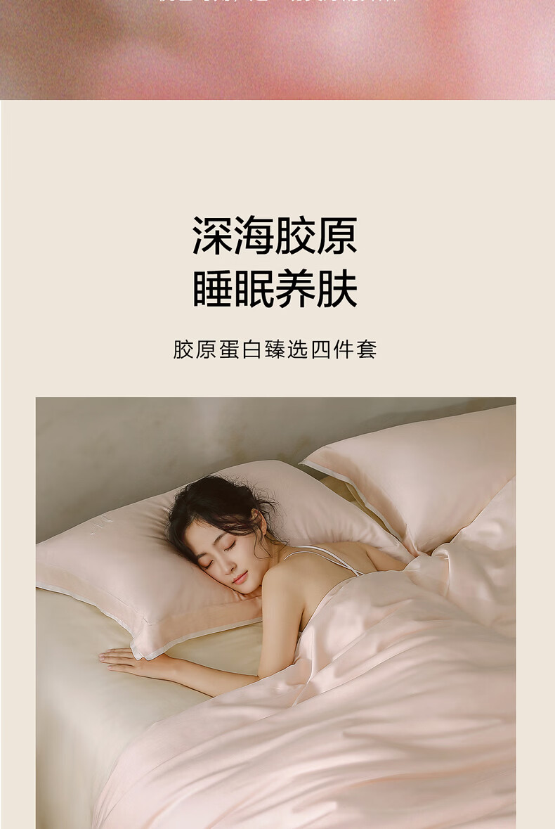 水星家纺床上深海胶原蛋白天然养肤科技四件套天丝棉a类轻奢新品套件1.8x2米床粉