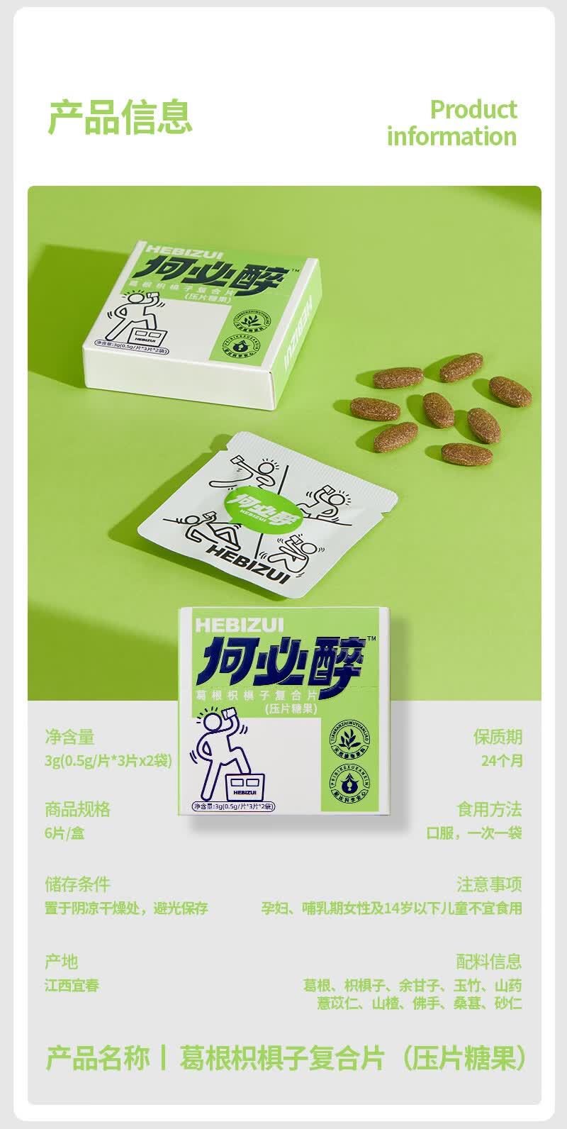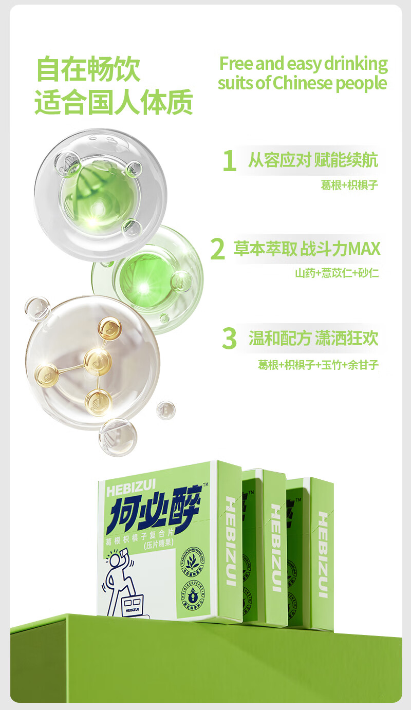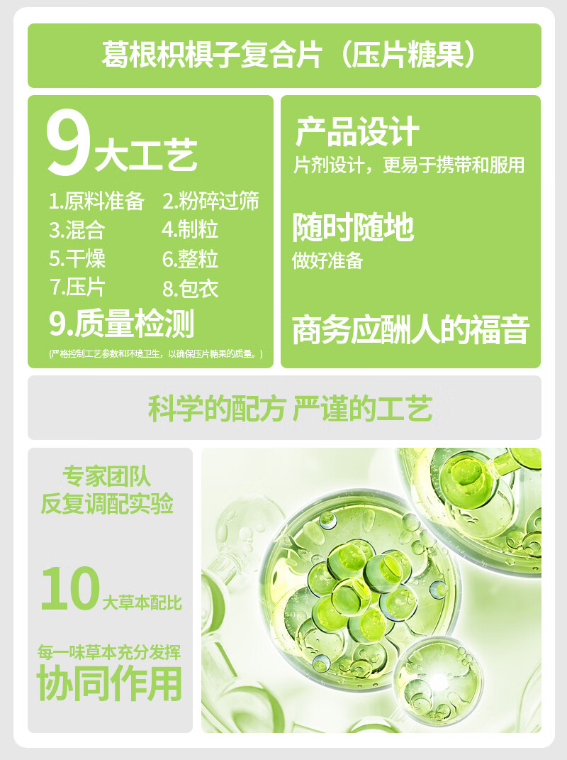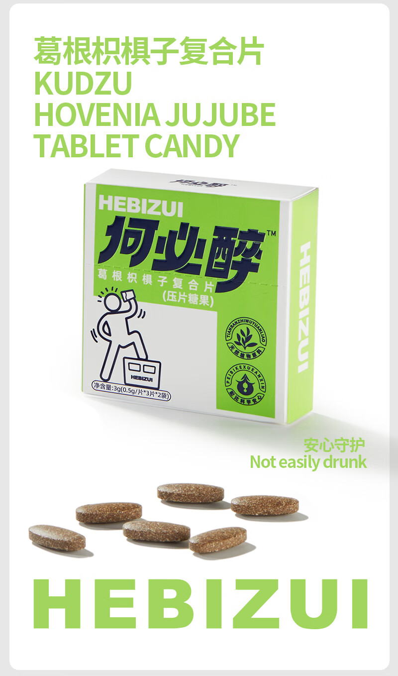 何必醉葛根枳椇子复合片压片糖果解酉酶喝酒应酬神器快速非药便携 【10盒60片不断片】 囤货必选
