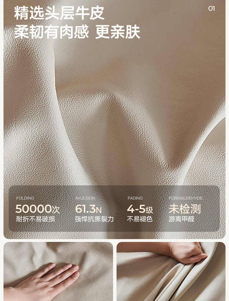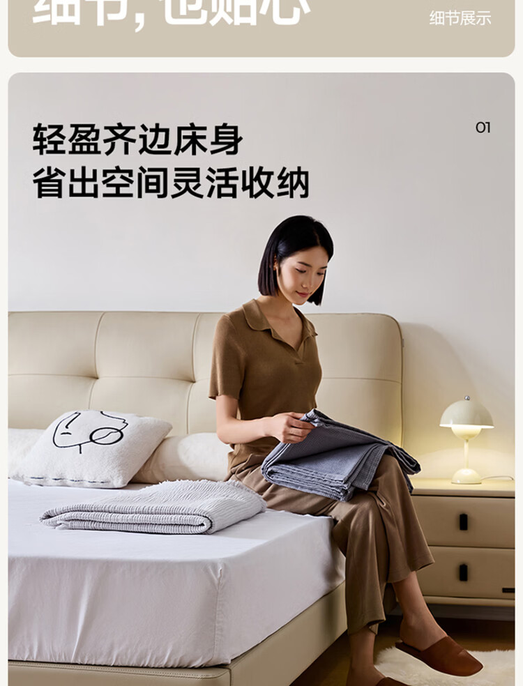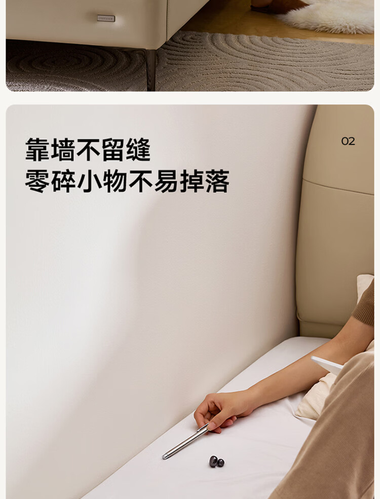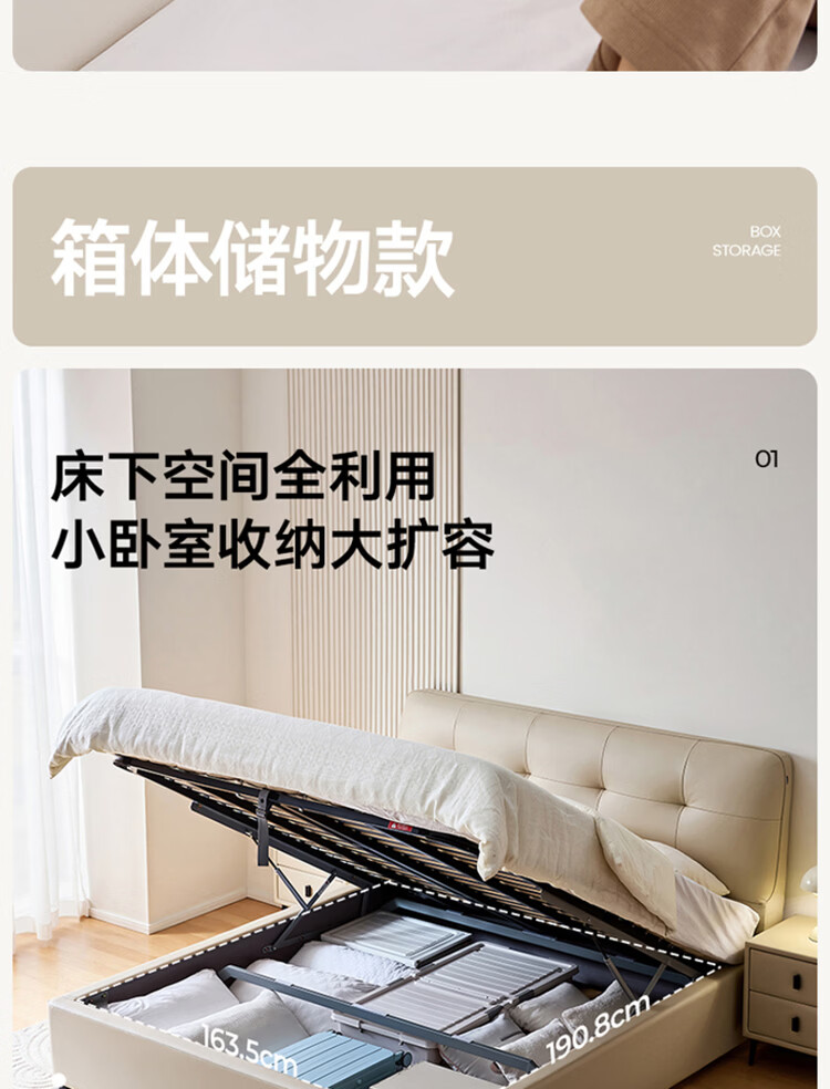 全友家居现代简约茉伊真皮床轻奢高级感2026年新款头层牛皮软包靠背床 【牛皮 | 米白 | 平移+上翻开合电动储物款】 1.8米x2米 床+床头柜*1