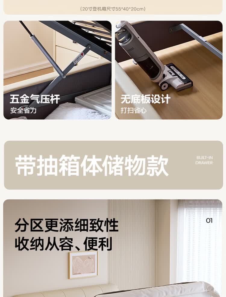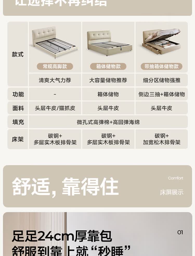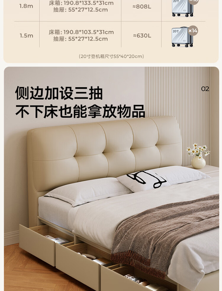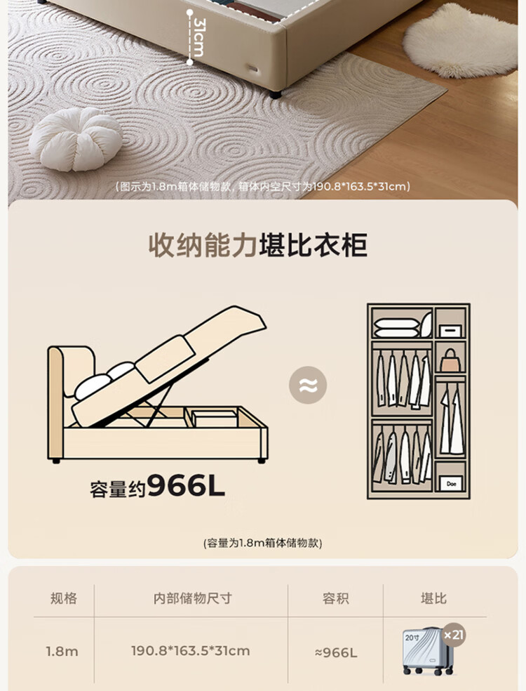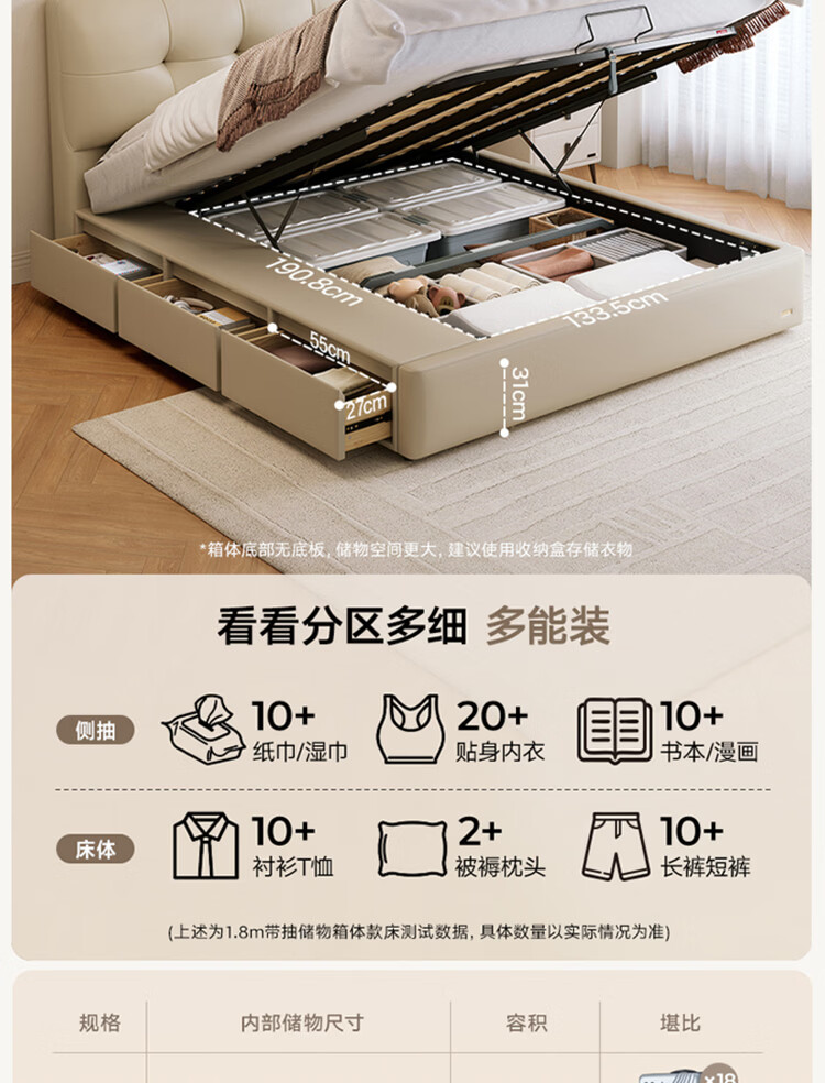 全友家居现代简约茉伊真皮床轻奢高级感2026年新款头层牛皮软包靠背床 【牛皮 | 米白 | 平移+上翻开合电动储物款】 1.8米x2米 床+床头柜*1
