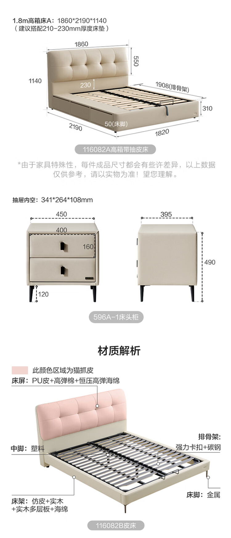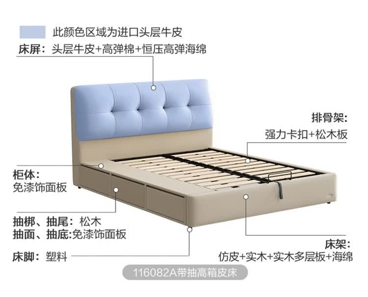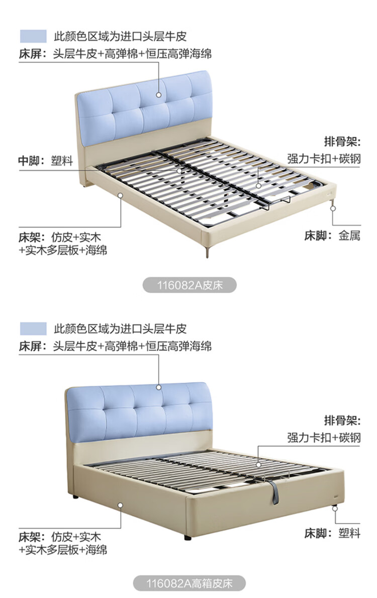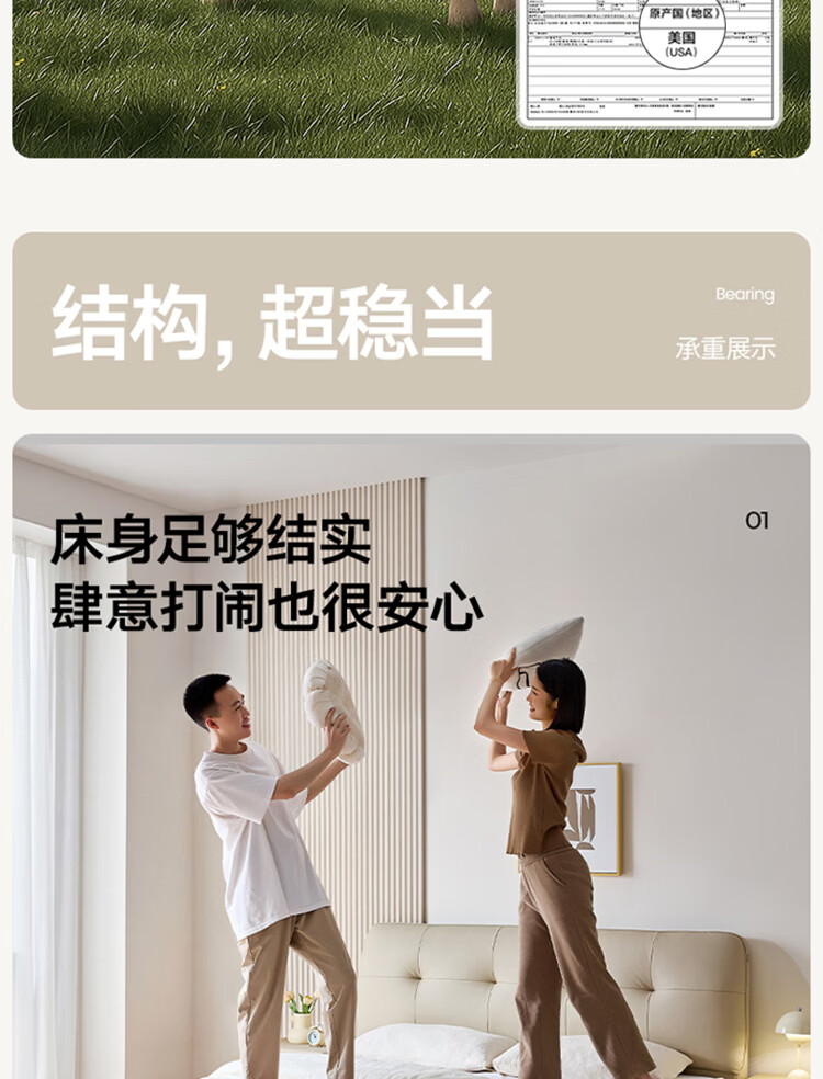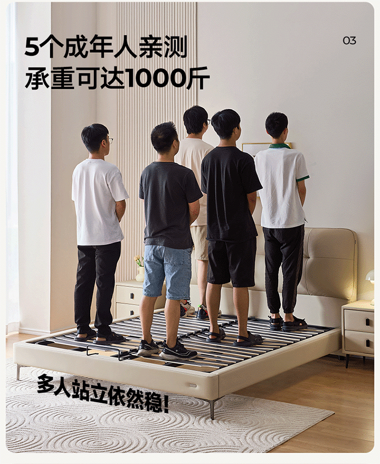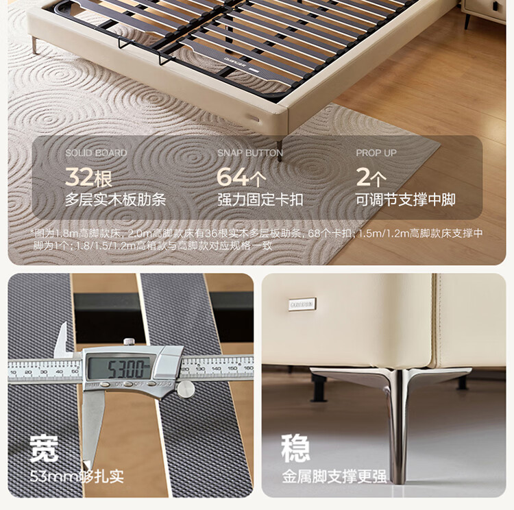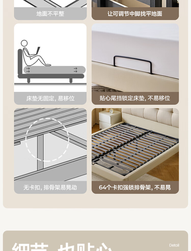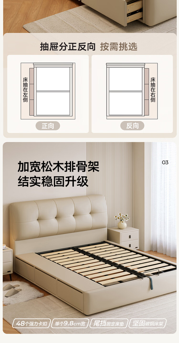全友家居奶油风茉伊真皮床轻奢高级感2026年新款头层牛皮软包靠背床 【猫抓皮 | 米白 | 高脚】 1.2米x2米 单床