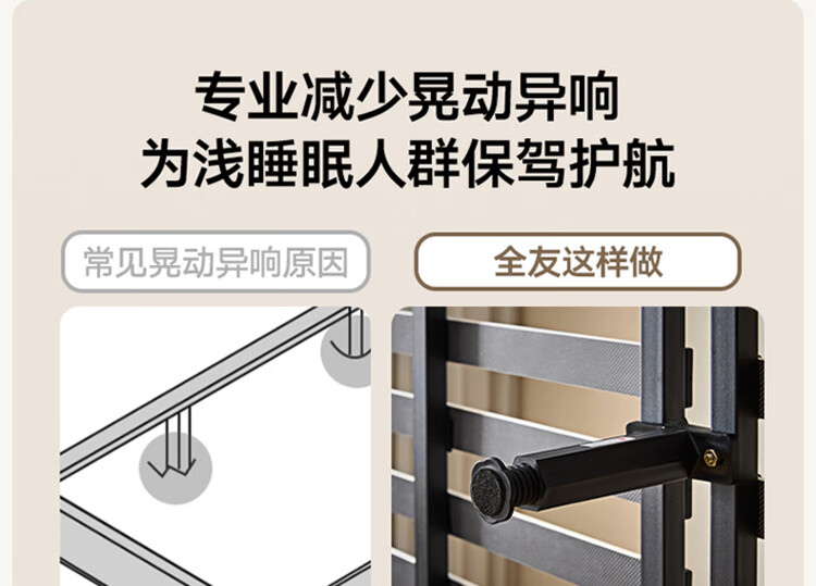 全友家居奶油原木风高脚床小户型家用卧室齐边双人大床床加床垫一整套 【奶油白+原木色】 1.5米x2米 单床