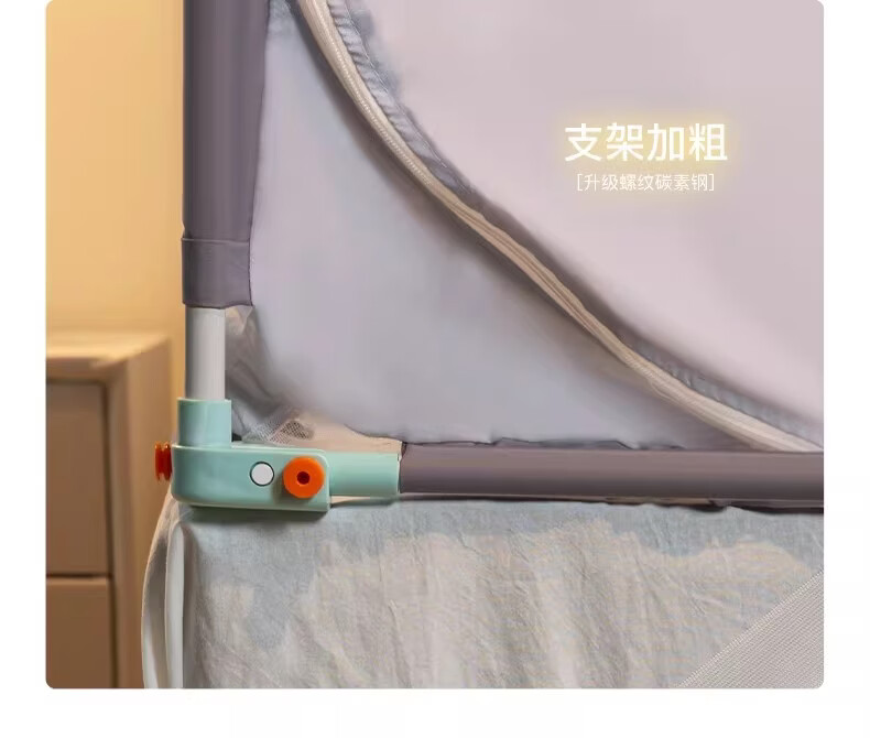 无印良品防摔蚊帐1.8x2米家用一体式免安装防蚊儿童防掉卧室全包底三开门 米色【防蚊防摔 一体式免安装】 200cm*180cm*170cm 适用于1.8米床【一体式免安装支架】