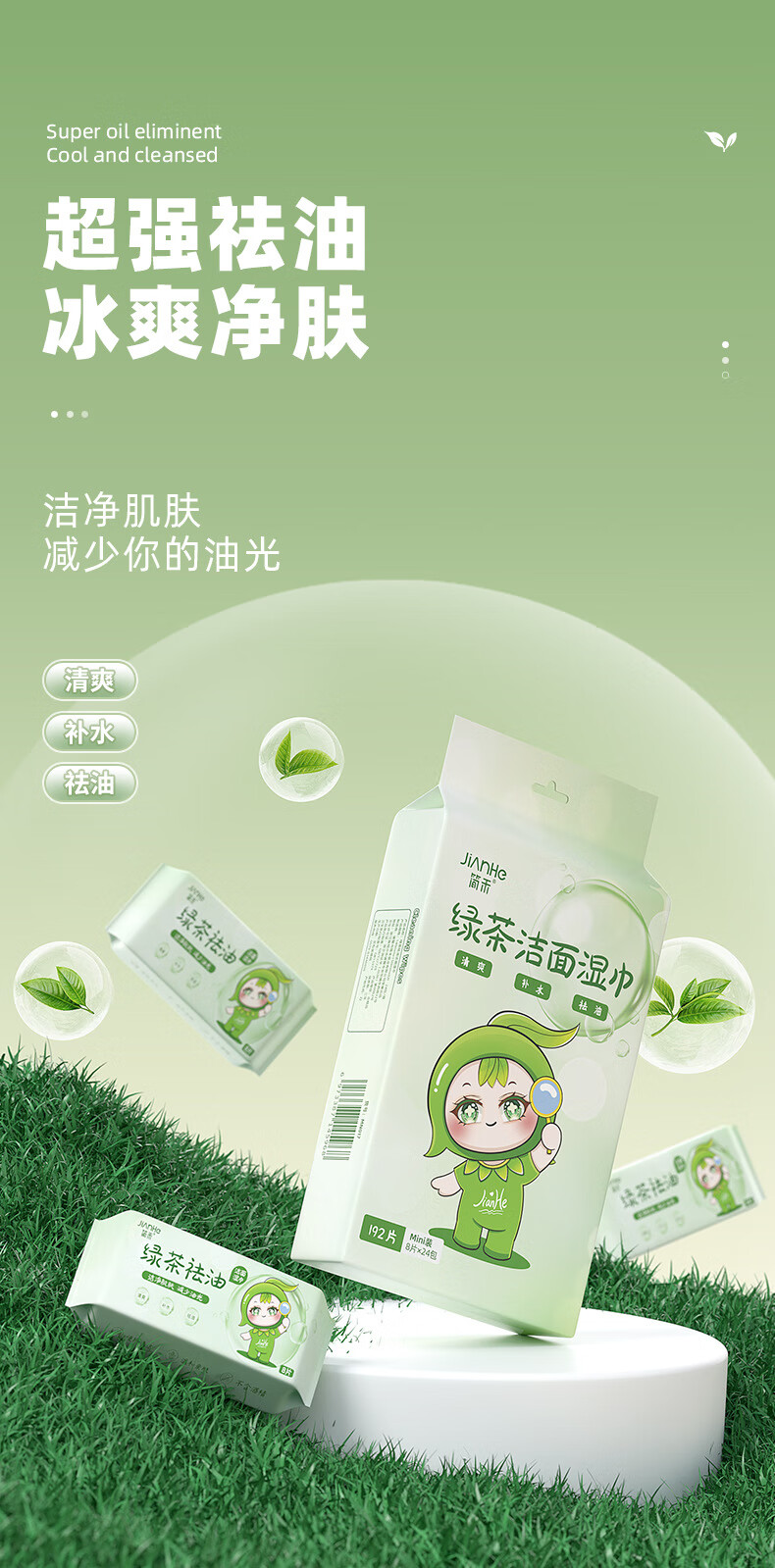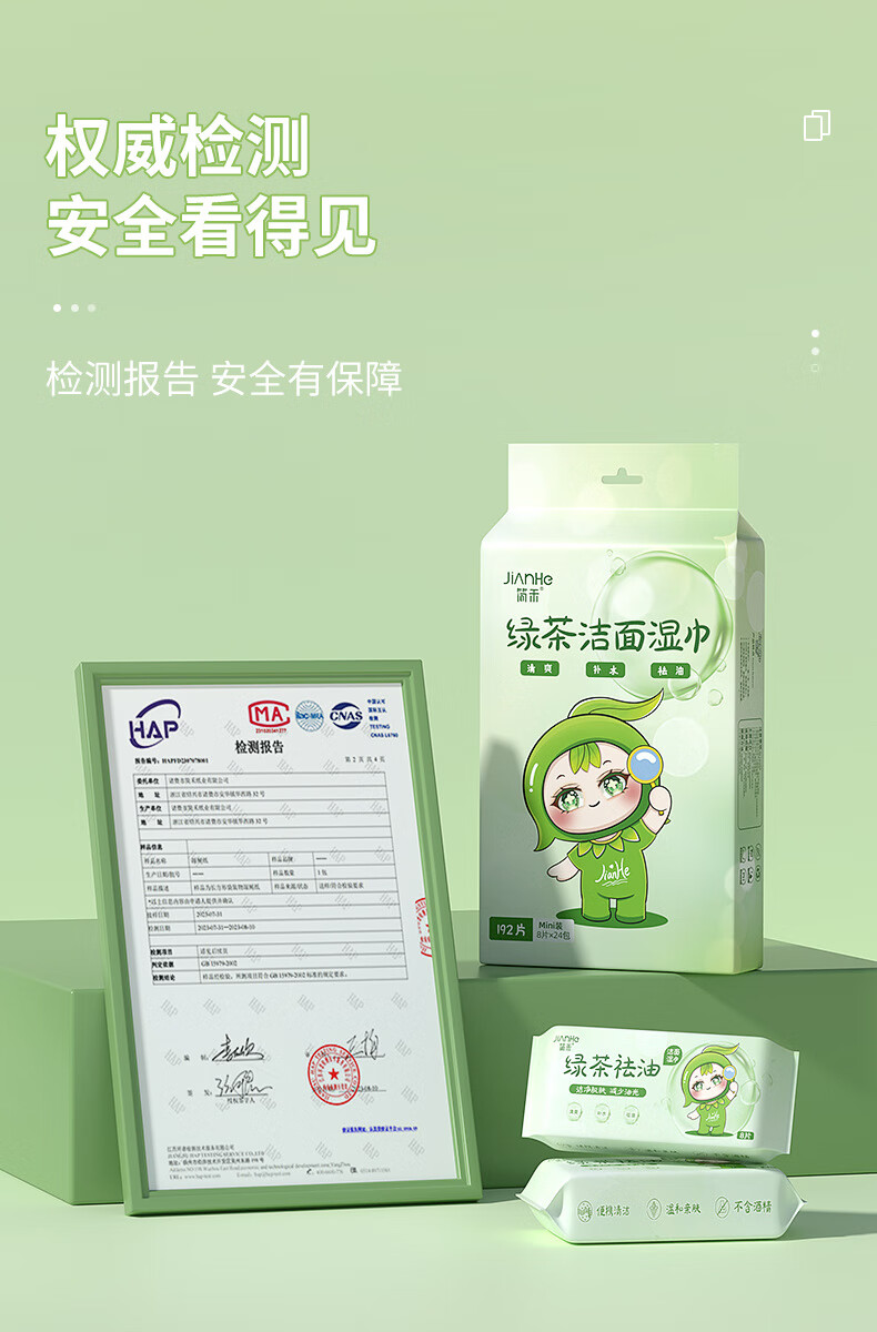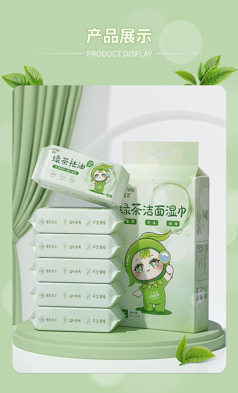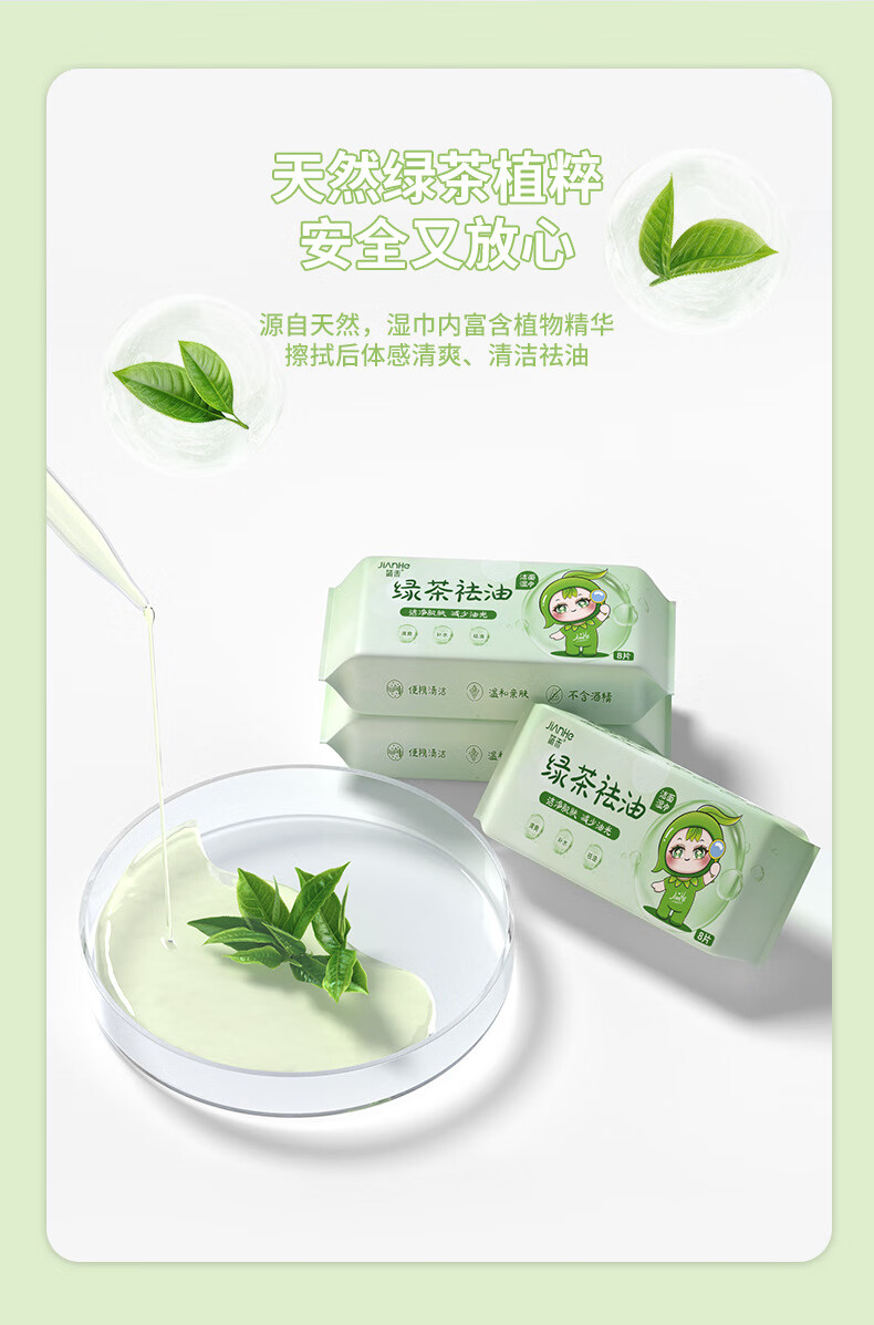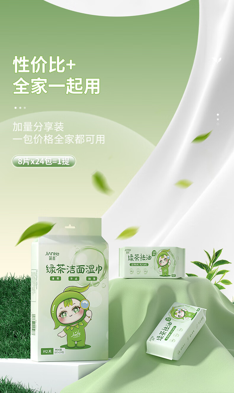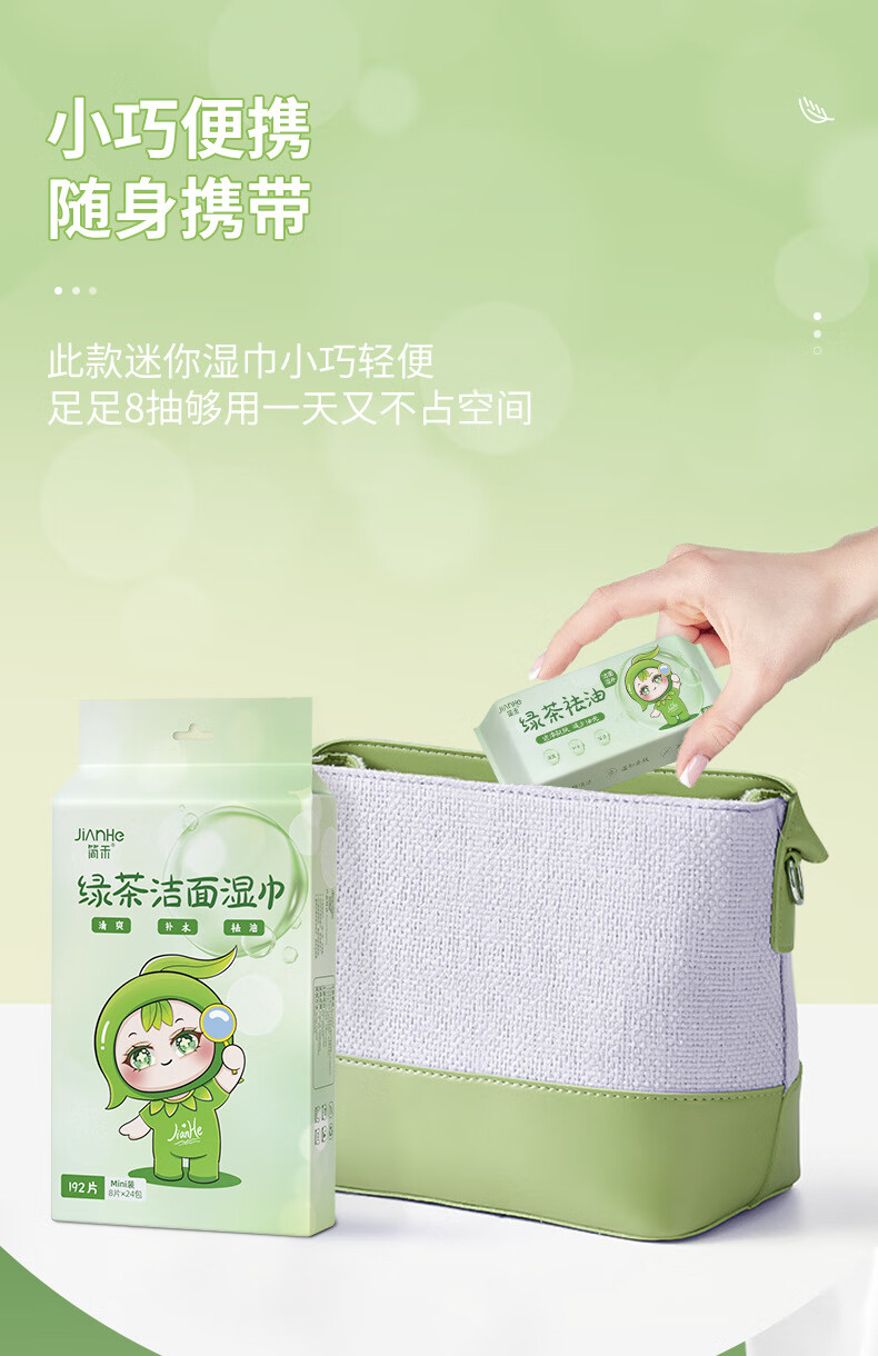 简禾洁面洗脸巾纯水湿纸巾迷你小包户外出行便携装绿茶祛油洁面湿巾 【绿茶祛油-出行必备】2提共48包