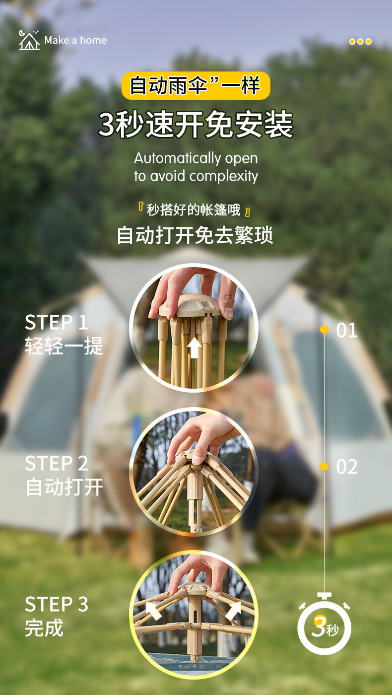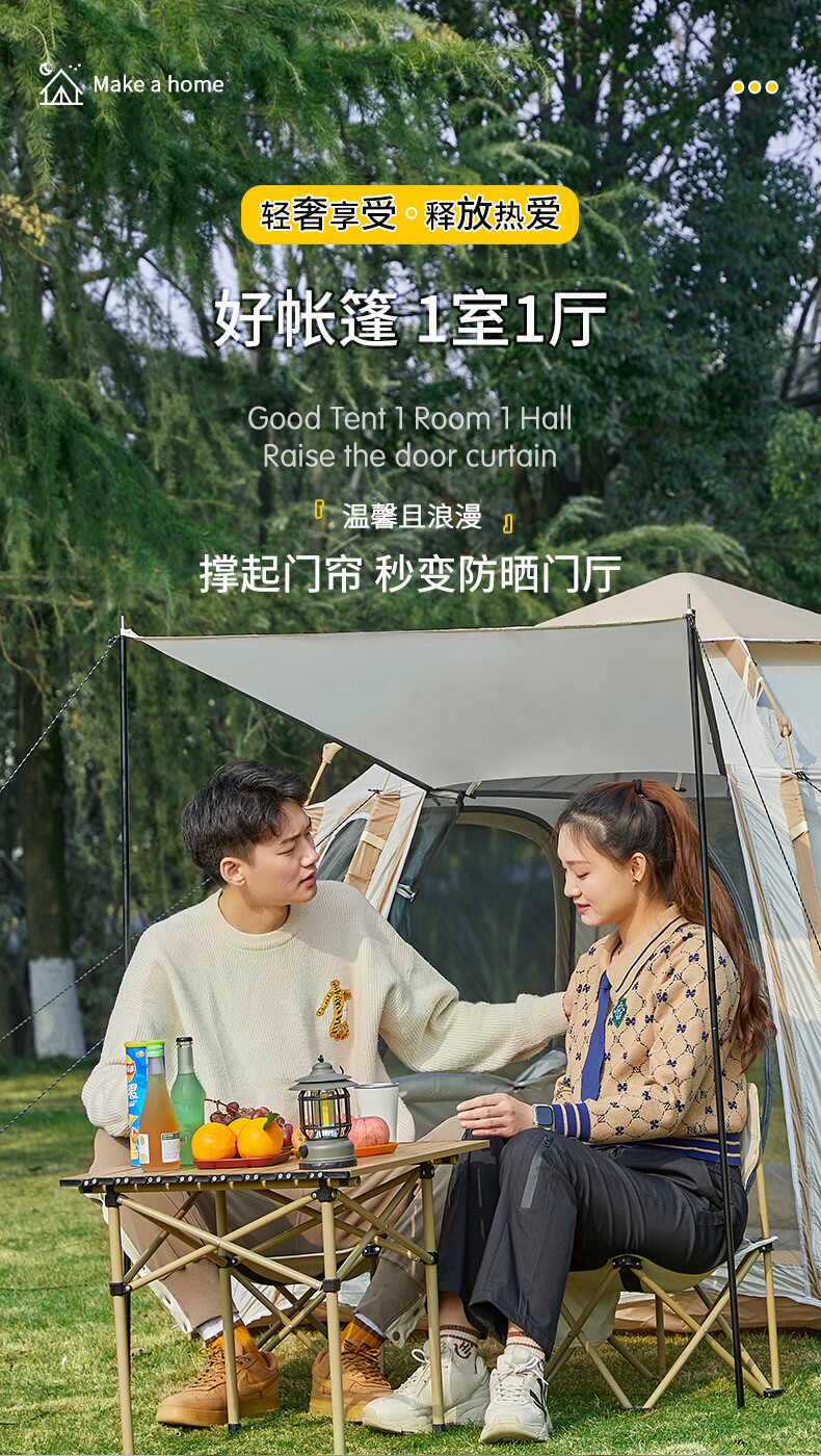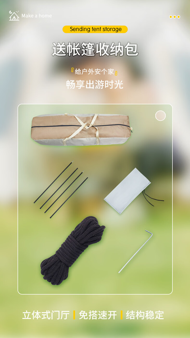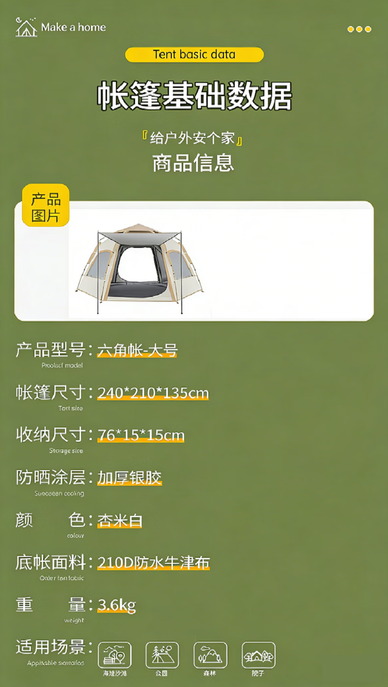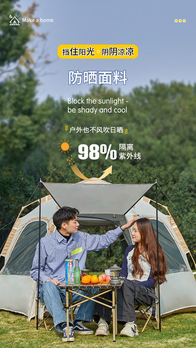 荒野七侠六角全自动速开帐篷户外露营防晒防雨3-4人家庭便携大空间 双门双窗-杏米白-全自动六角帐篷(适合4-6人)