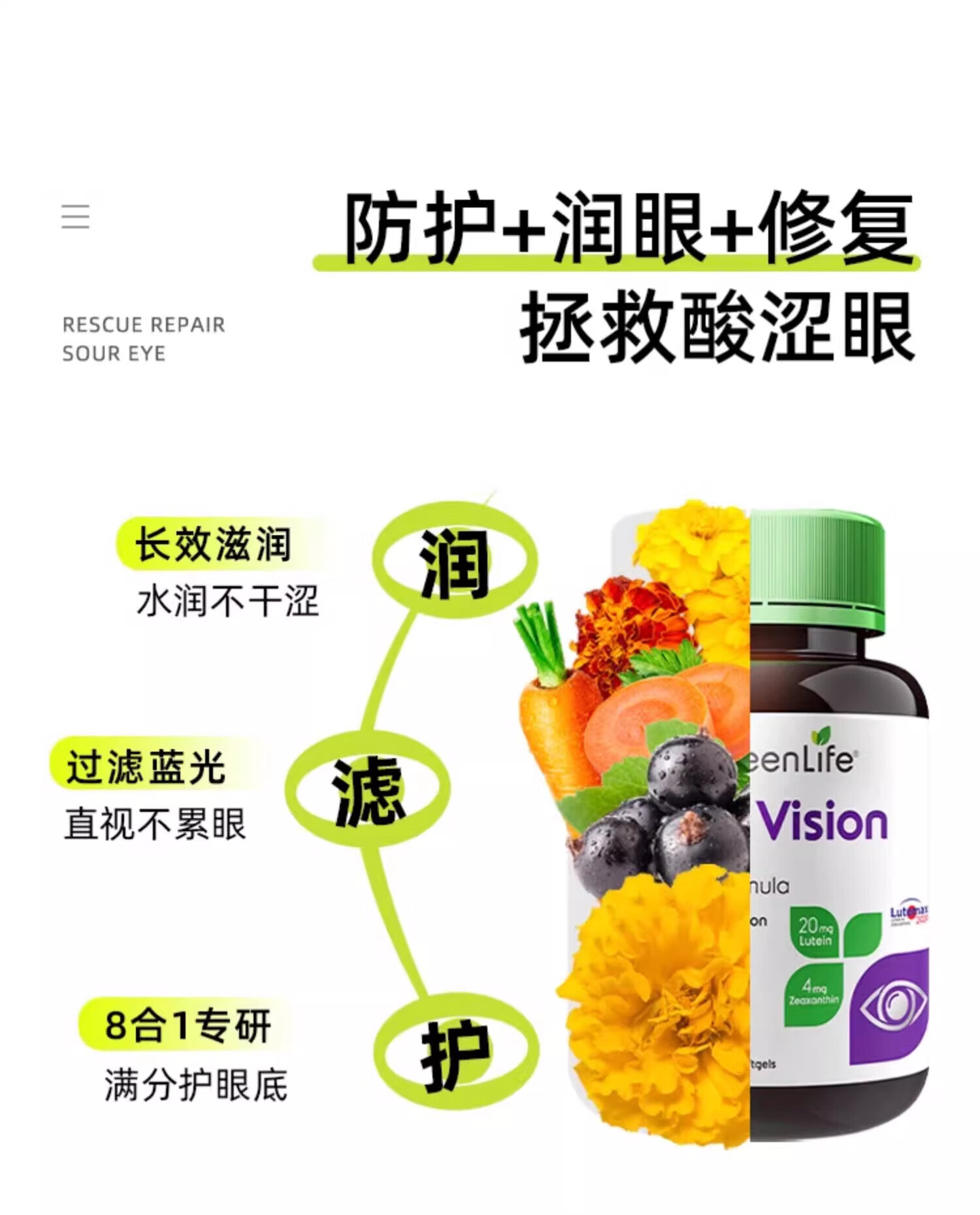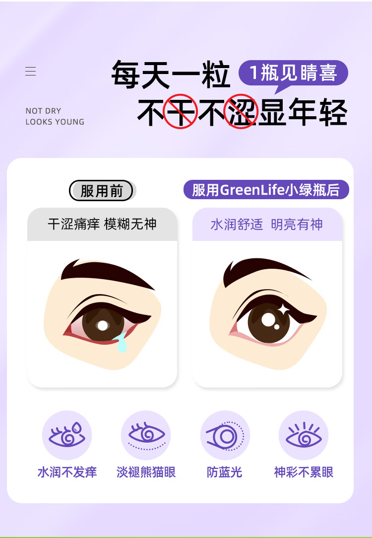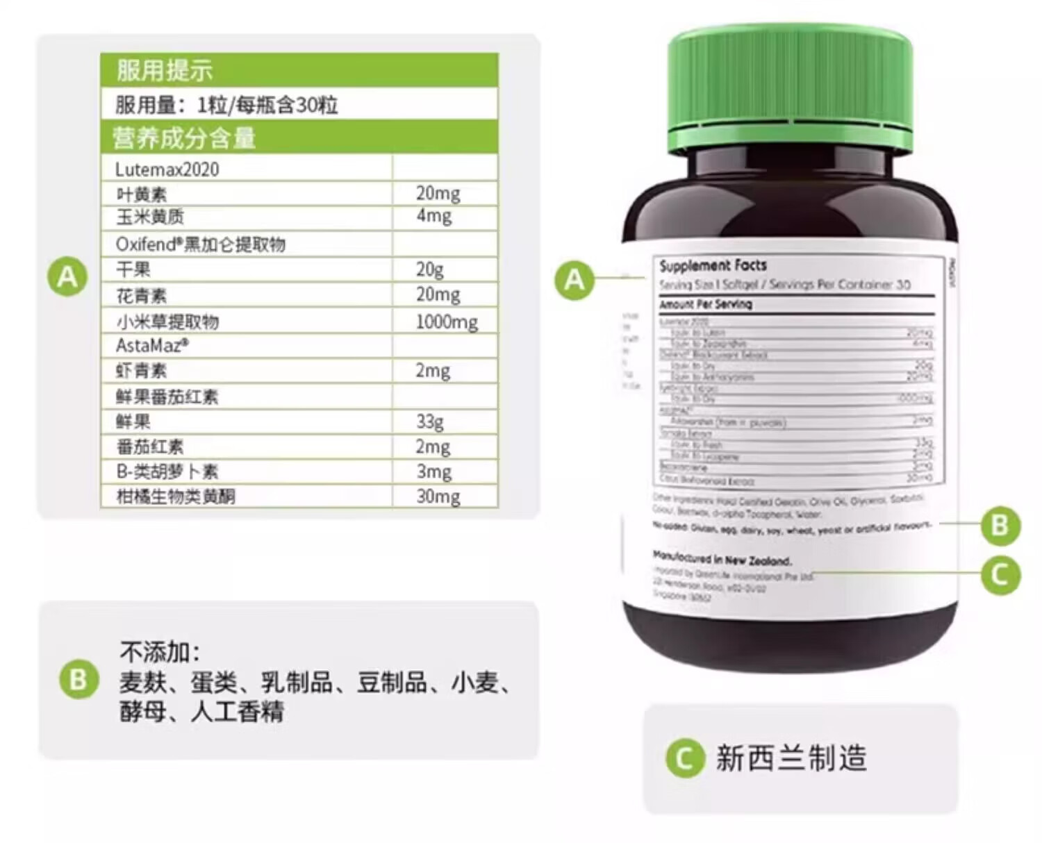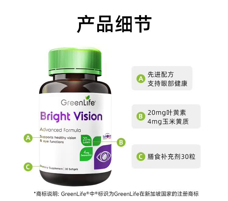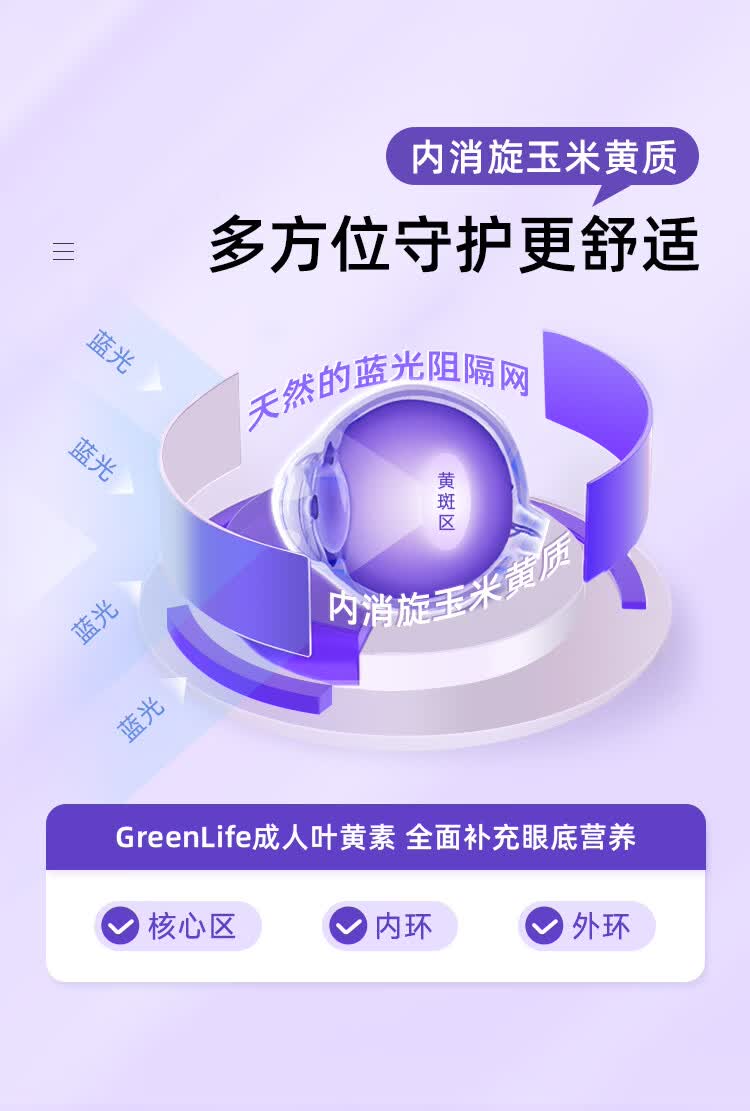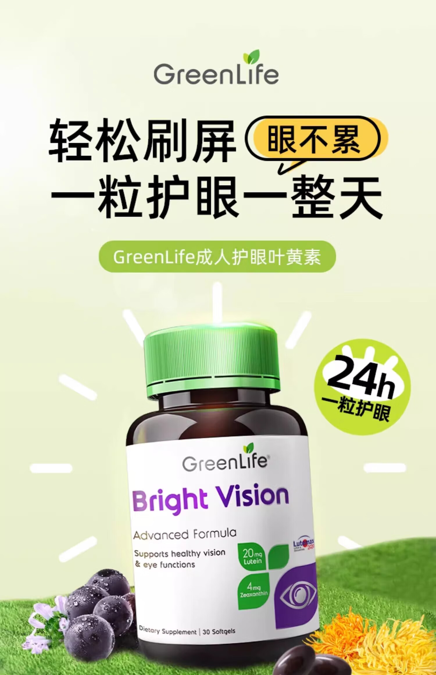 GreenLife成人蓝莓叶黄素软胶囊30粒 含玉米黄质保护视力护眼叶黄素进口 缓解眼部疲劳 30粒*1瓶