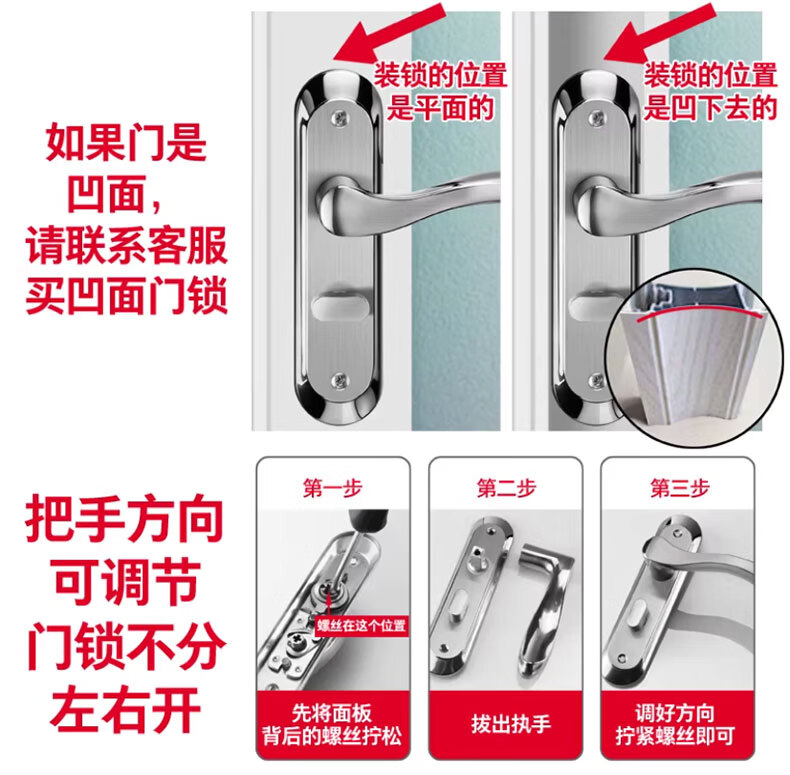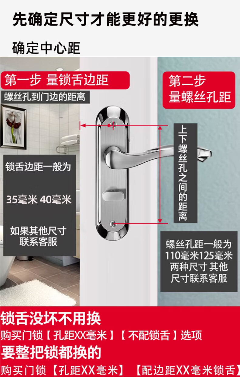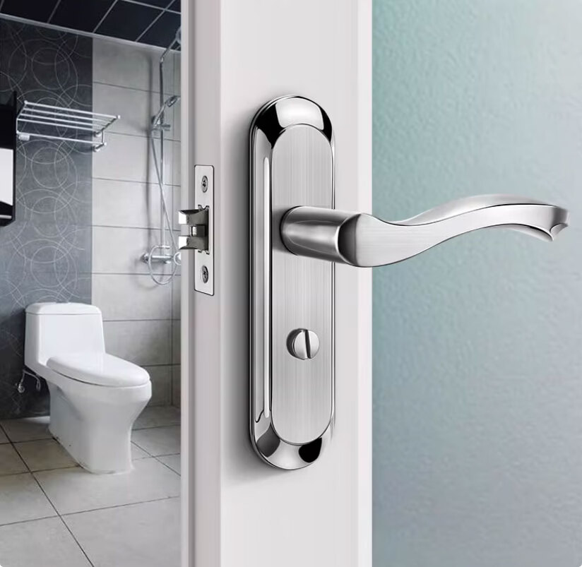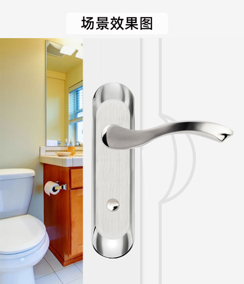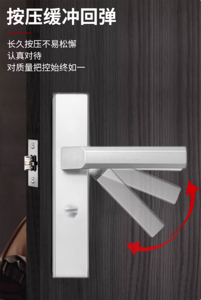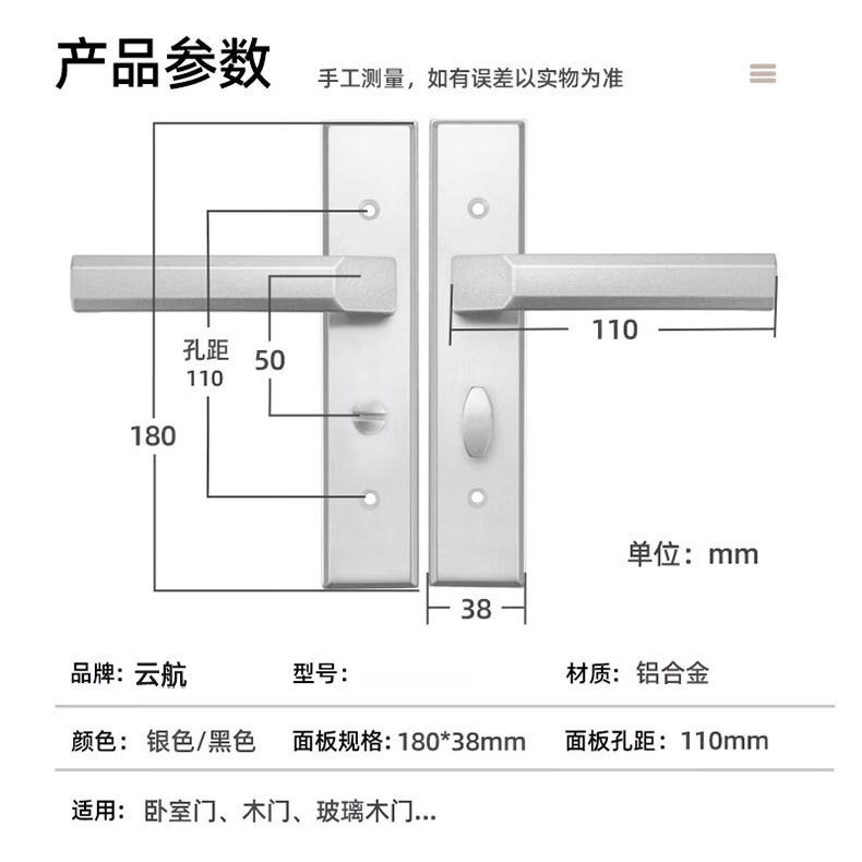 云航卫生间门锁浴室厕所门锁通用型洗手间门锁铝合金门执手锁把手 铝合金款110孔距40锁舌