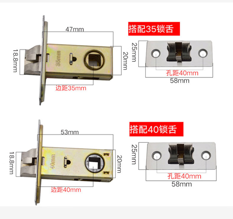 云航防盗门锁体家用大门锁通用锁体不锈钢防盗锁体入户门防盗门锁配件 24*240方舌锁体有钩