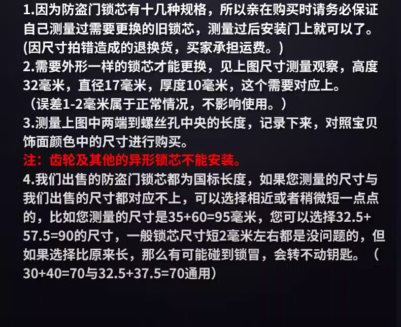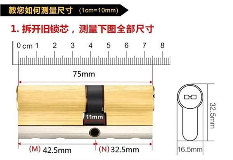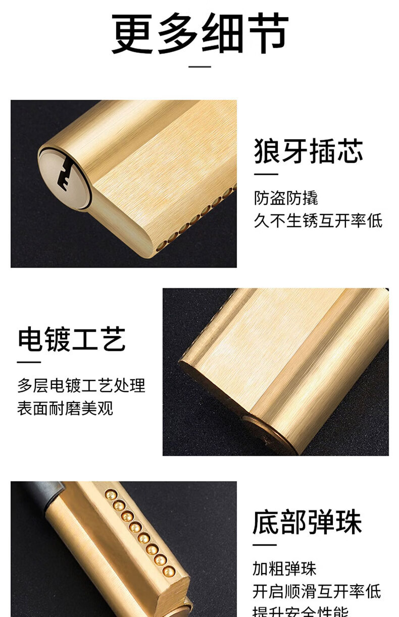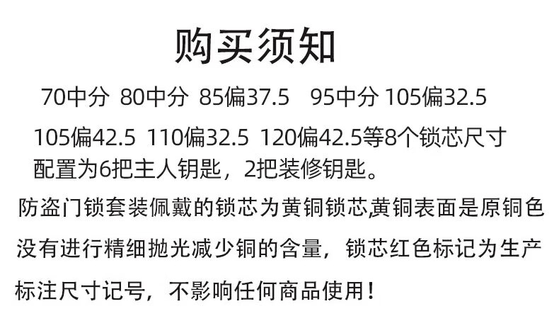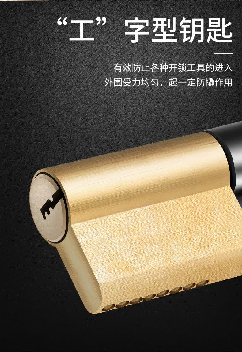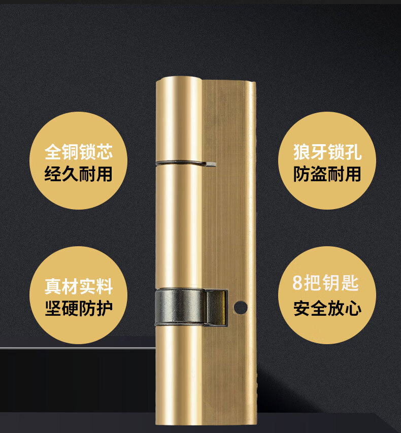 云航锁芯防盗门锁芯入户门大门防盗锁芯家用通用锁芯出租房全铜锁芯 57.5+32.5=90mm