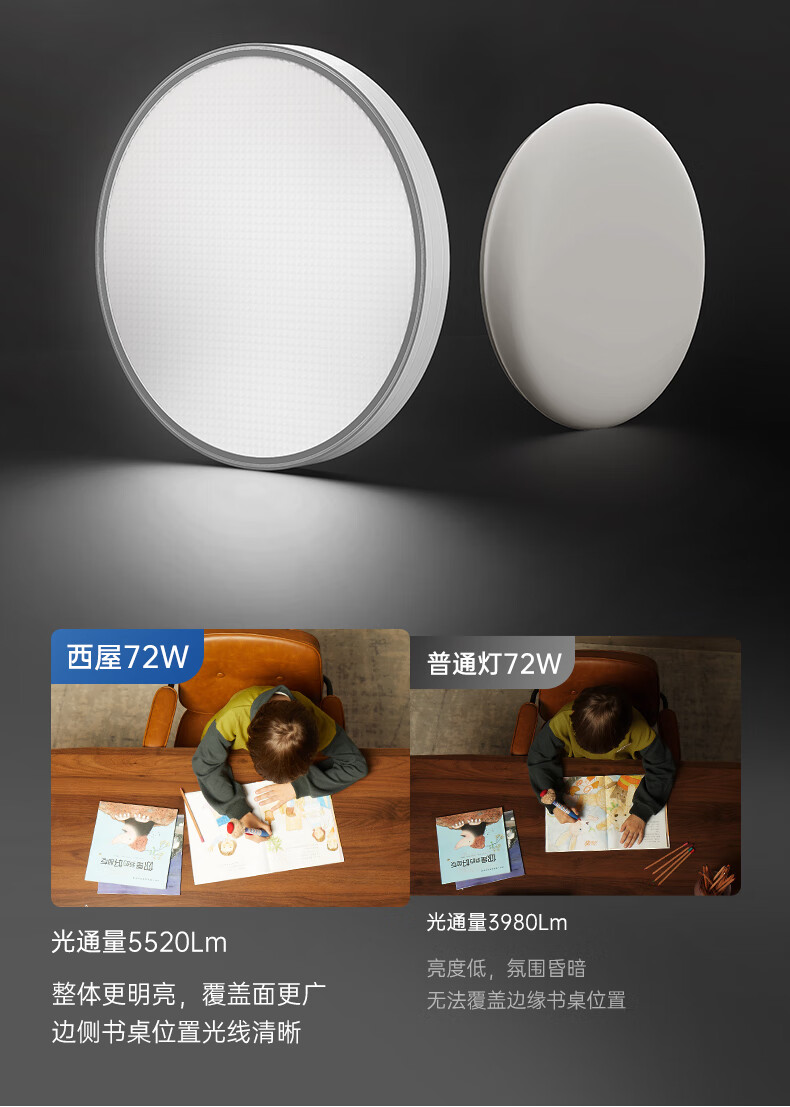 西屋超薄穹顶灯护眼全光谱儿童房客厅led灯2025新款圆形灯曼哈顿X 72W 15㎡内适用 5520lm 卧室灯60cm