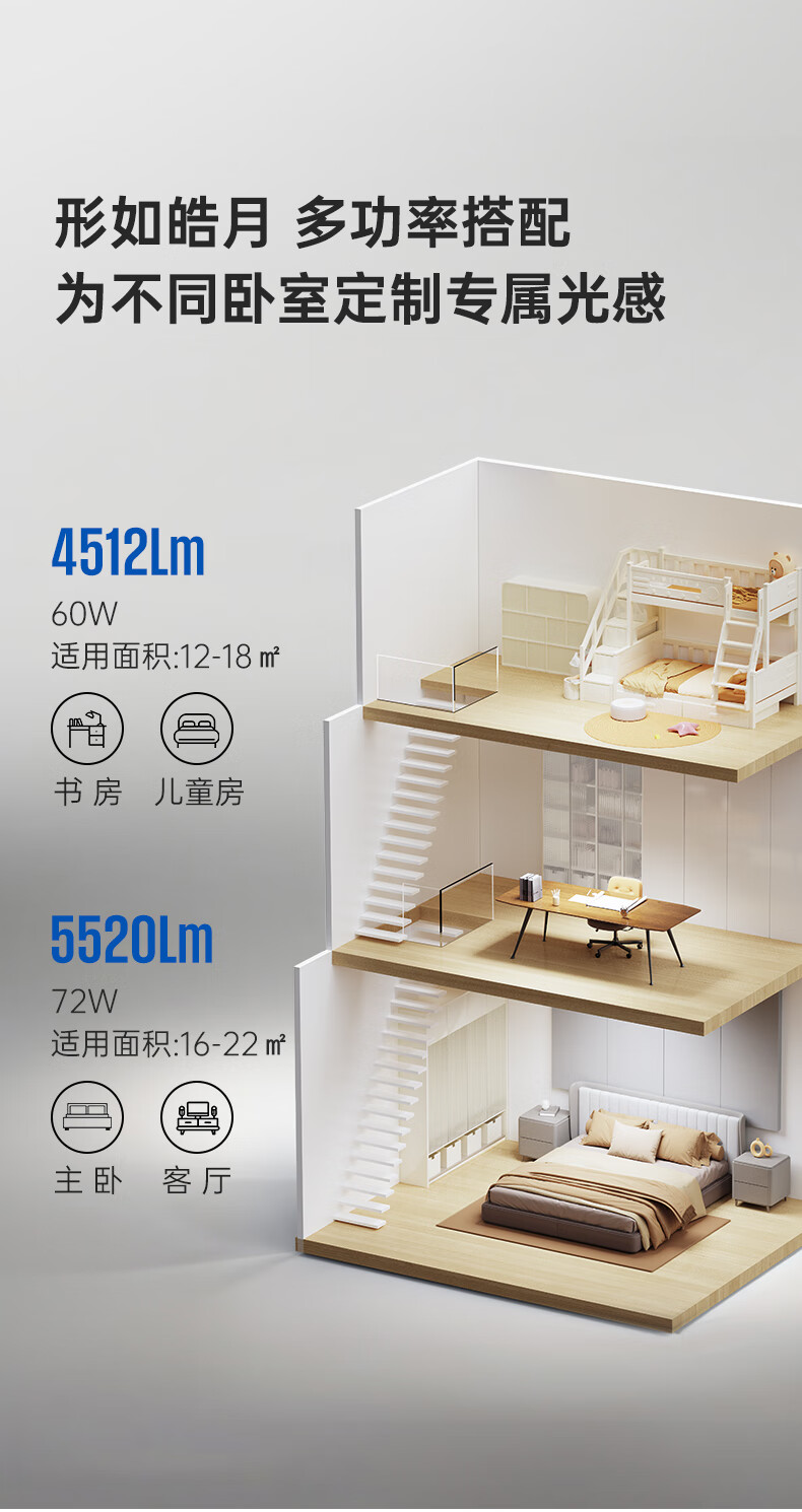 奢琪· 意式轻奢烟花卧室主卧书房次卧书房大气全光谱LED护眼客厅吸顶 套餐6-四室两厅 已接入米家APP