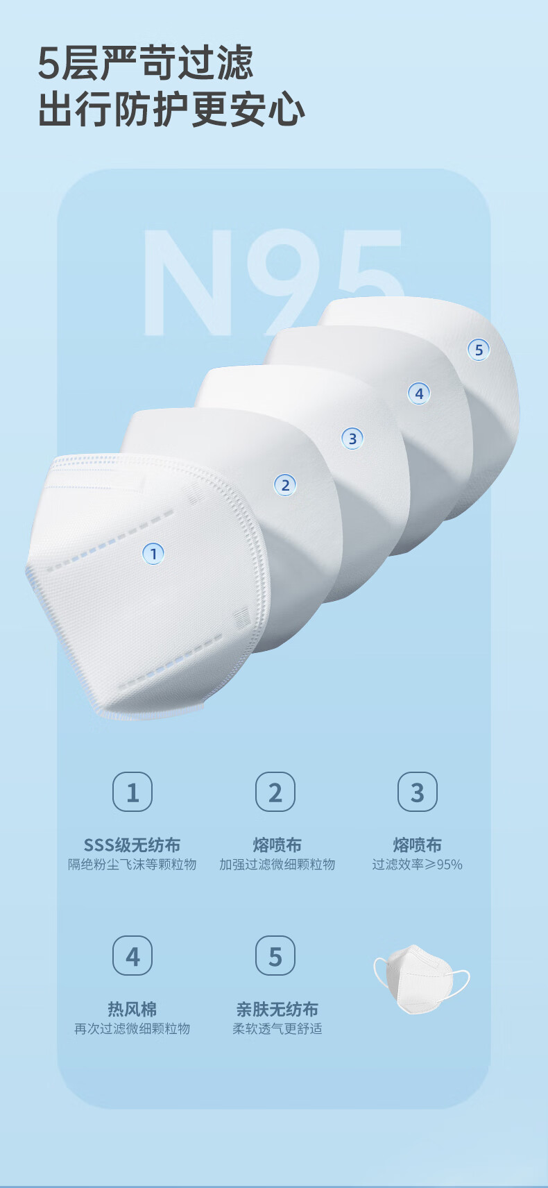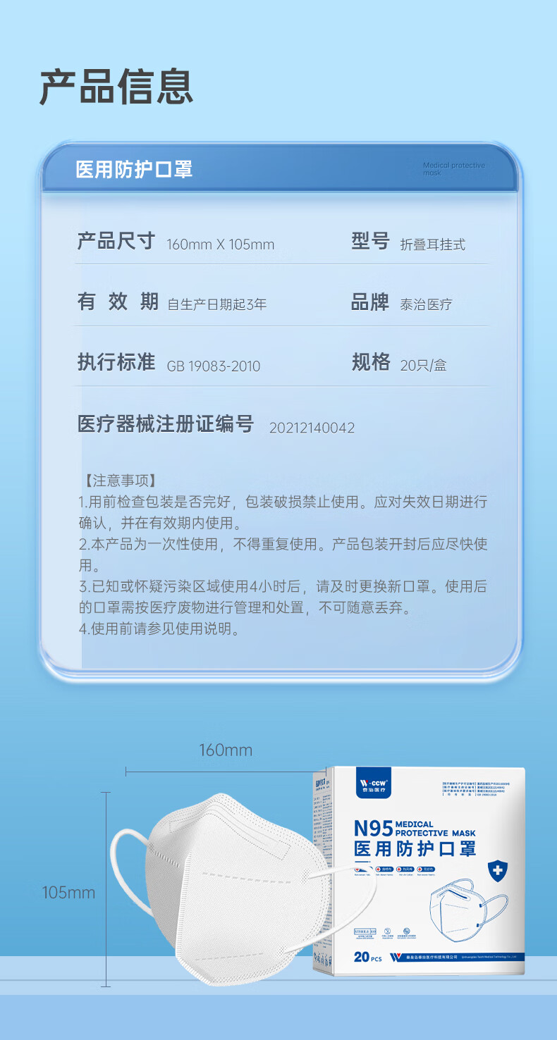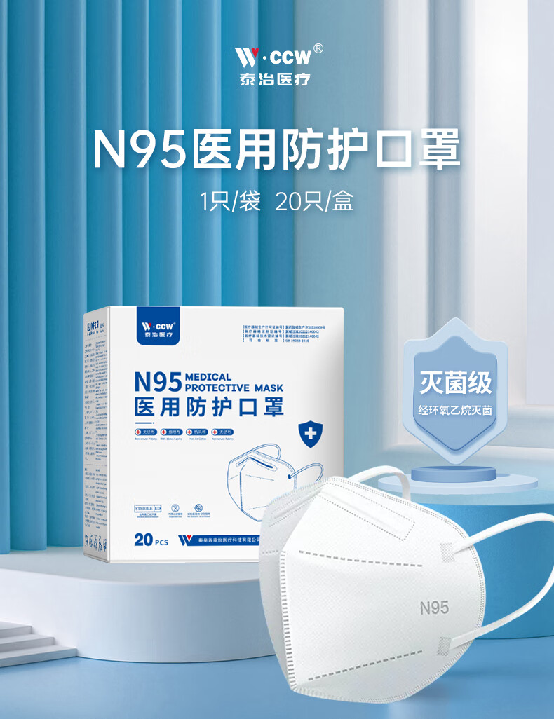 泰治医疗N95医用防护口罩5层灭菌级独立包装双层熔喷成人防病毒流感 5层【医用独立包装】囤货装60只