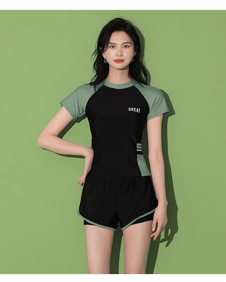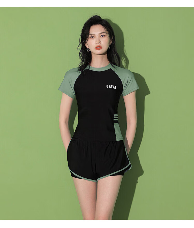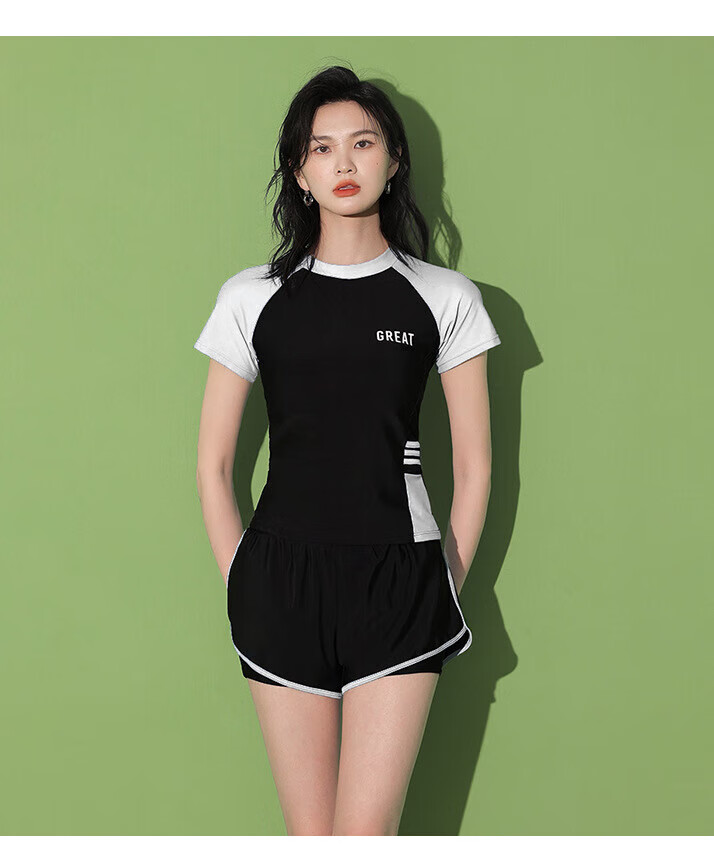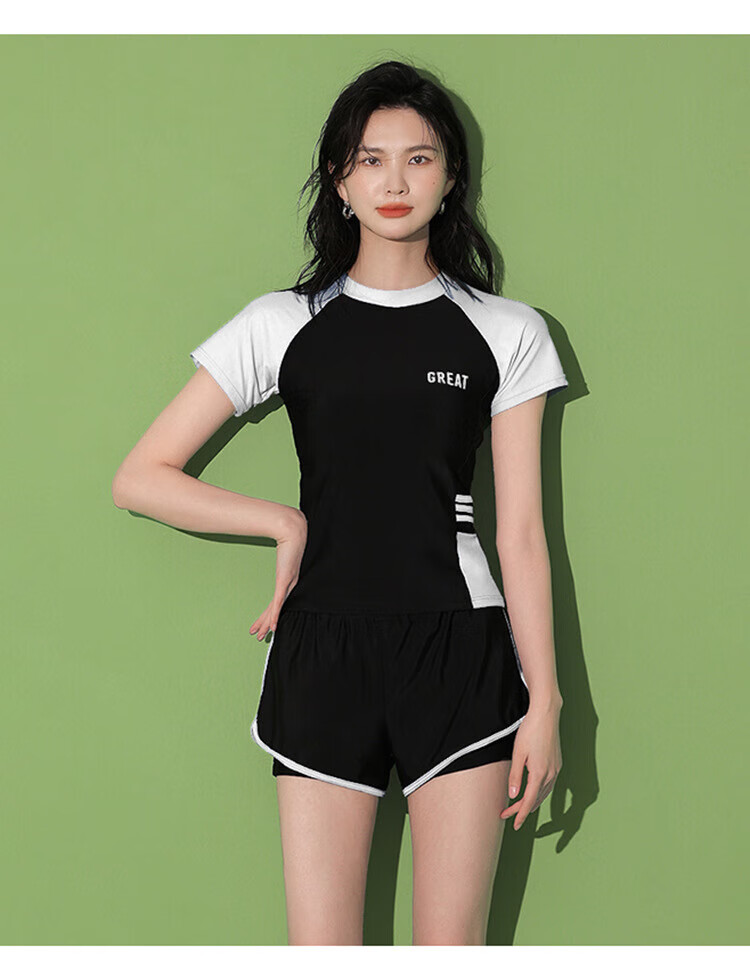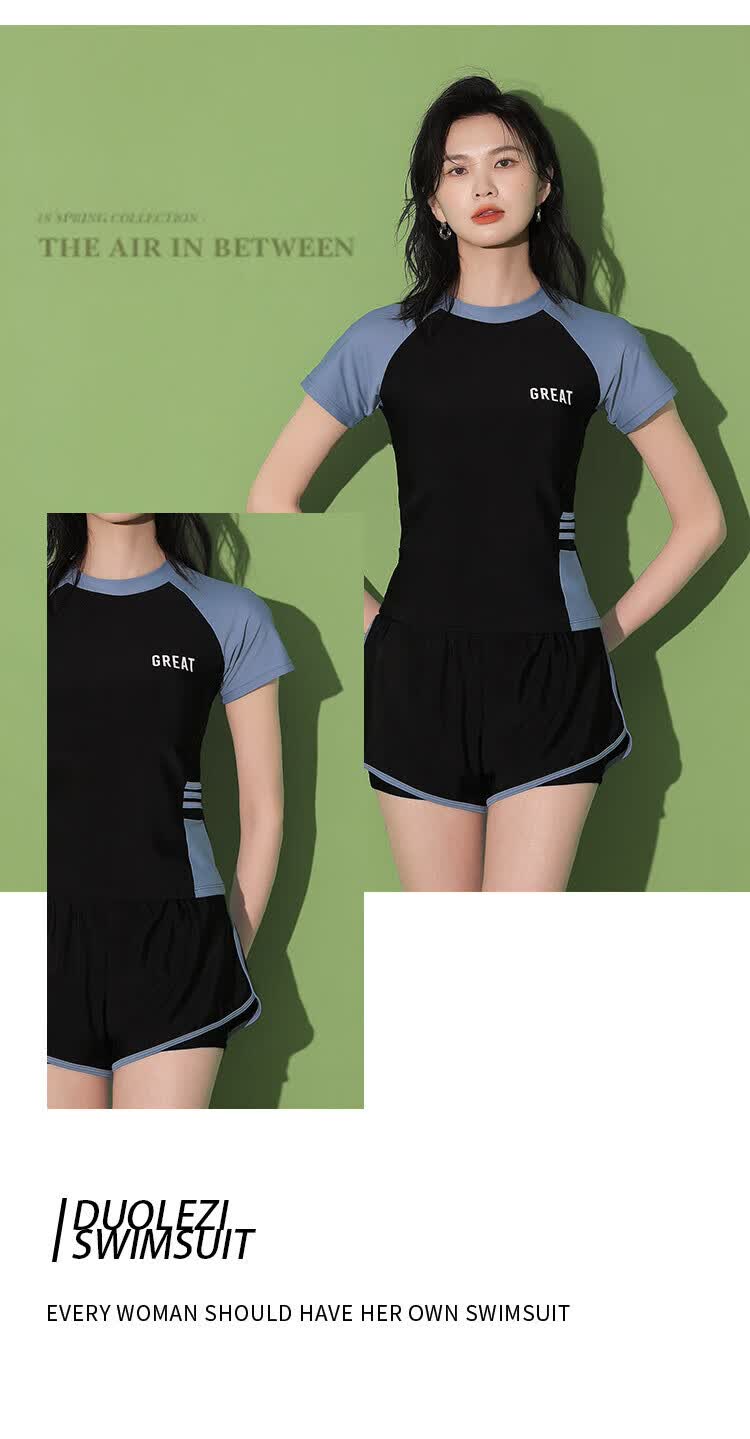 东方骆驼游泳衣女保守分体式两件套遮肚显瘦2025新款学生上课感泡温泉 黑搭蓝 S 建议体重70-90斤