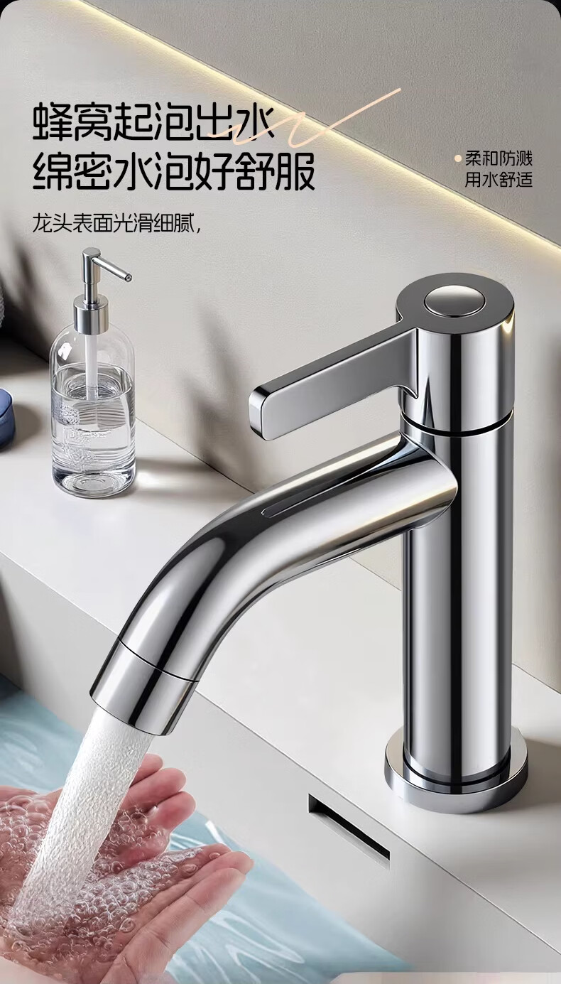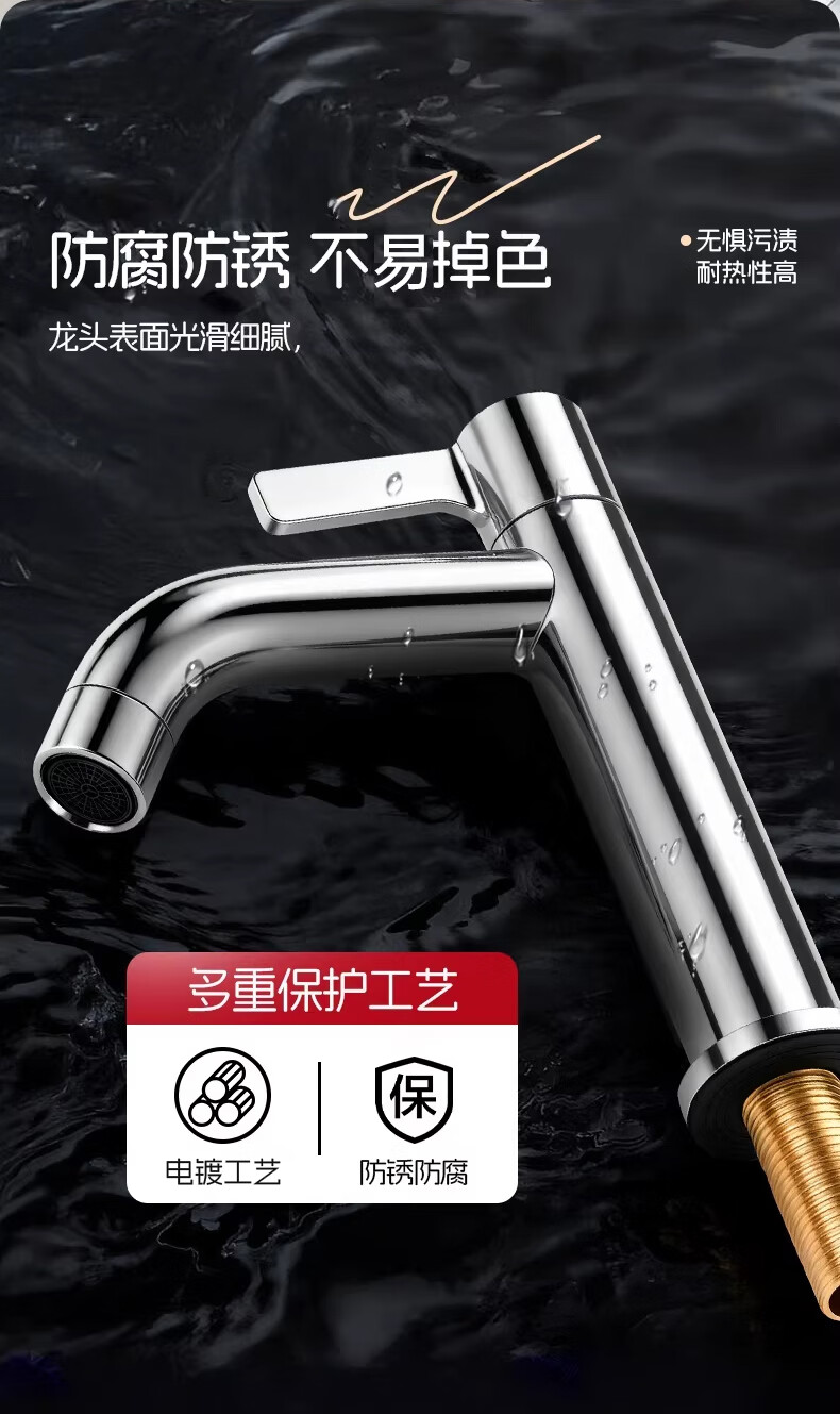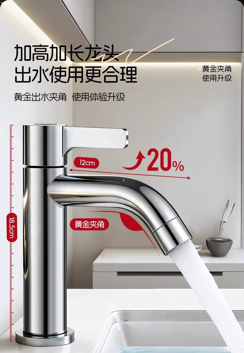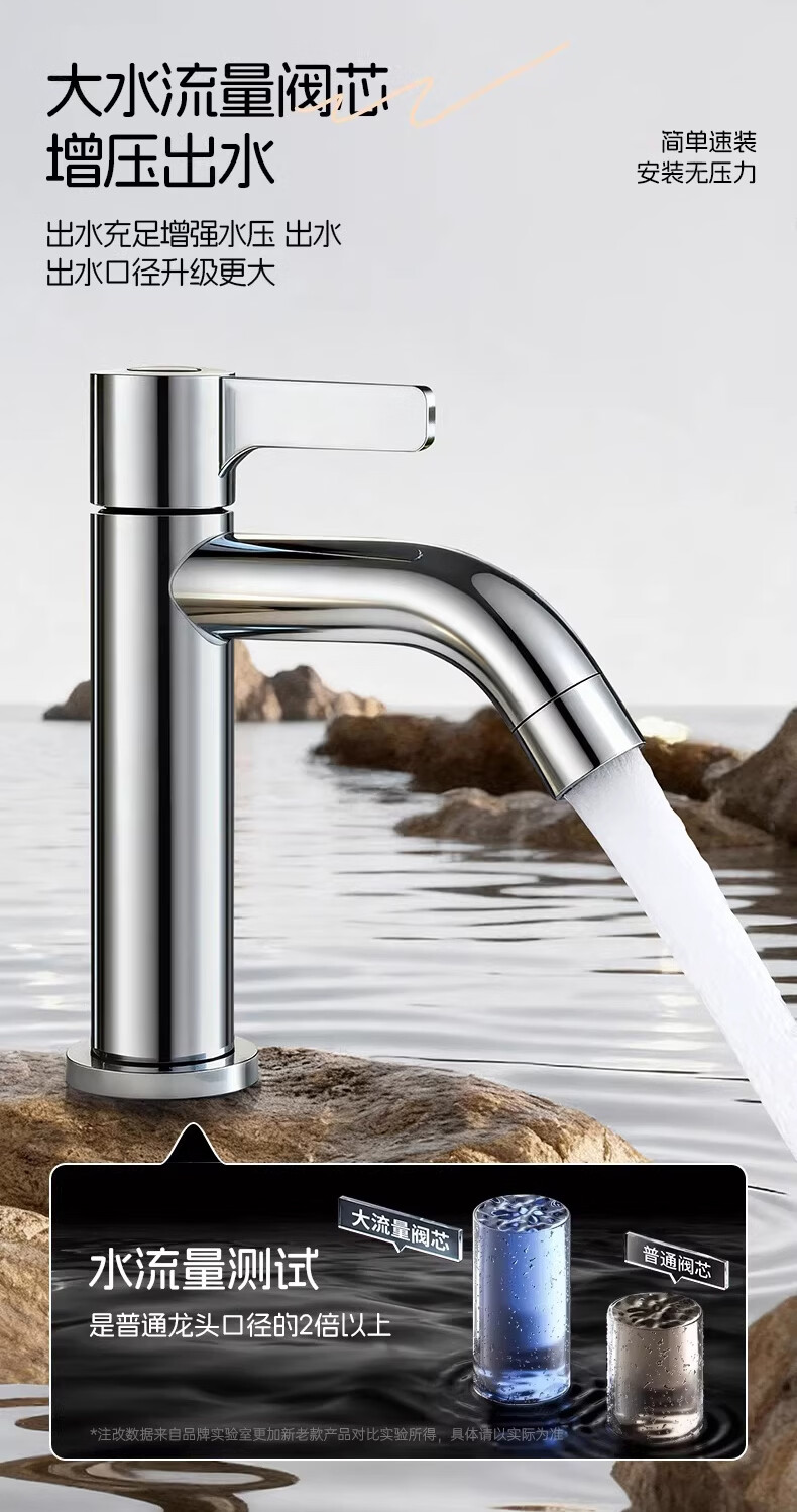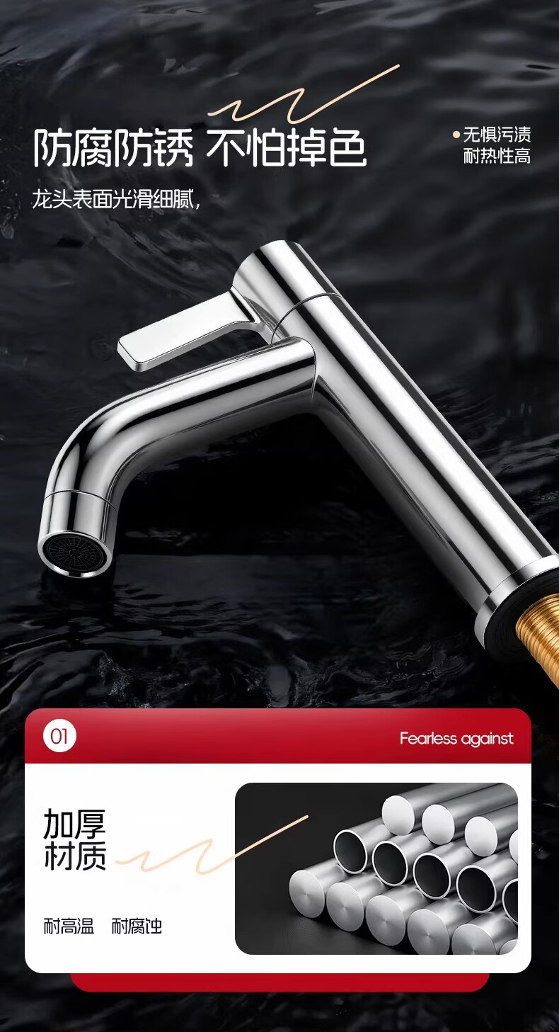 WUZORY【德国】面盆单冷洗手盆水龙头家用洗脸盆水龙头卫生间防溅水龙头 单冷【不锈钢加厚】洗脸盆水龙头 加厚防溅丨配80cm防爆进水管*1