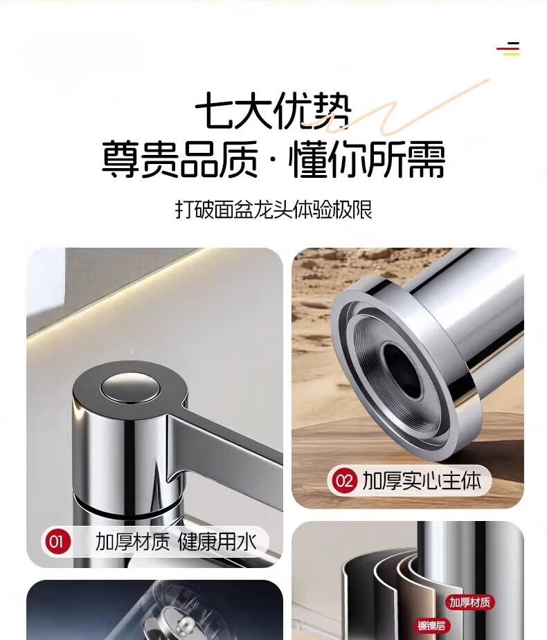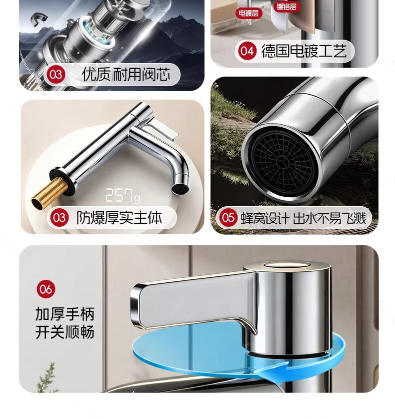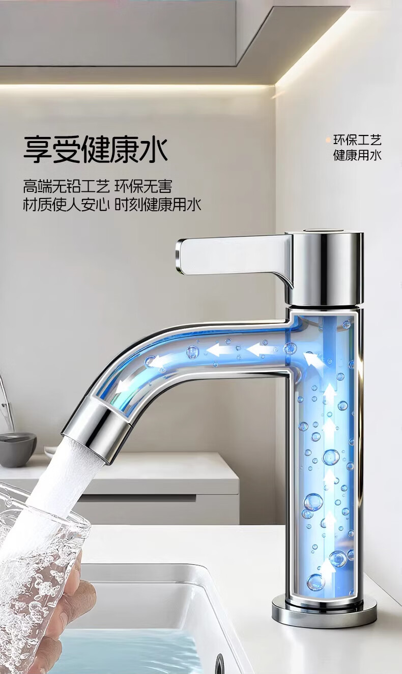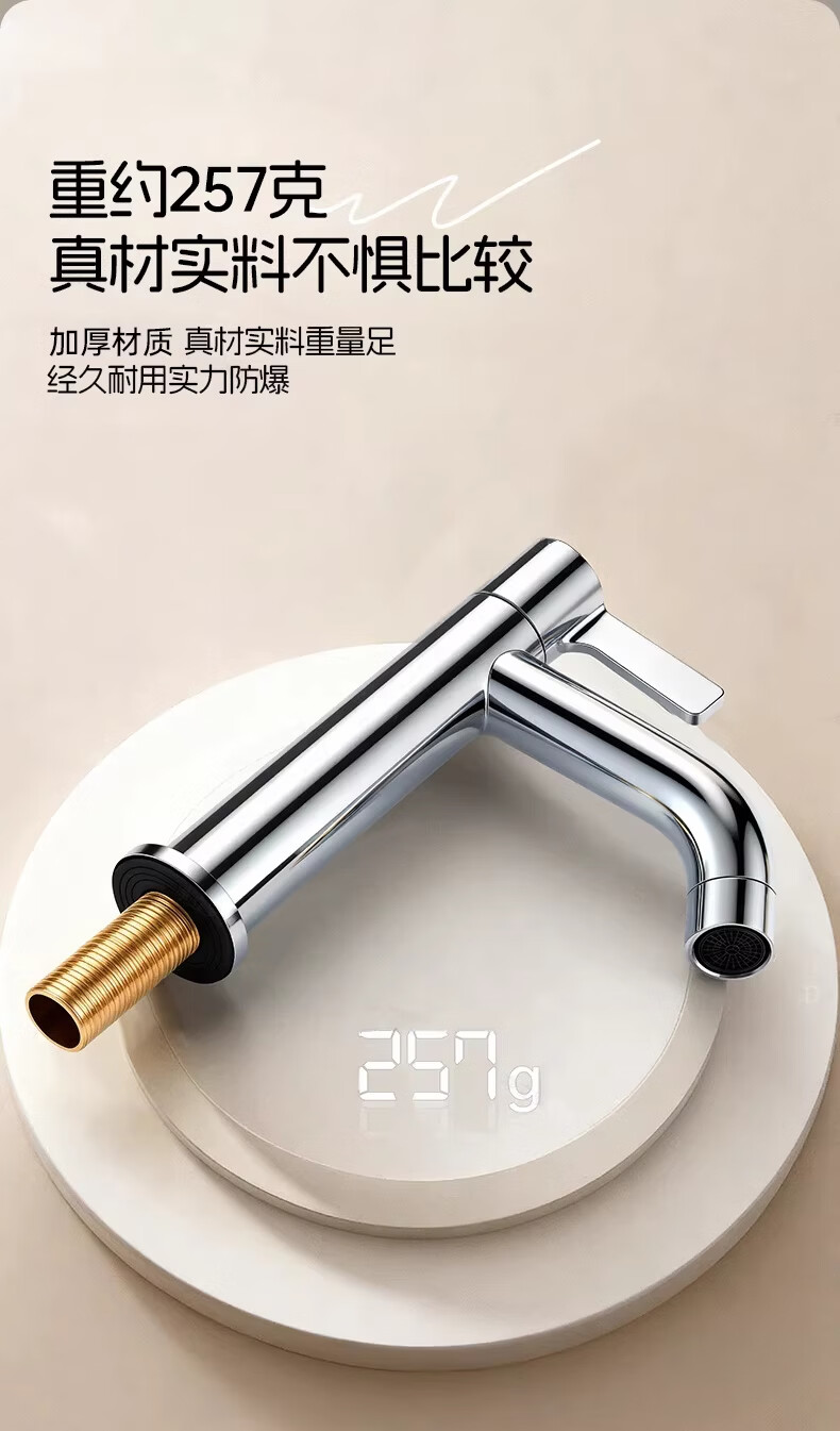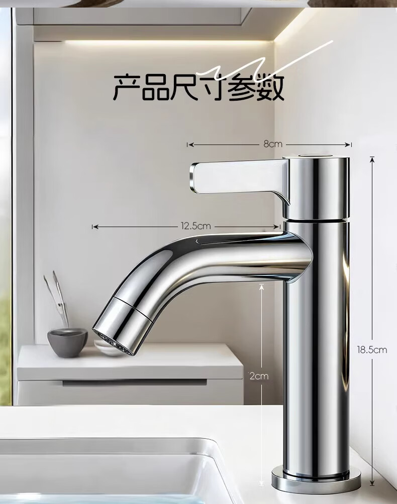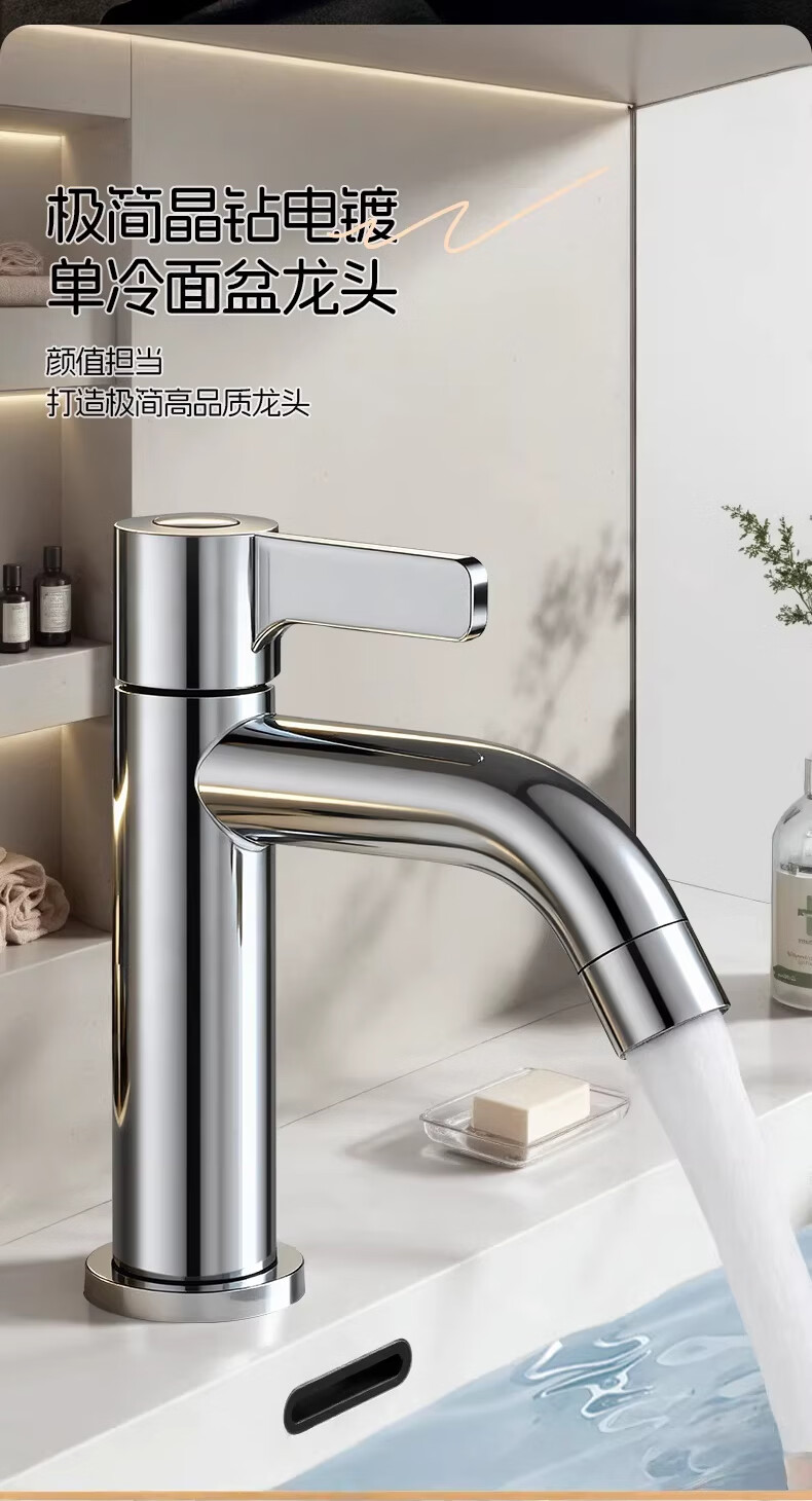 WUZORY【德国】面盆单冷洗手盆水龙头家用洗脸盆水龙头卫生间防溅水龙头 单冷【不锈钢加厚】洗脸盆水龙头 加厚防溅丨配80cm防爆进水管*1