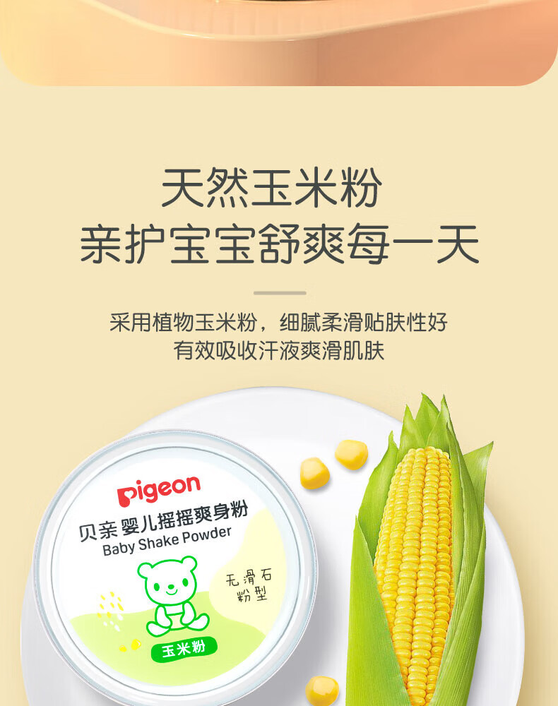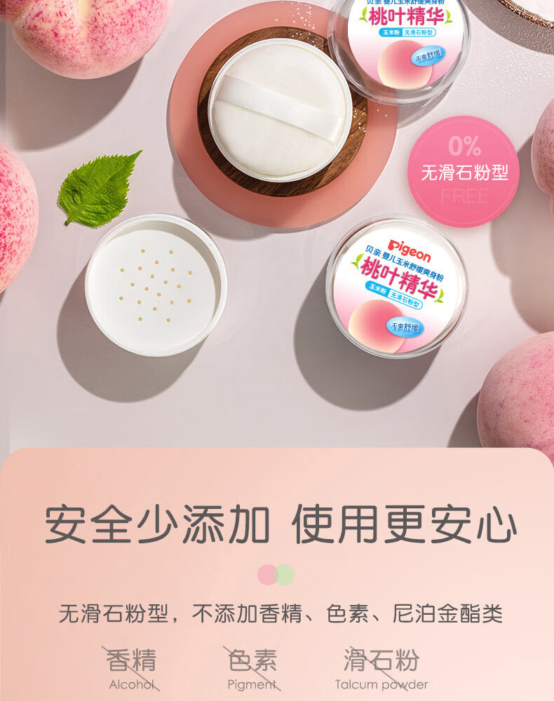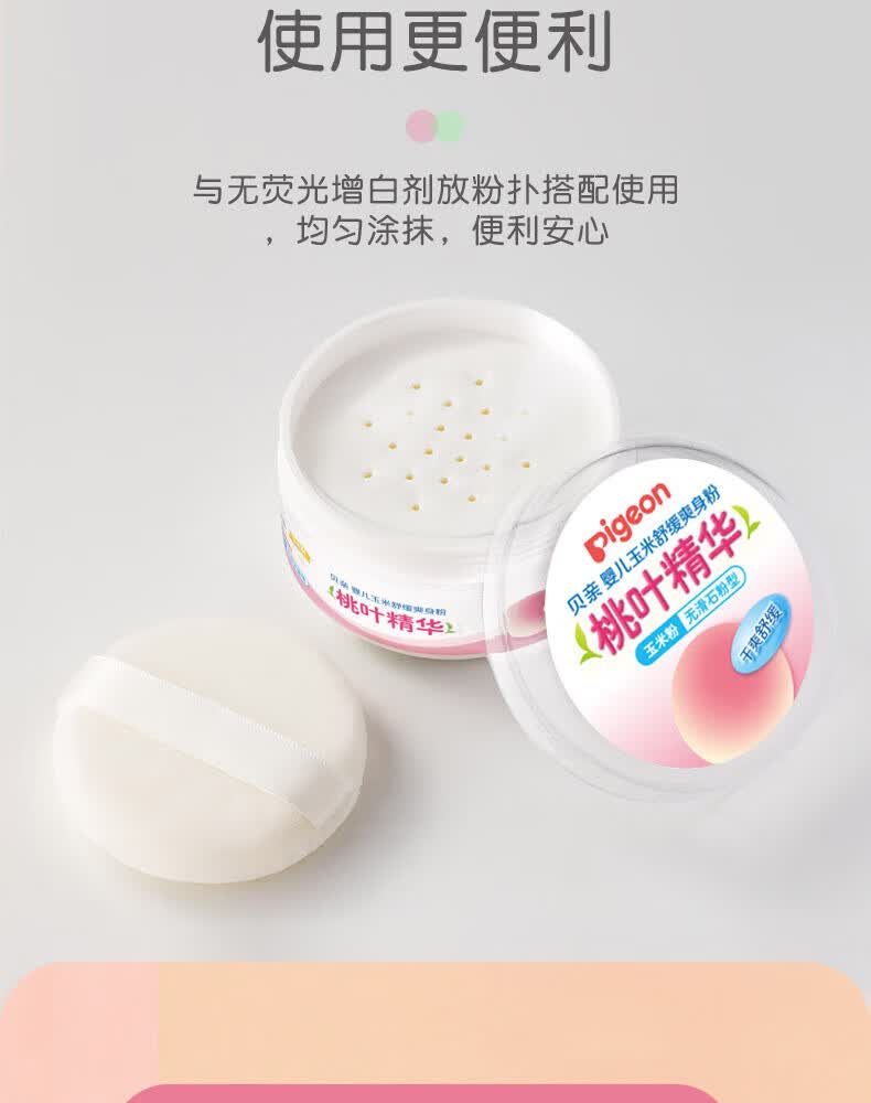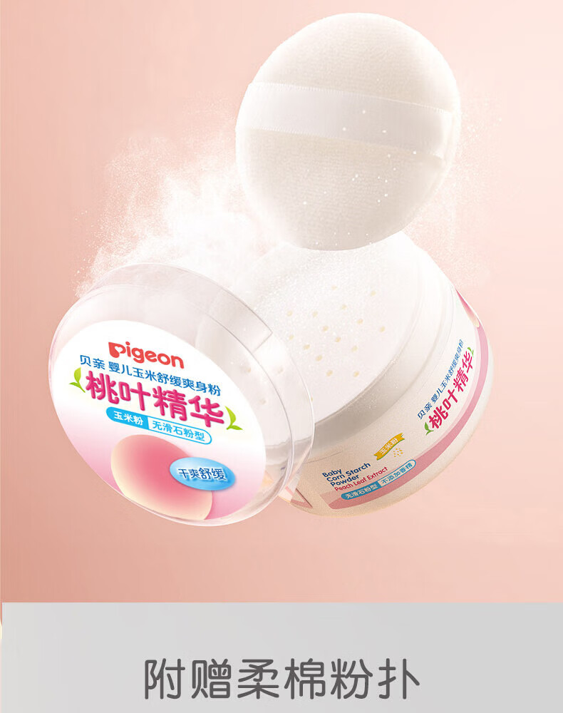 贝亲爽身粉 儿童爽身粉 婴幼儿爽身粉 桃叶精华玉米粉50g 无滑石粉