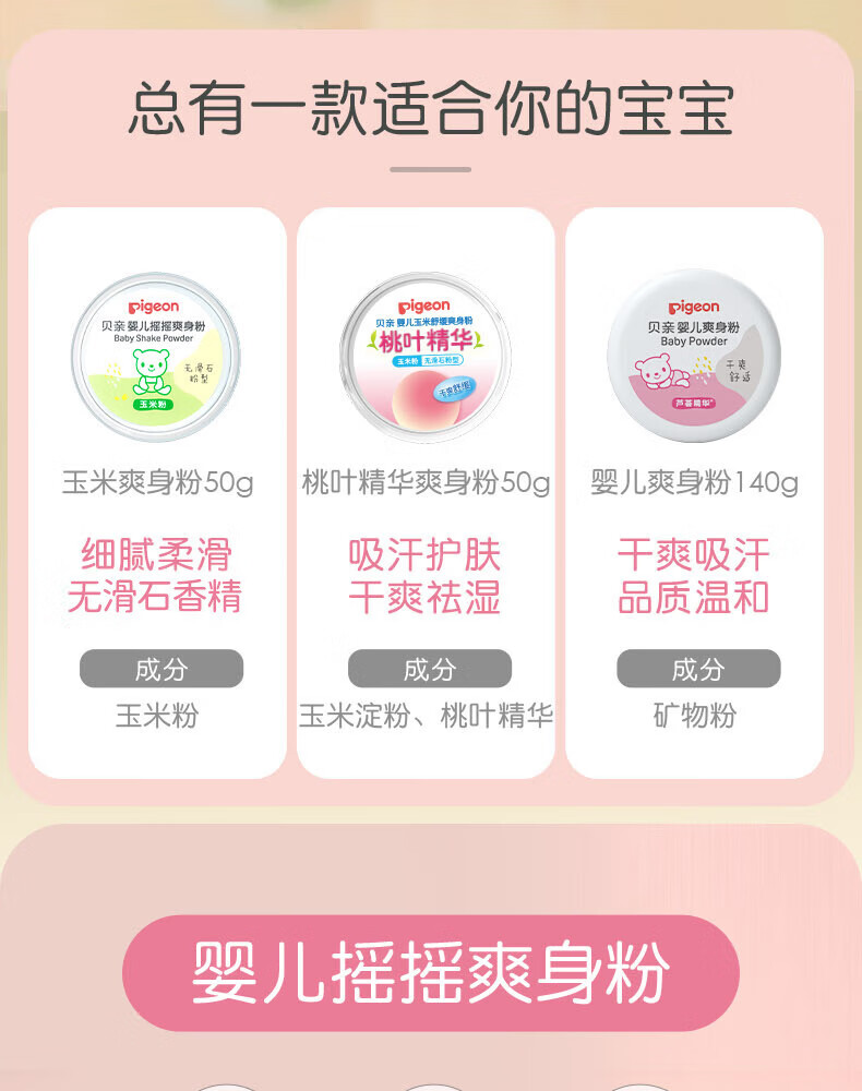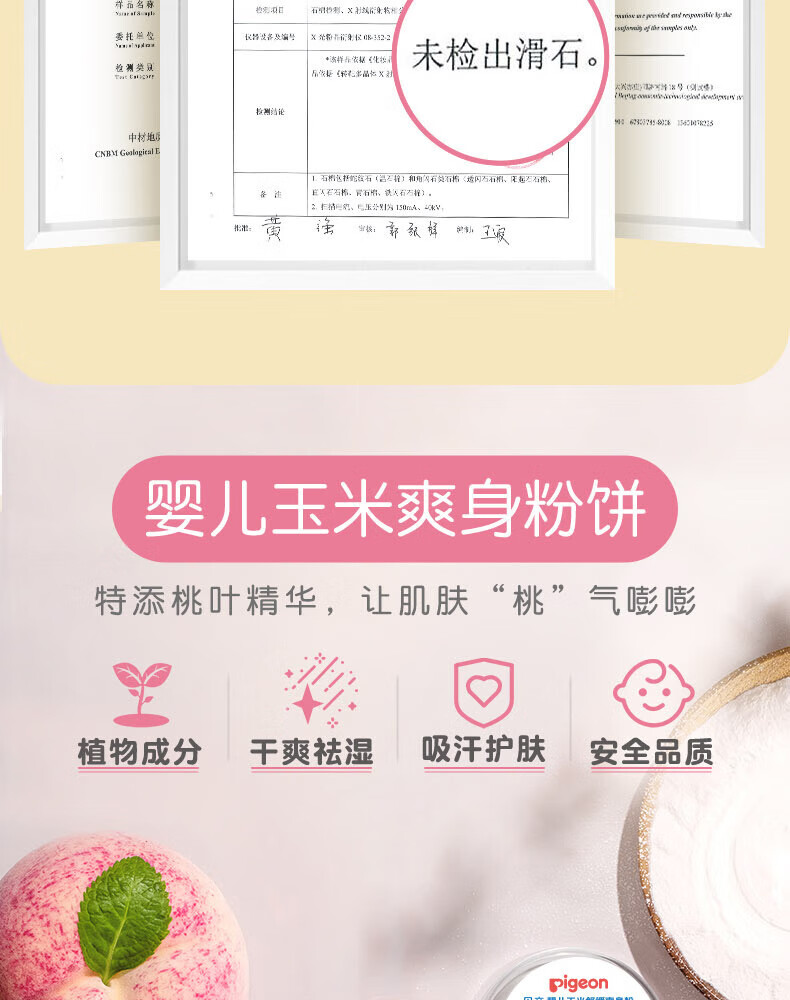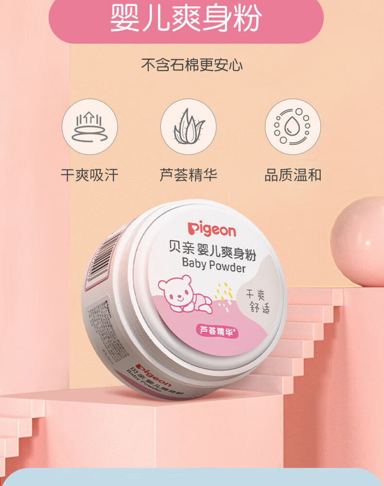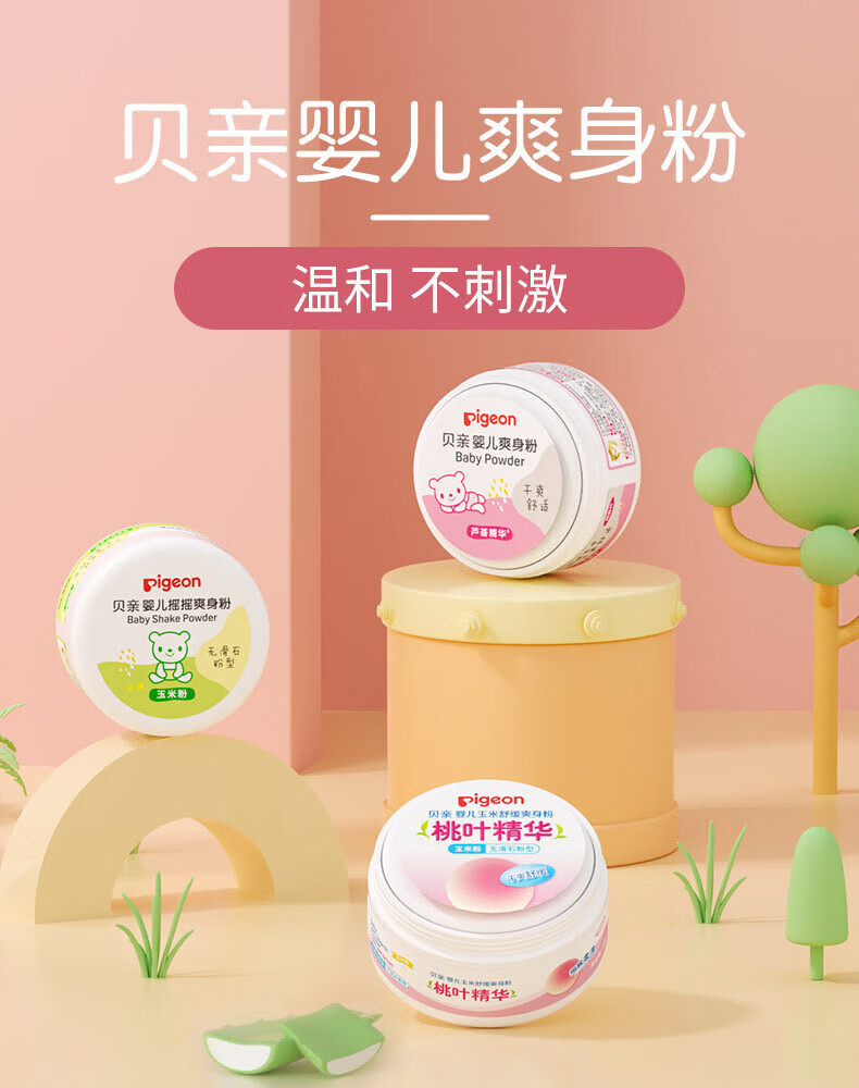 贝亲爽身粉 儿童爽身粉 婴幼儿爽身粉 桃叶精华玉米粉50g 无滑石粉