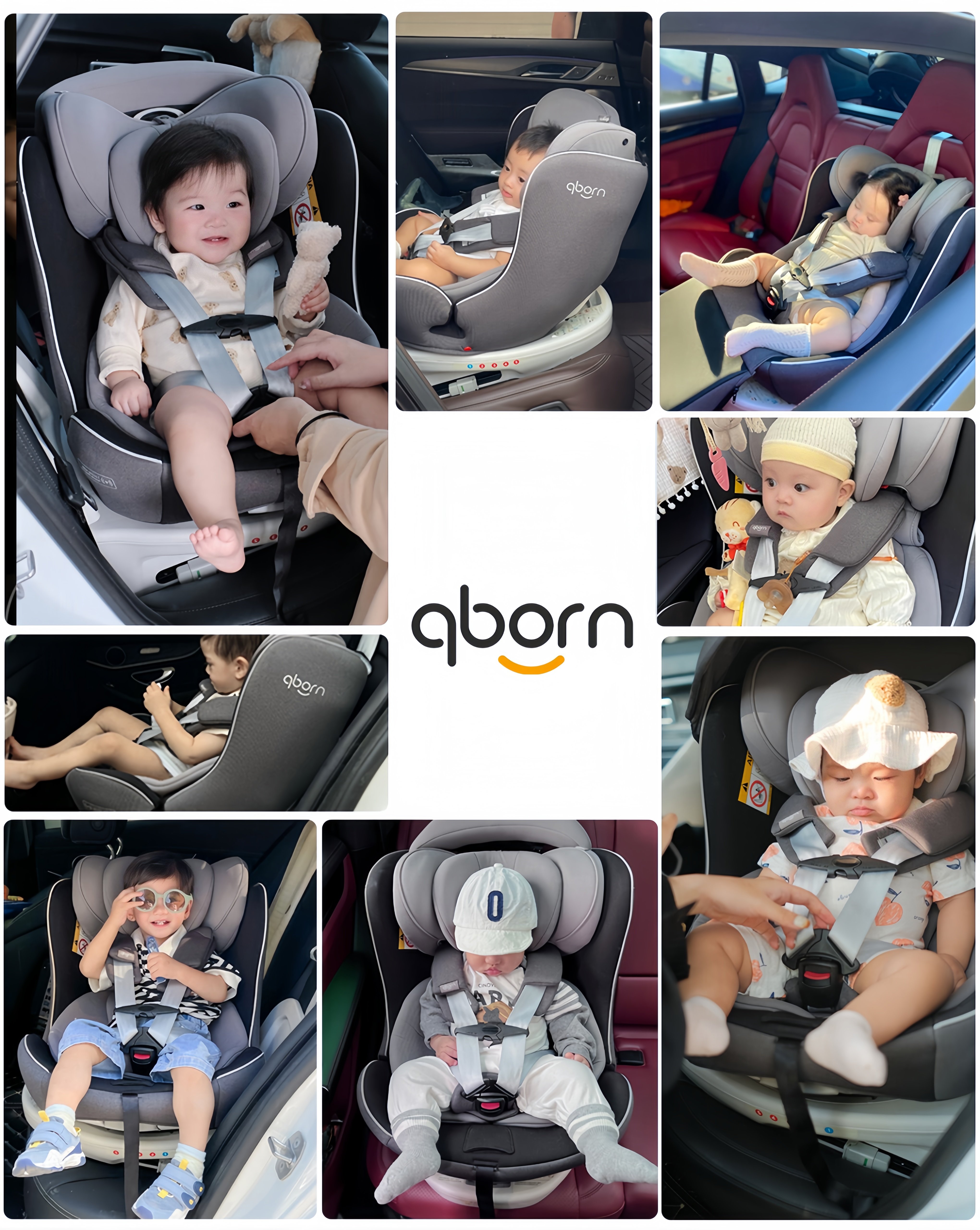 qborn大白熊安全座椅汽车用0-12岁婴儿童宝宝小孩米色座椅360度旋转3C 琥珀橙【加宽大座舱畅销爆款+360无干扰旋转】
