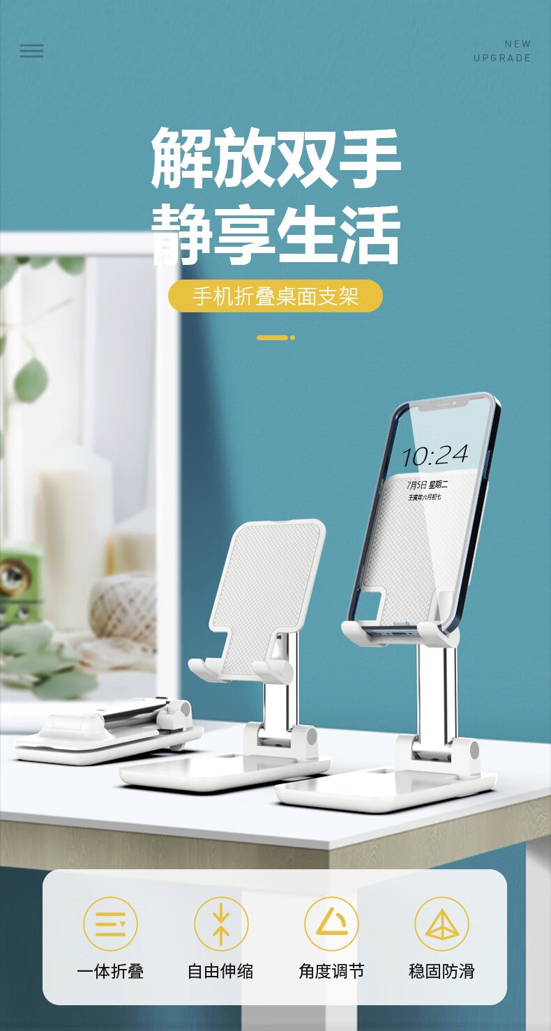 菲尔克适用 手机支架桌面直播网红抖音上网课多功能可折叠便携伸缩升降办公室懒人床头学生宿舍追剧神器 T22【加重可平板丨双杆-360°旋转】-骑士黑