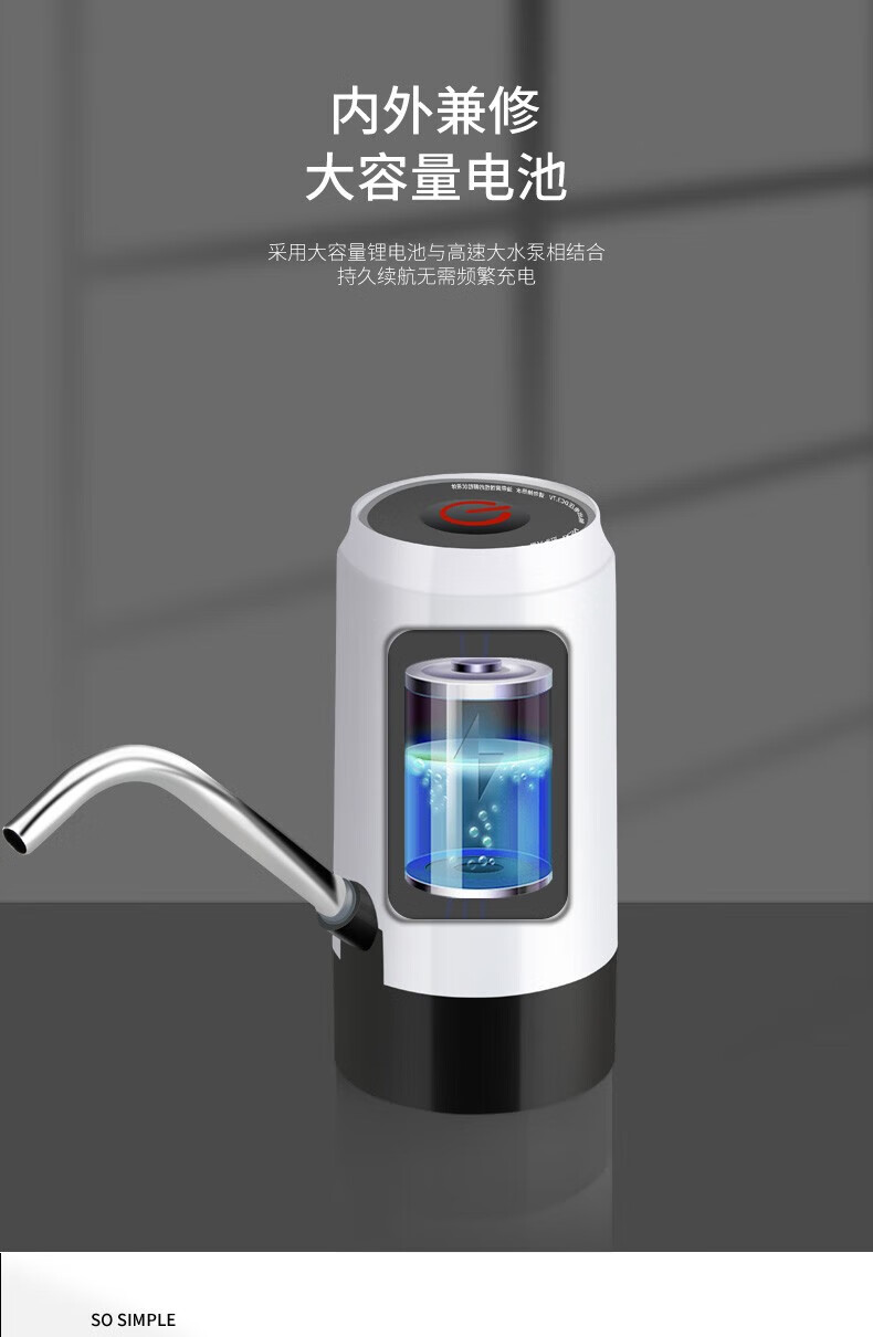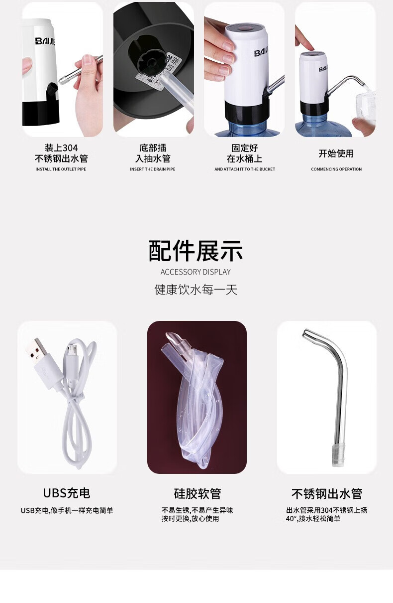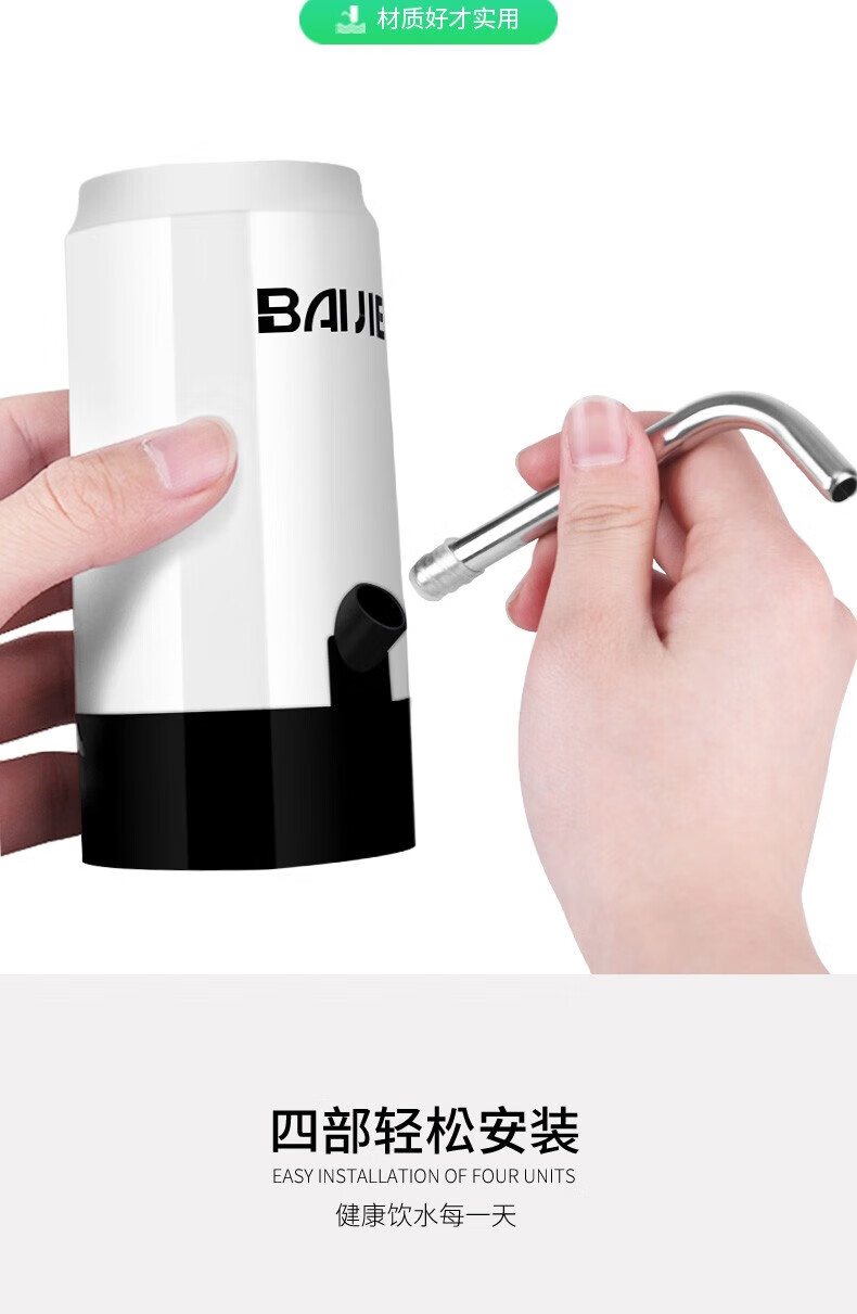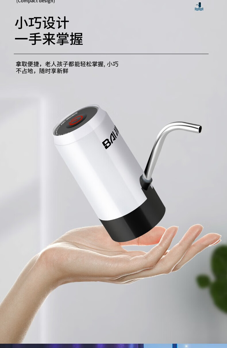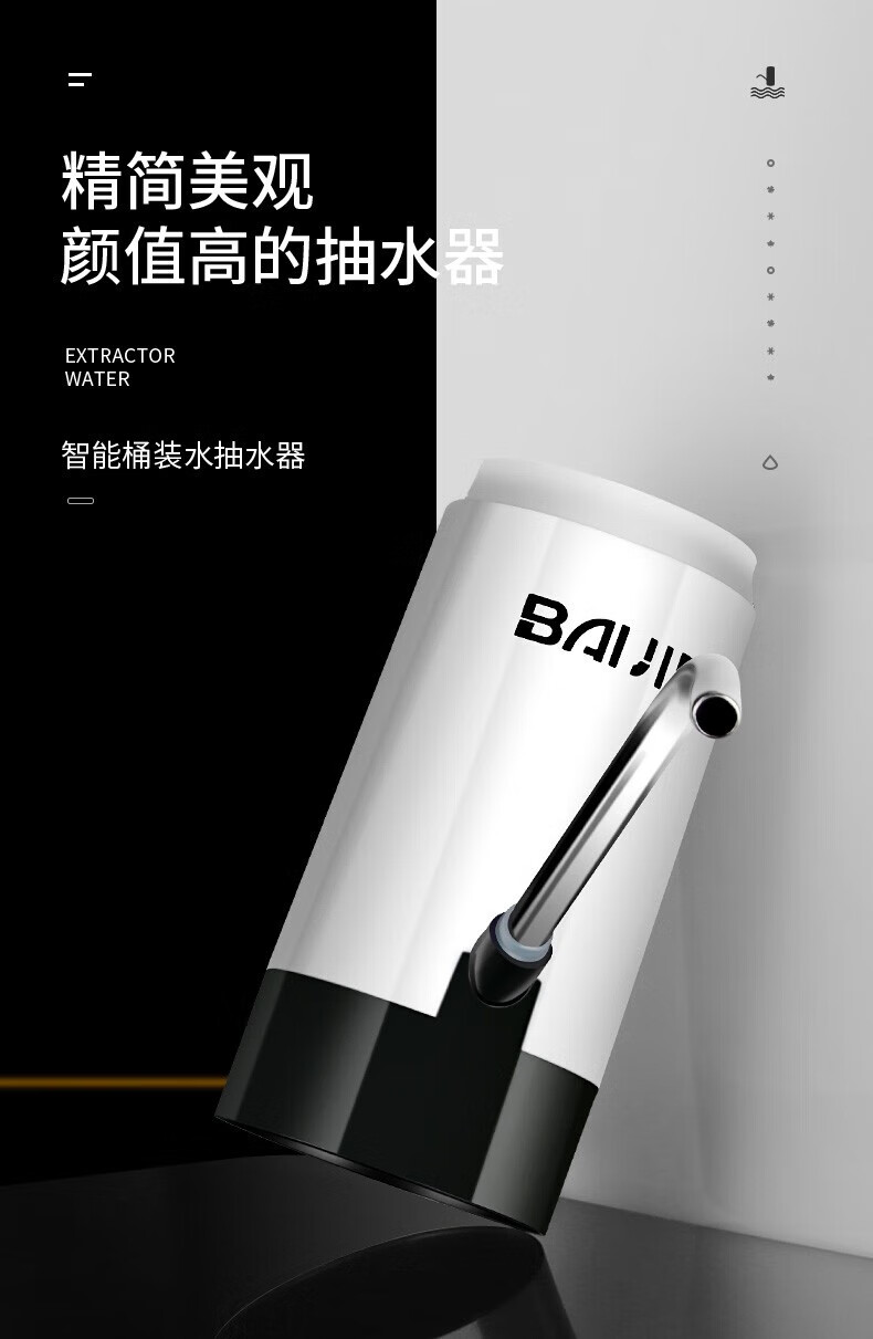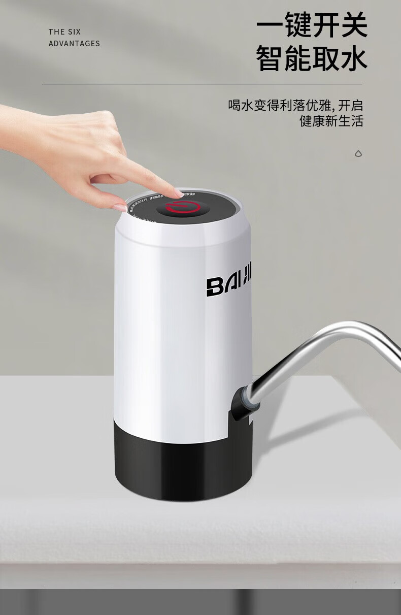 PJ自动上水器桶装水抽水器电动按压自动吸大桶水取水器水泵 银色不锈钢智能触屏款