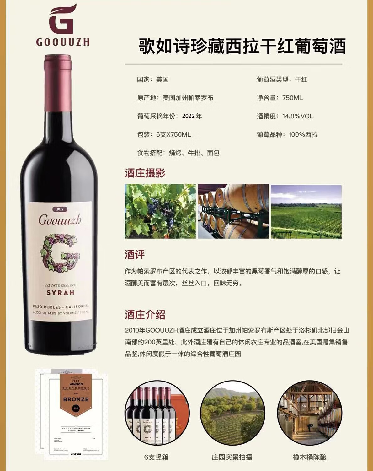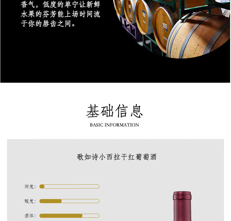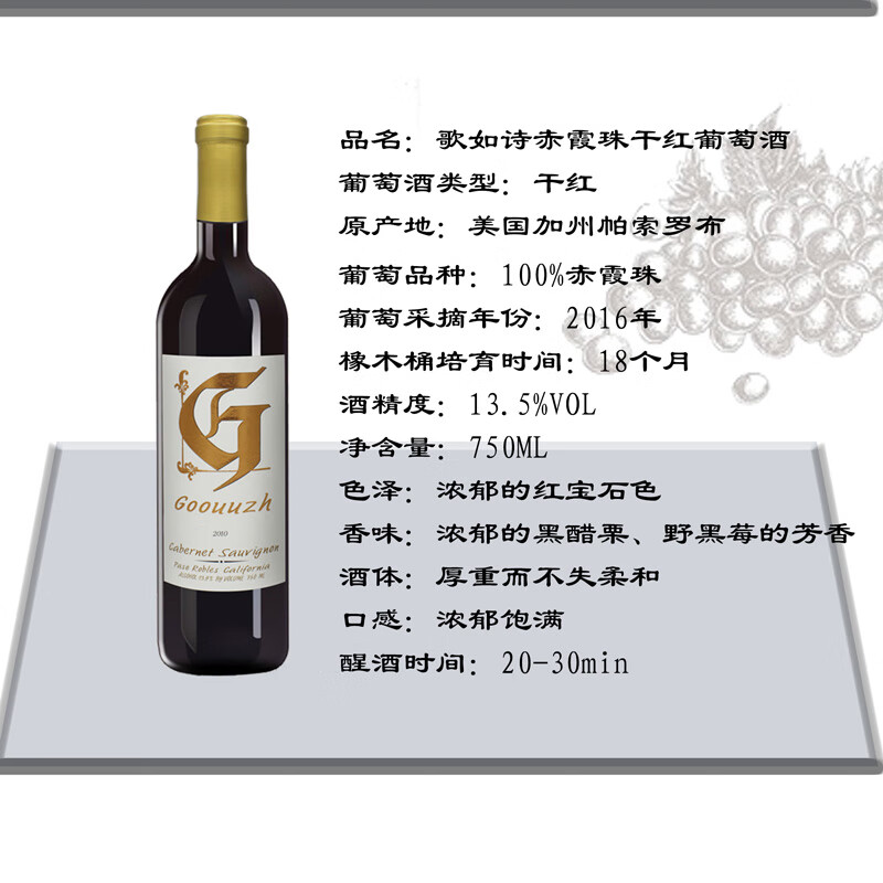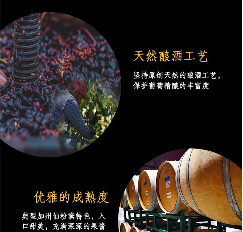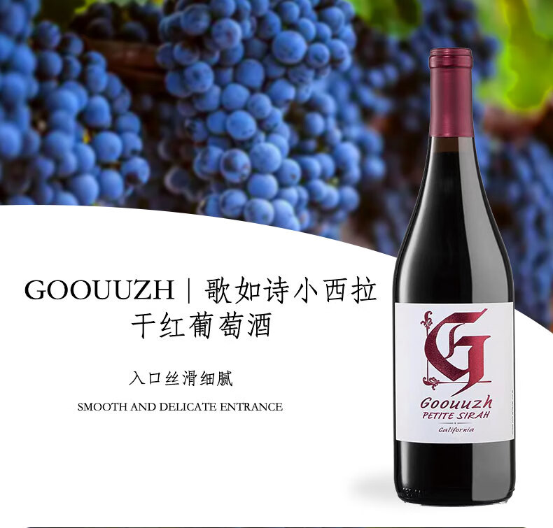 歌如诗【美国红酒大赛银奖】美国加州原瓶进口干红葡萄酒 750ml*6瓶仙粉黛礼盒装