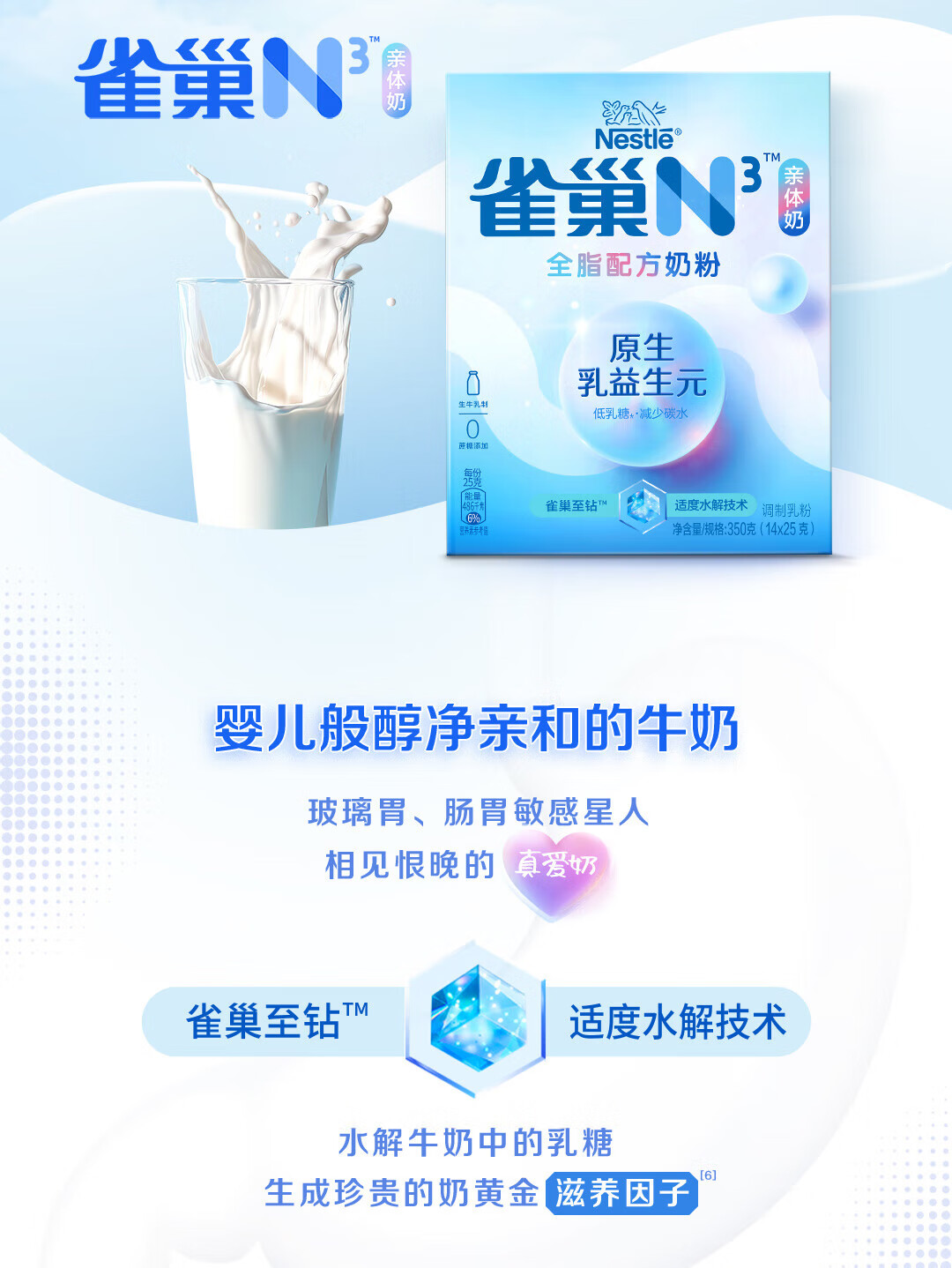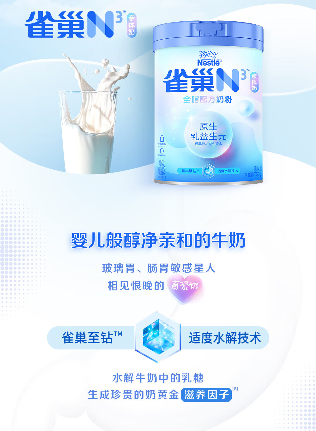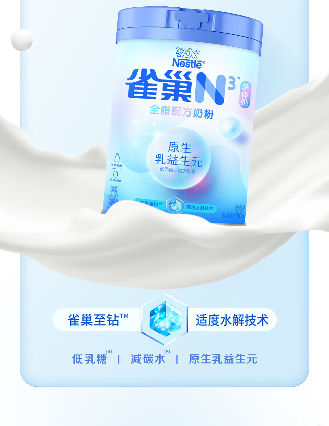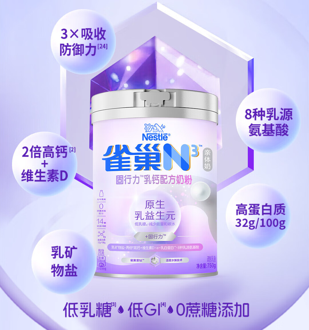 雀巢(Nestle)奶粉 N3亲体奶成人奶粉 送老人送长辈 现货现发 全脂奶粉750g*1罐