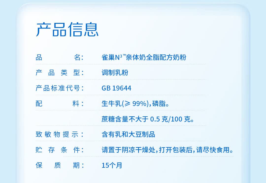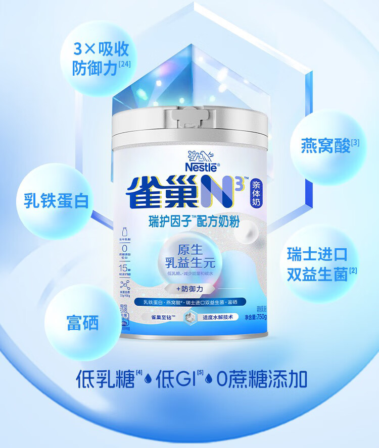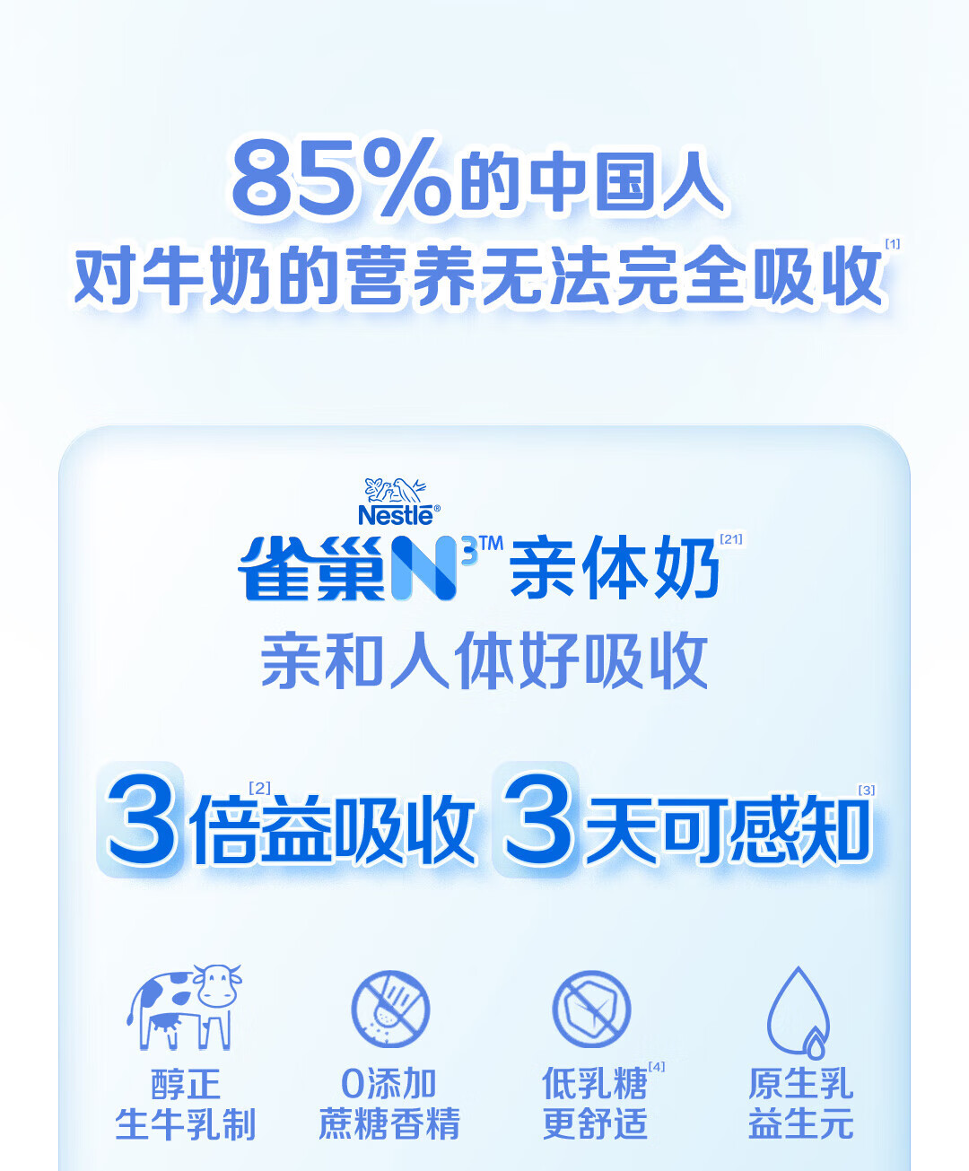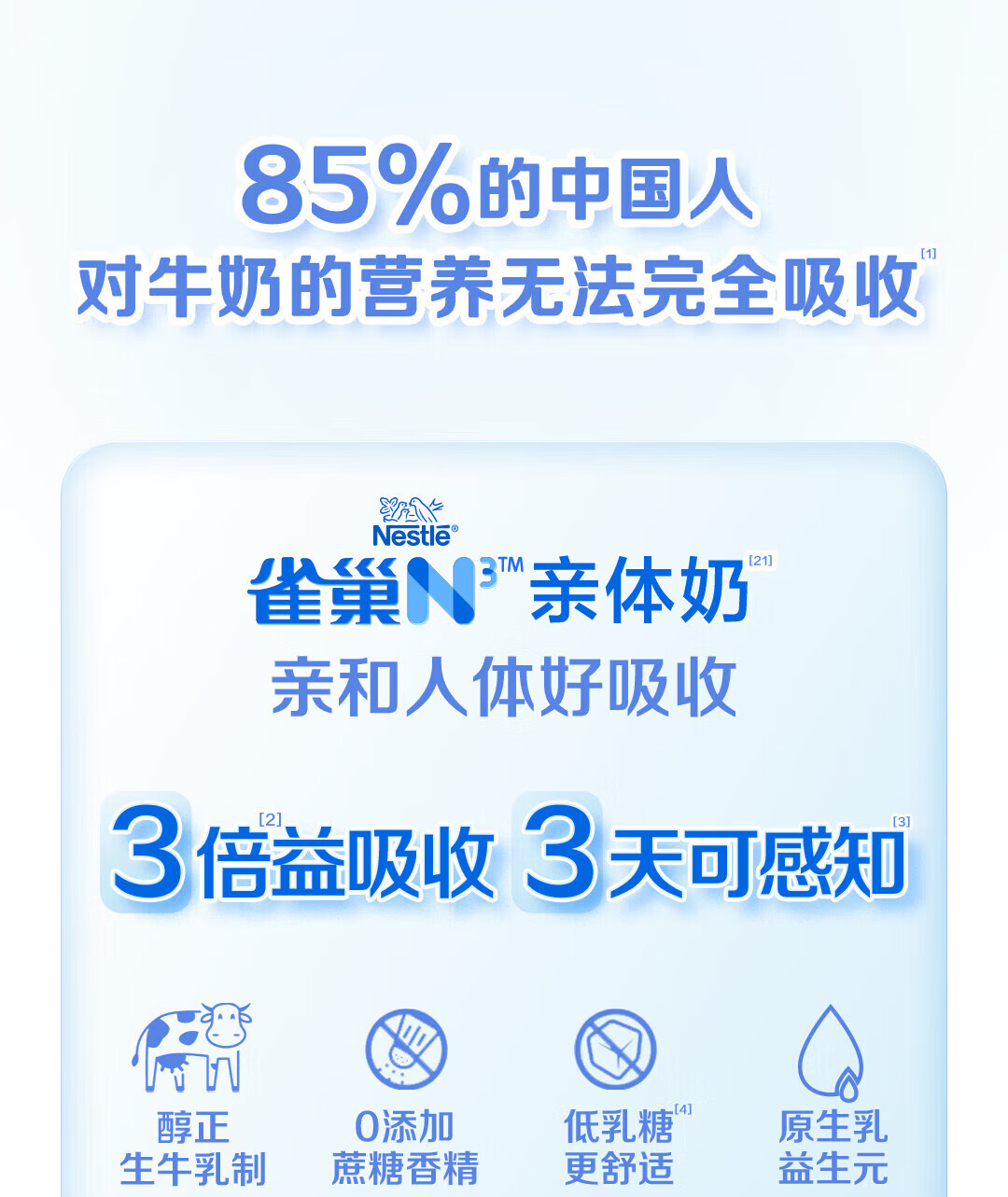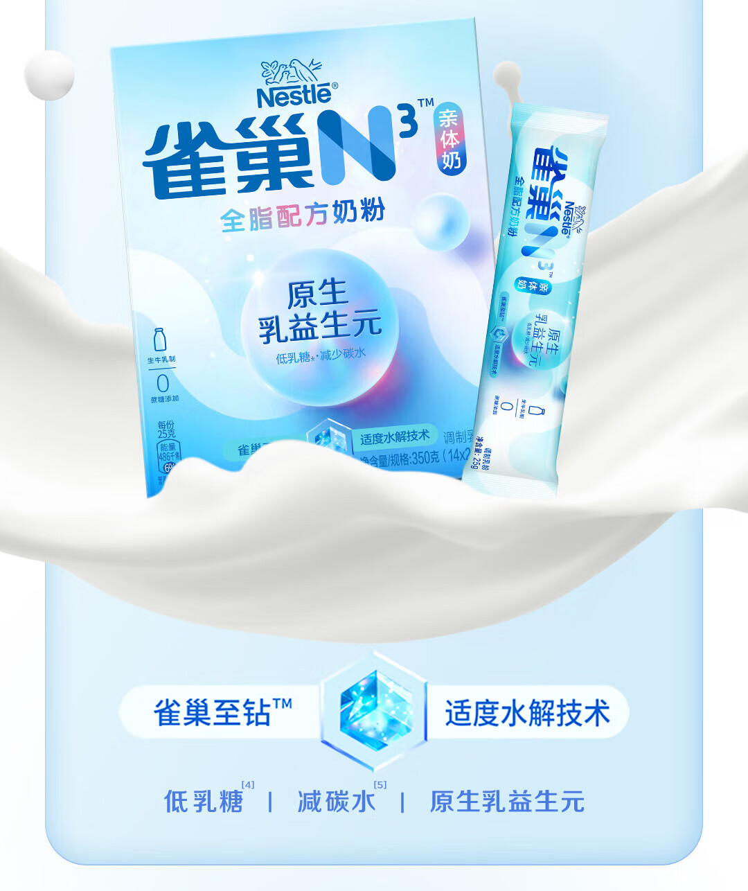 雀巢(Nestle)奶粉 N3亲体奶成人奶粉 送老人送长辈 现货现发 全脂奶粉750g*1罐
