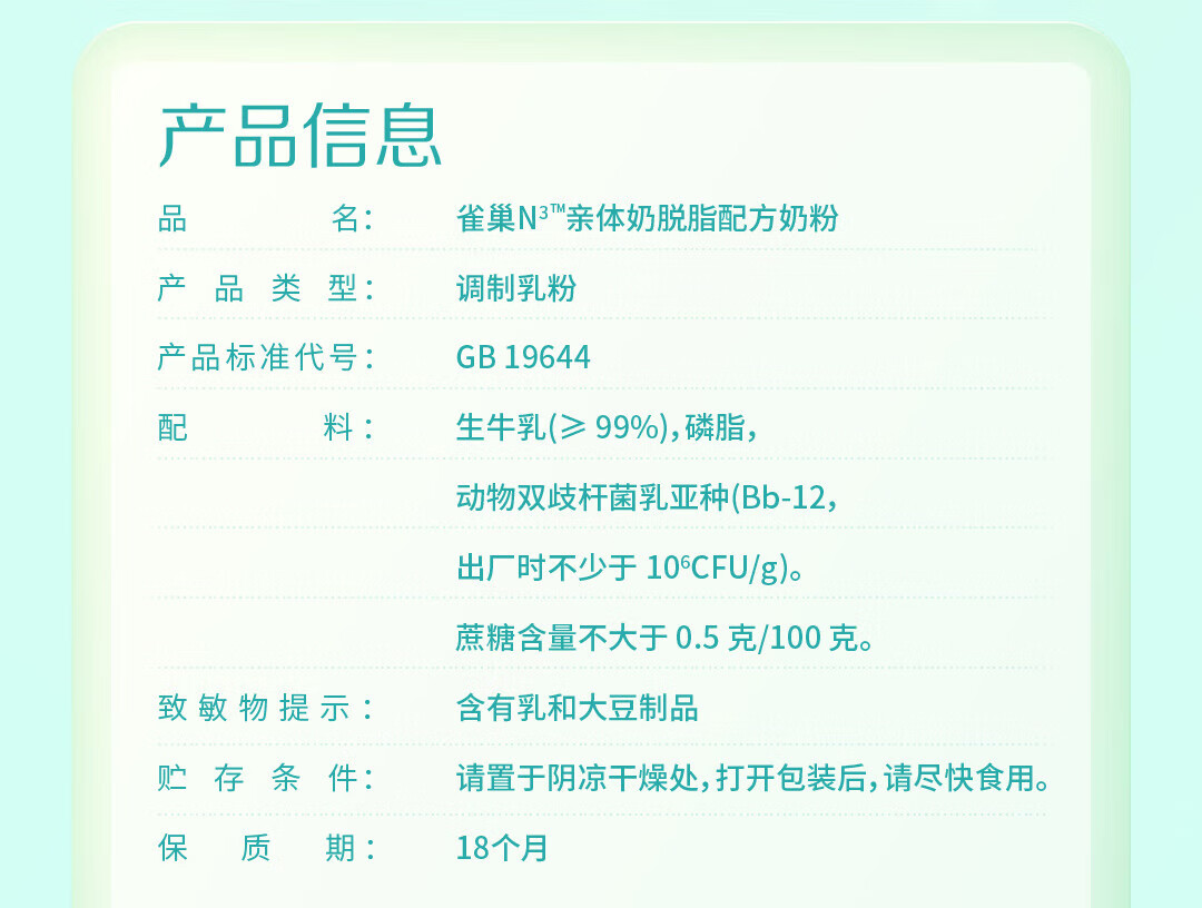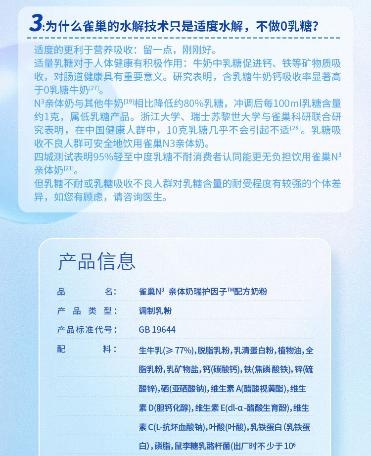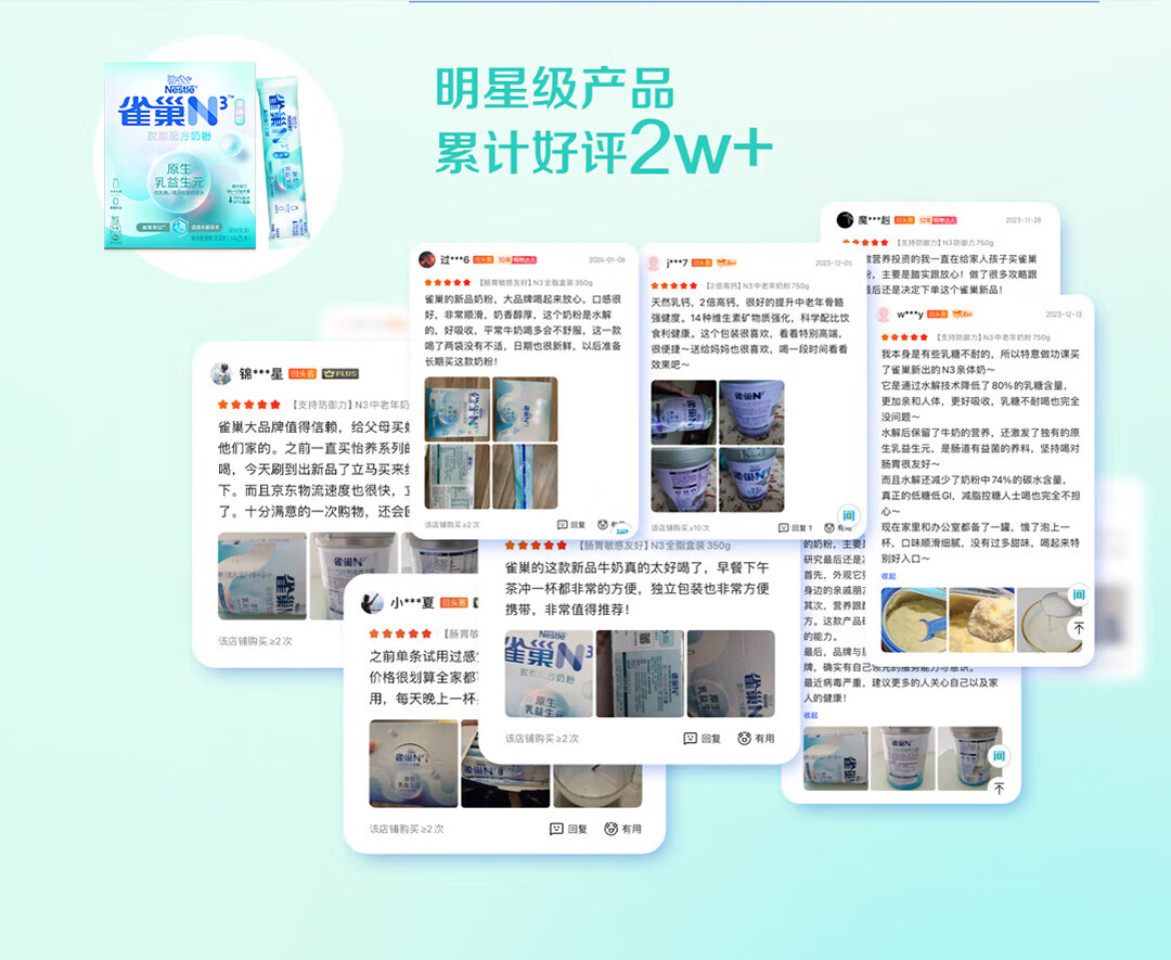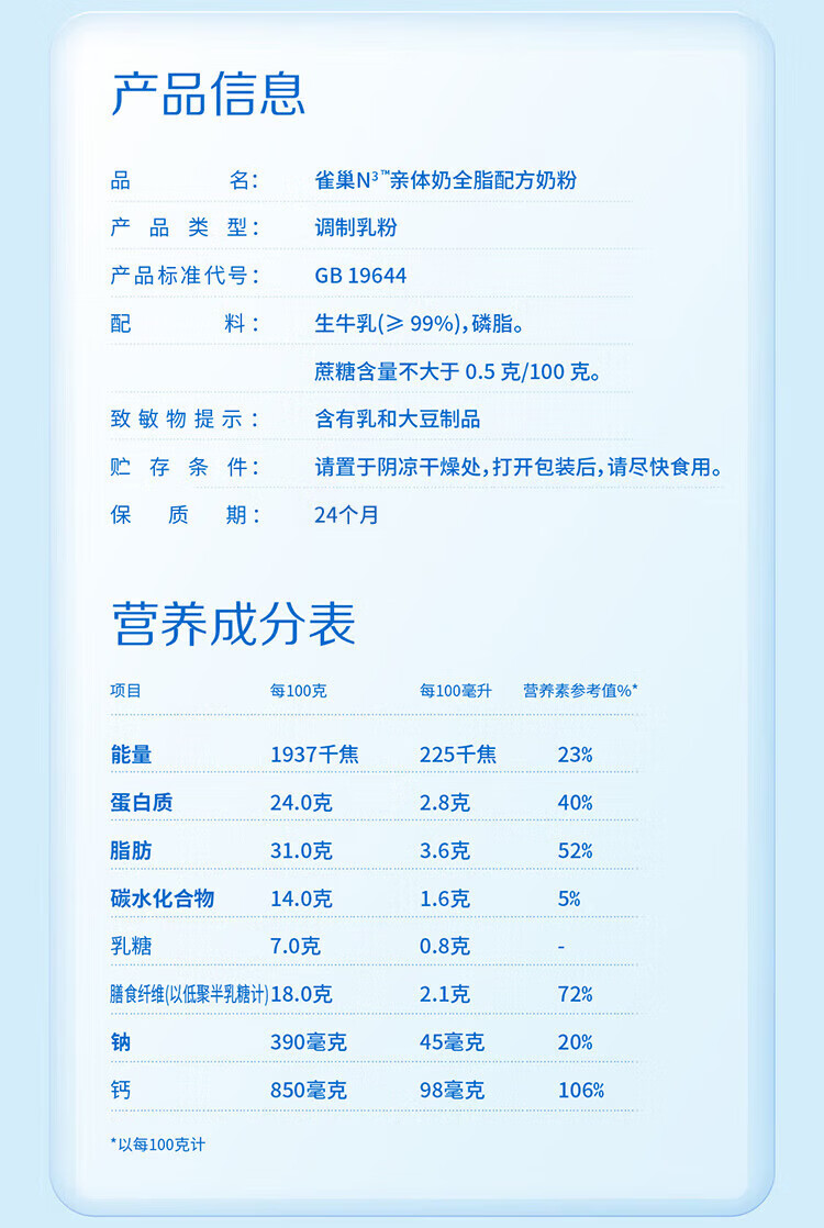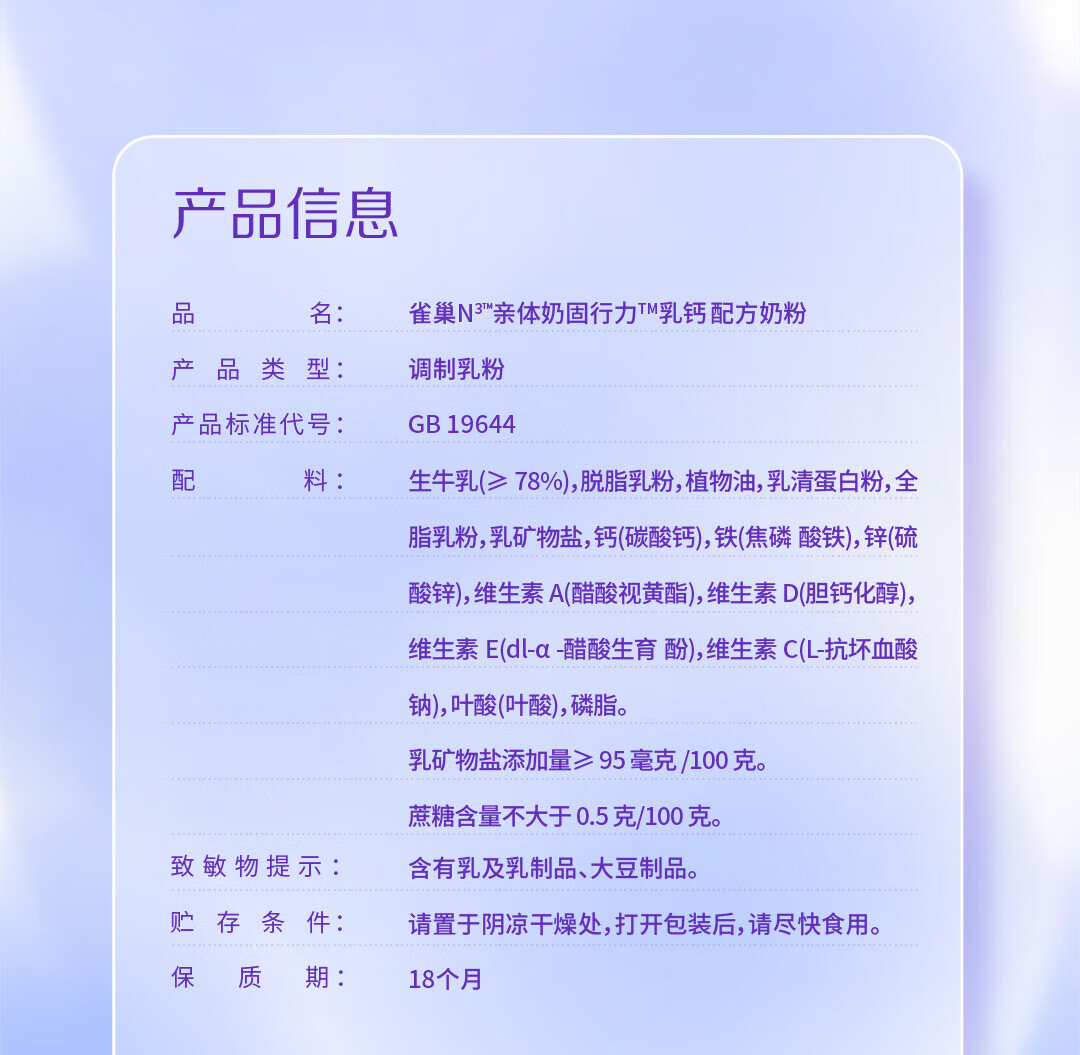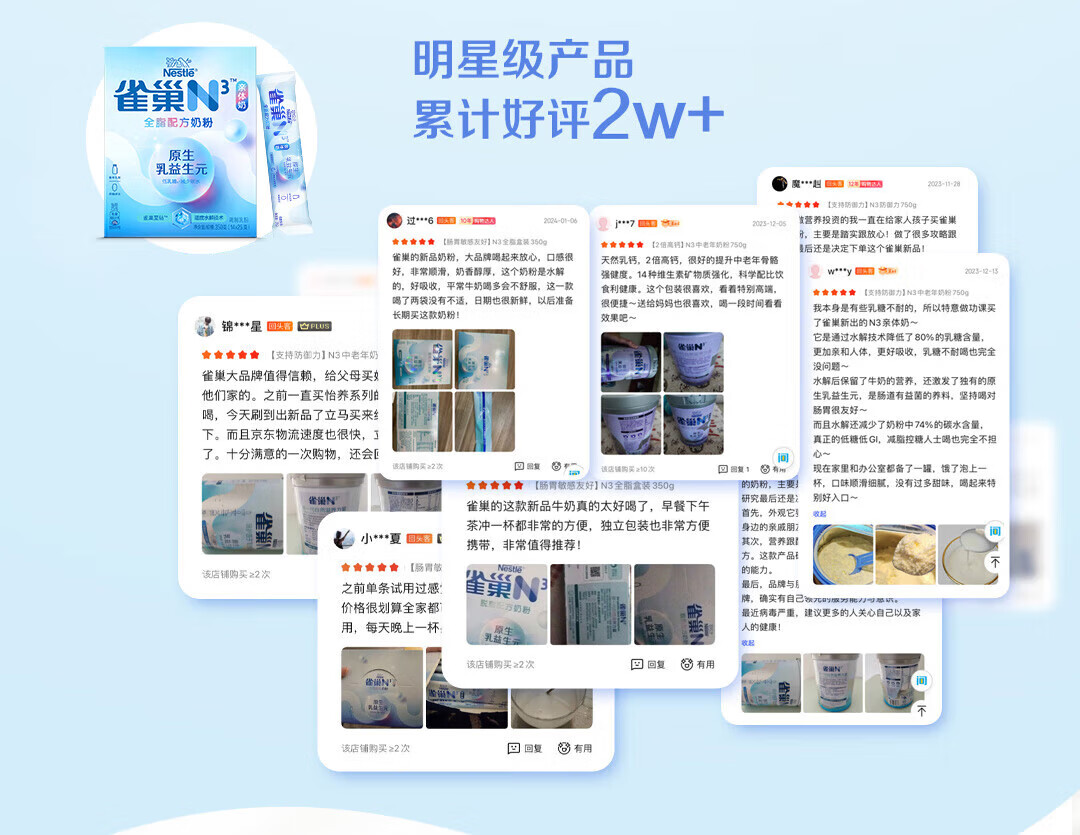雀巢(Nestle)奶粉 N3亲体奶成人奶粉 送老人送长辈 现货现发 全脂奶粉750g*1罐
