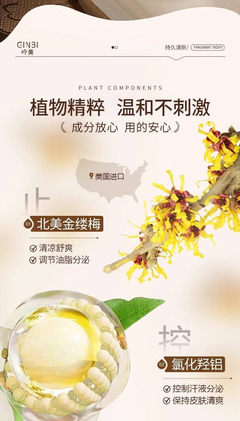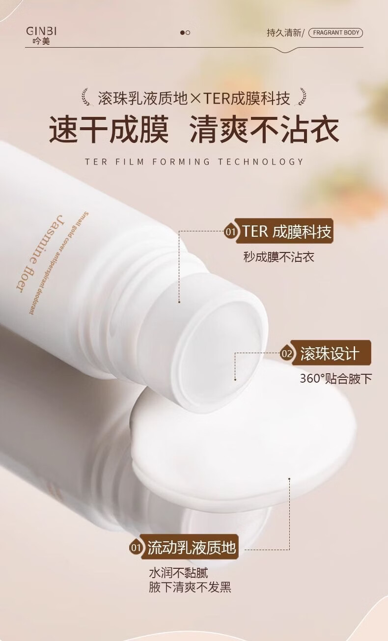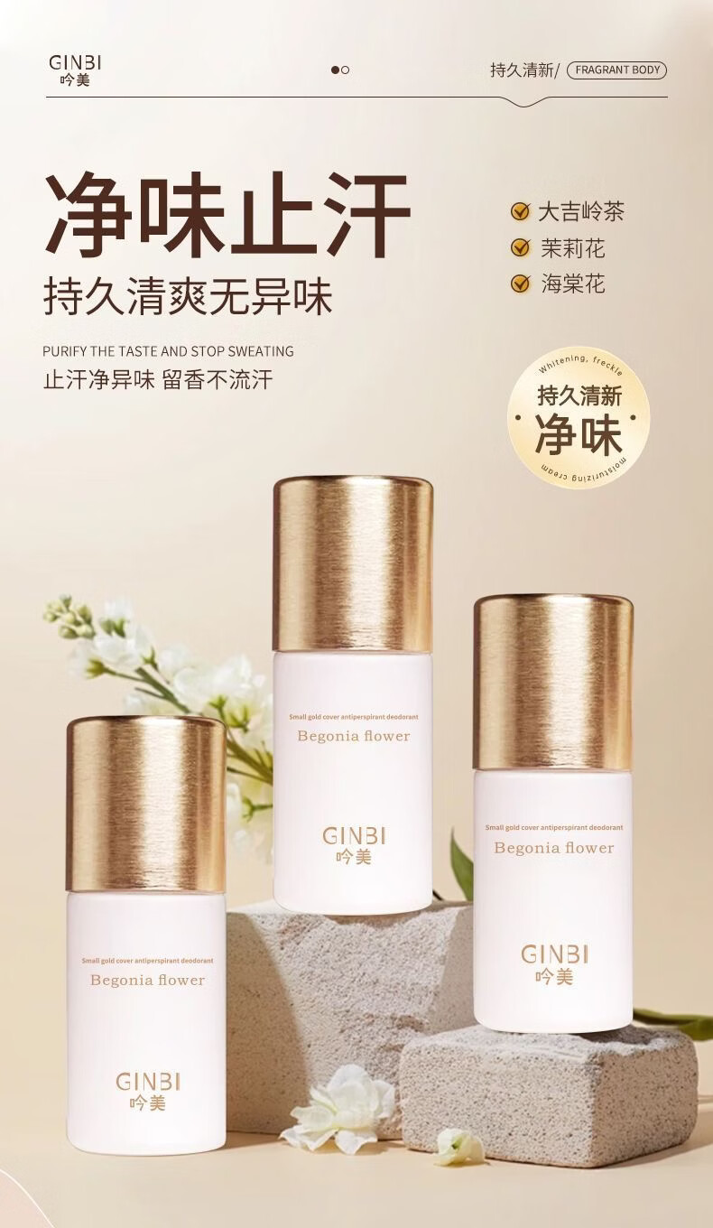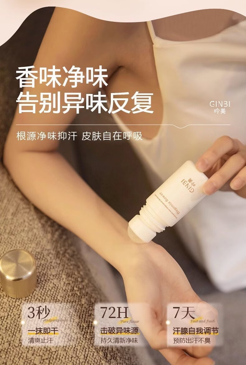 吟美止汗露腋下窝臭清爽去异味滚珠持久净味香体露男女士持久淡香 走珠止汗露50ml×2瓶