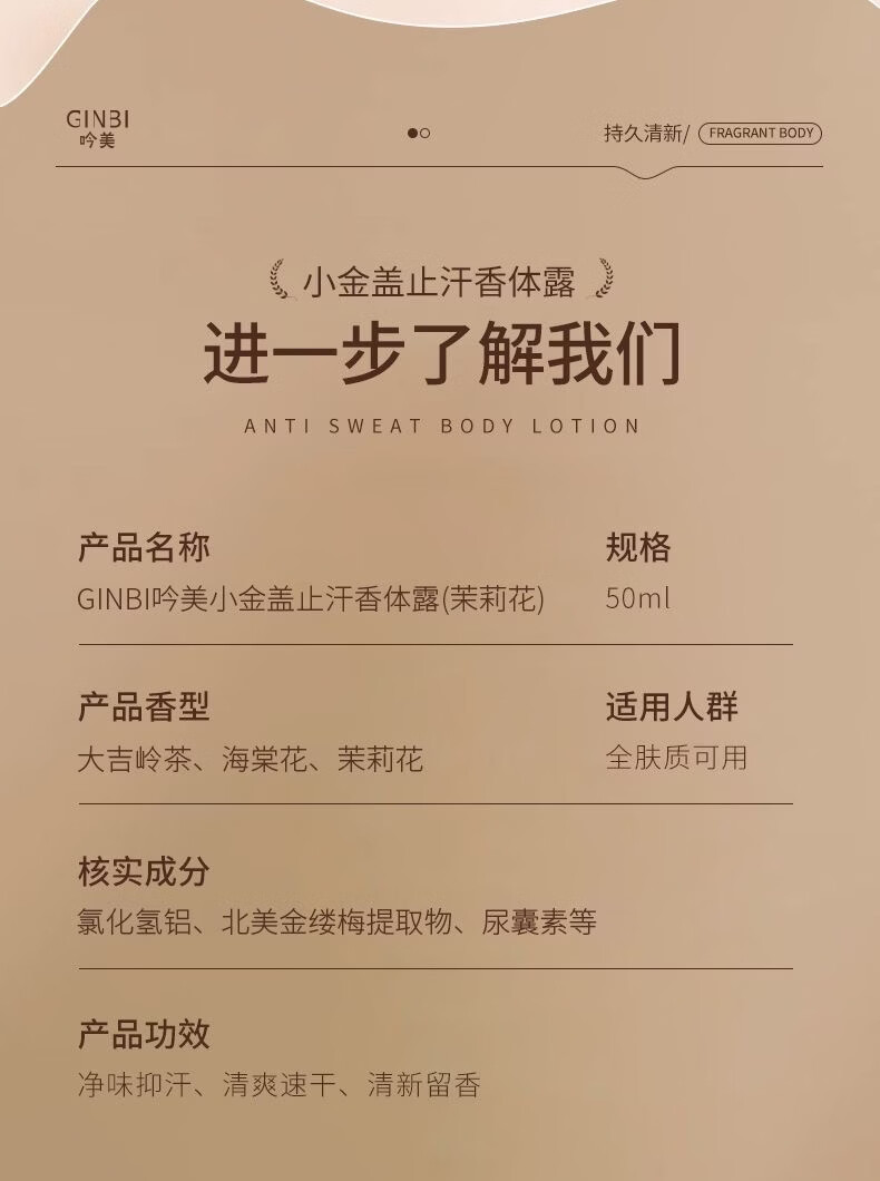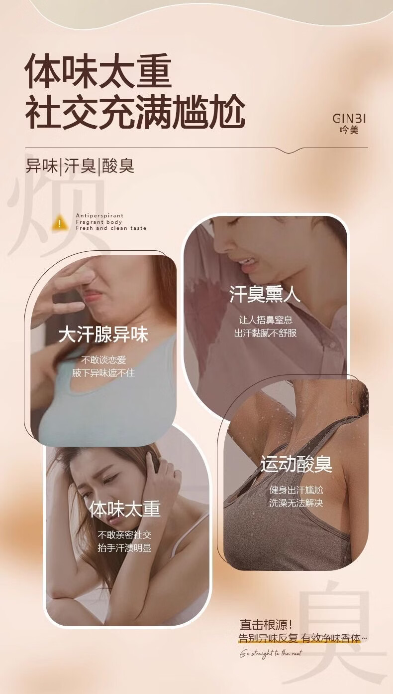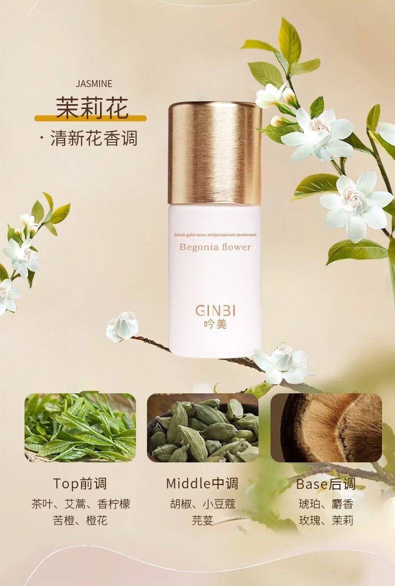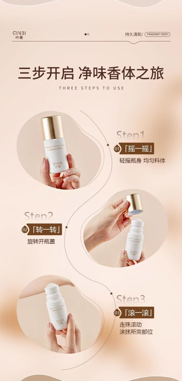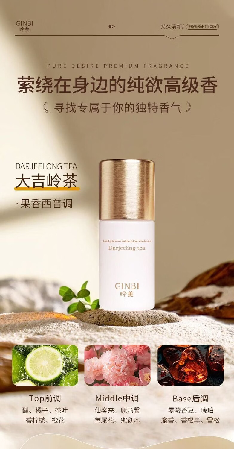 吟美止汗露腋下窝臭清爽去异味滚珠持久净味香体露男女士持久淡香 走珠止汗露50ml×2瓶