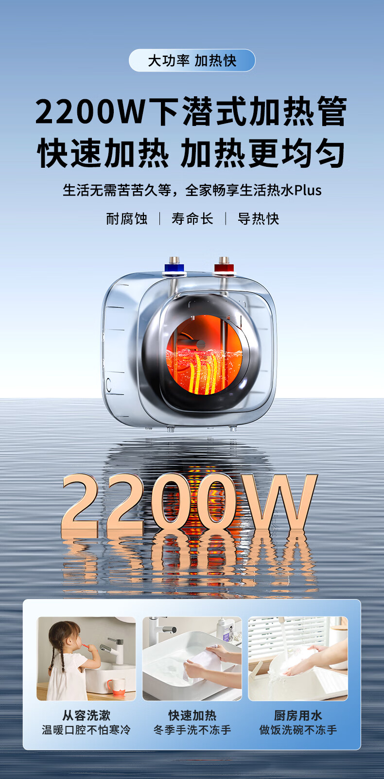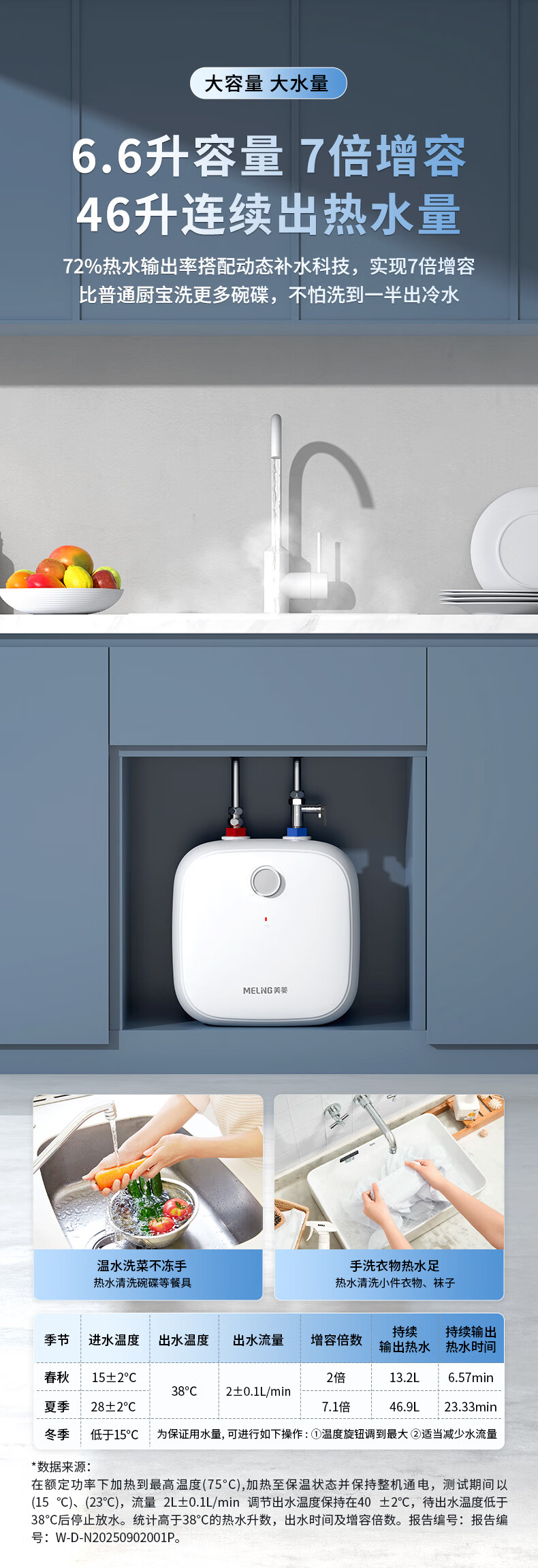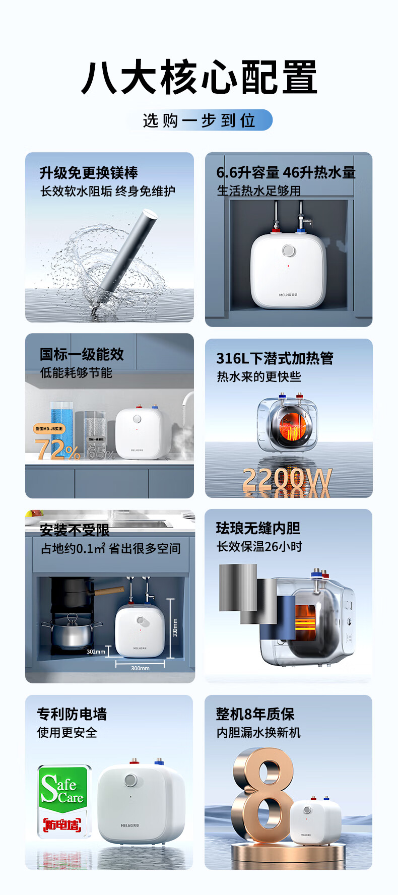 美菱【8年质保】6.6升小厨宝家用电热水器2200W一级能效国家补贴15%免更换镁棒专利防电墙MD-J6