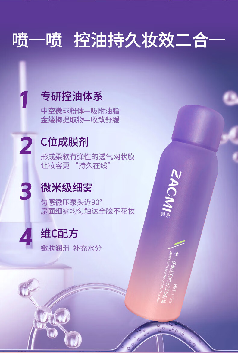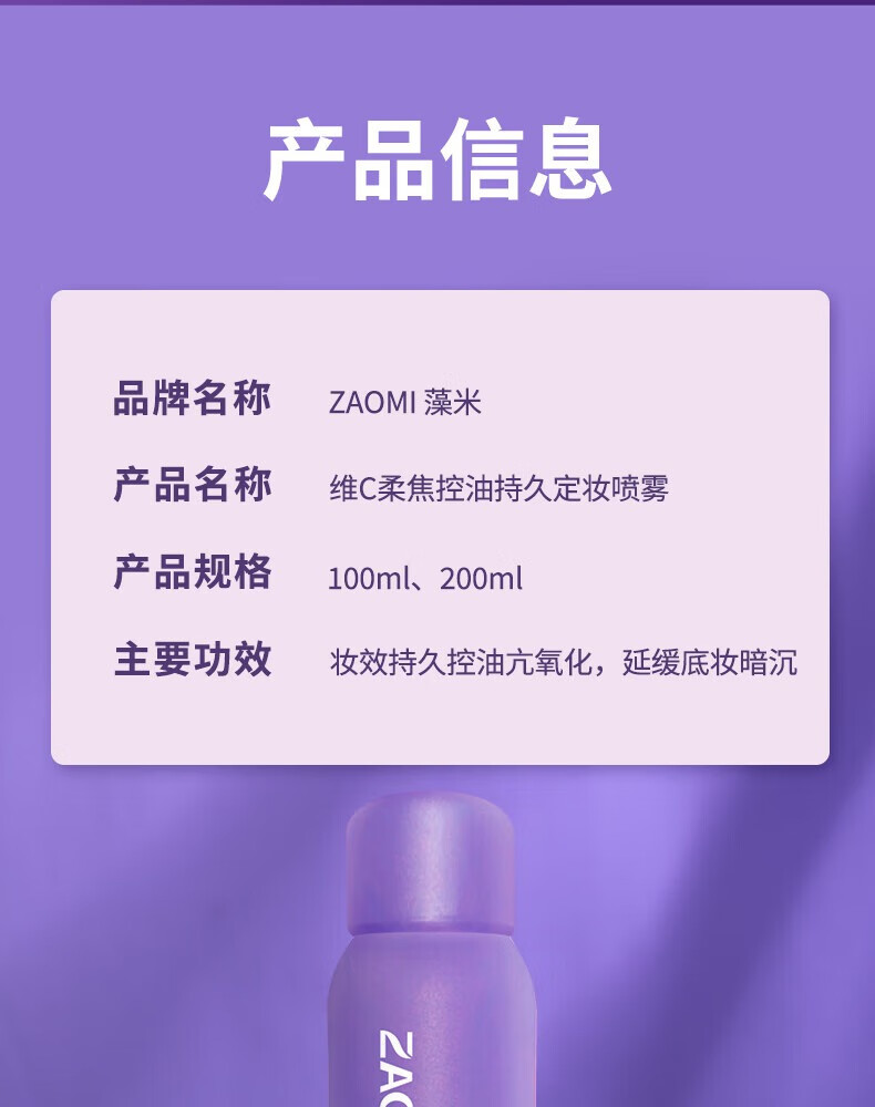 藻米【便宜包邮专享】维C柔焦控油持久定妆喷雾100ML 200ML修饰油光 100ml单支 控油专研体系