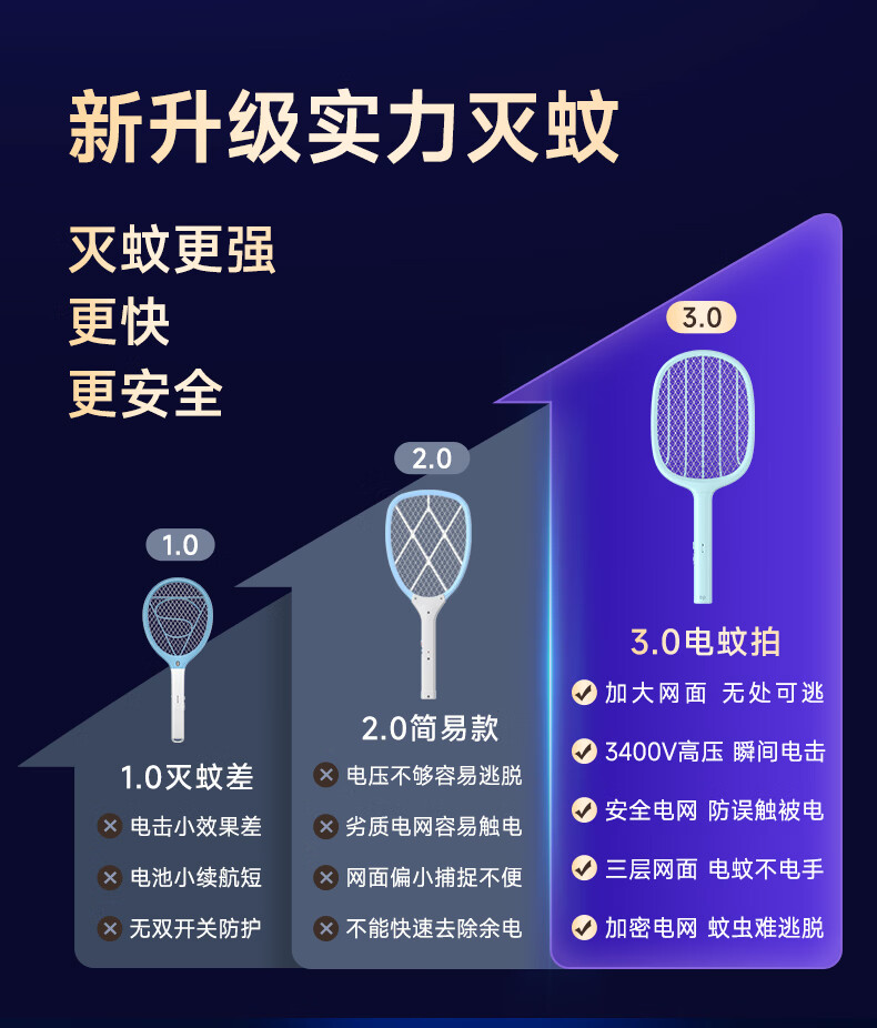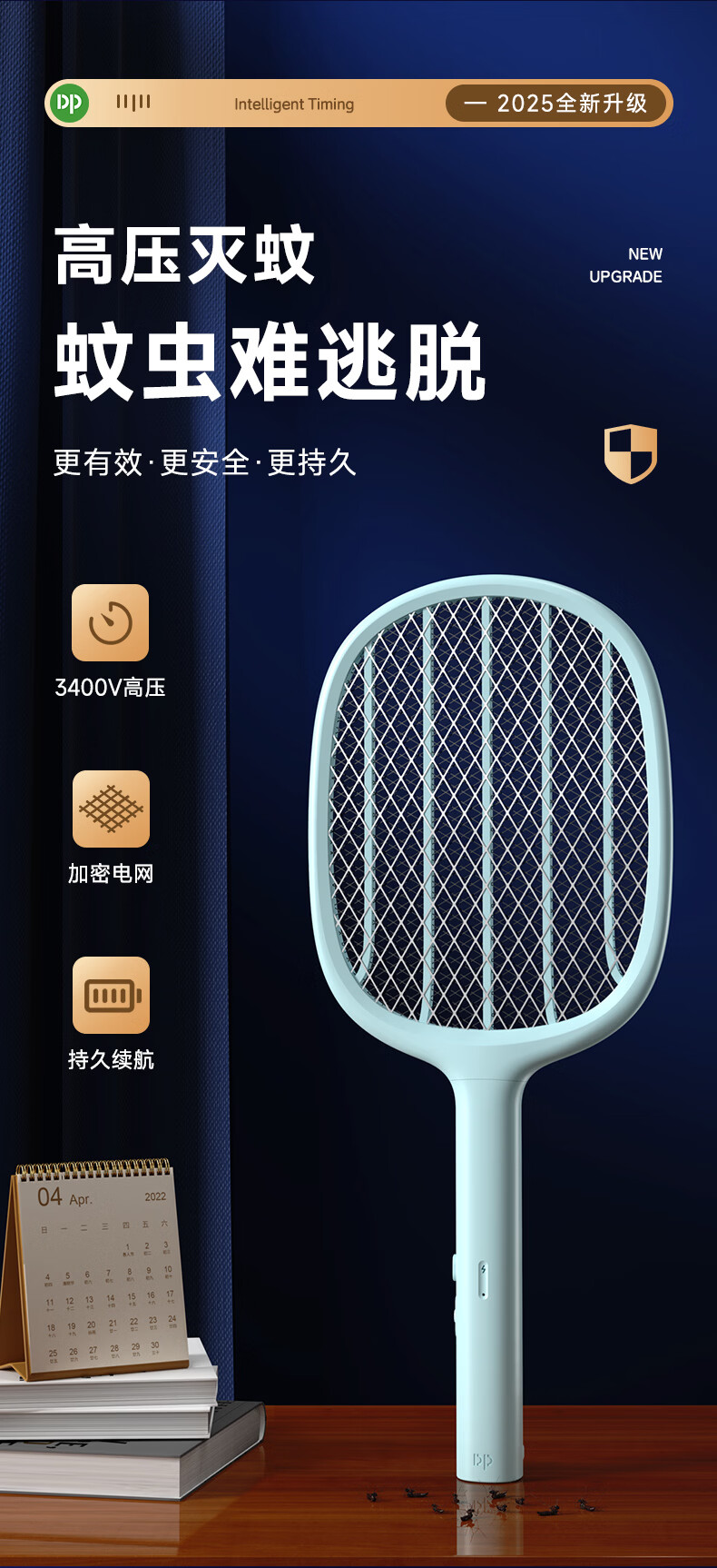 久量(DP)电蚊拍大网面LED充电式灭蚊器家用诱蚊灭蚊苍蝇拍大容量驱蚊神器 普通款【三层电网+高效安全】
