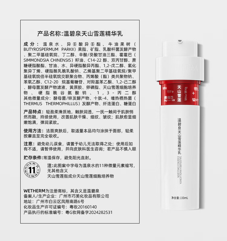 温碧泉套装紧致抗皱保湿补水华晨宇同款小红芯天山雪莲套装妈妈护肤礼物 【旅行装】水50ml+乳50ml