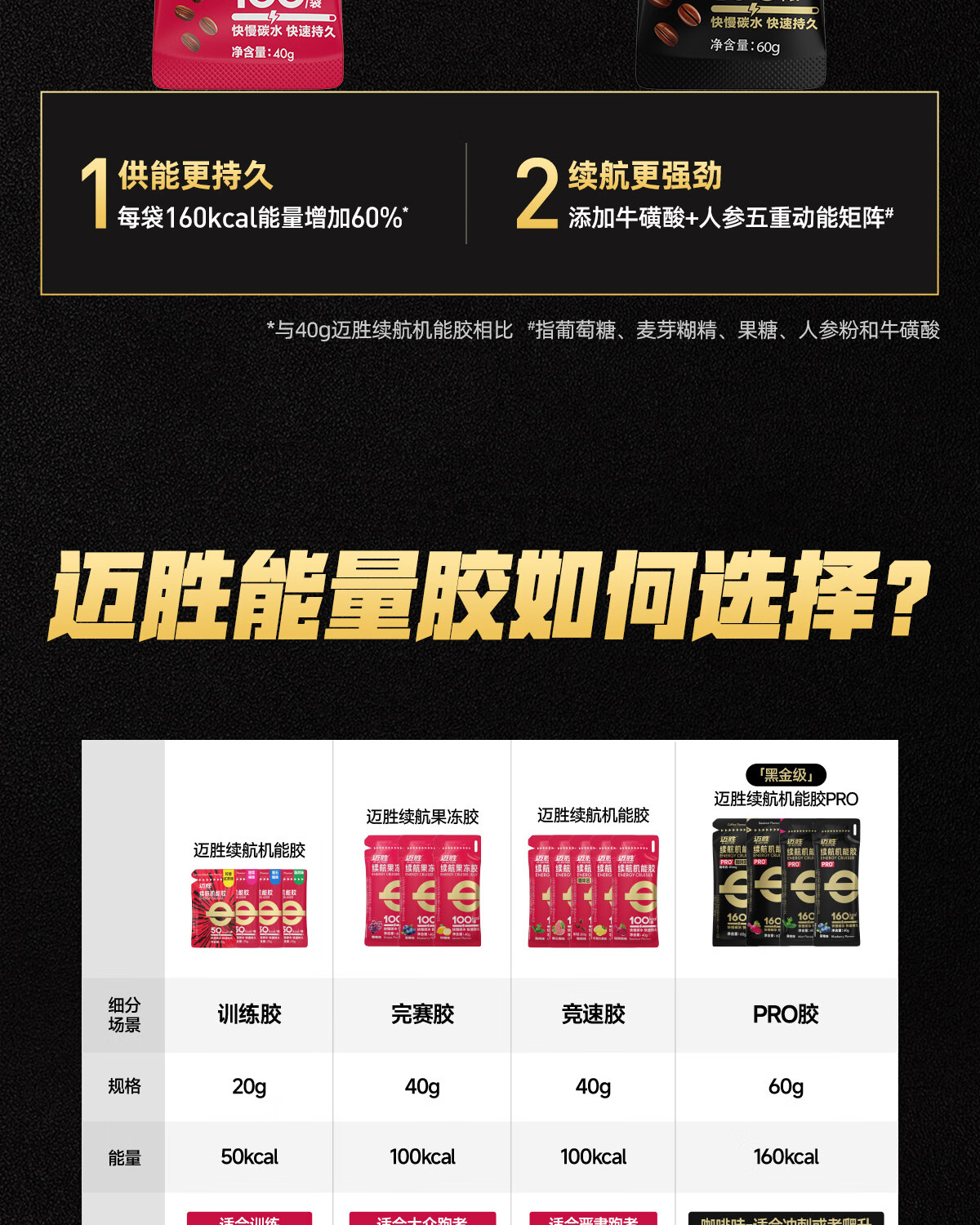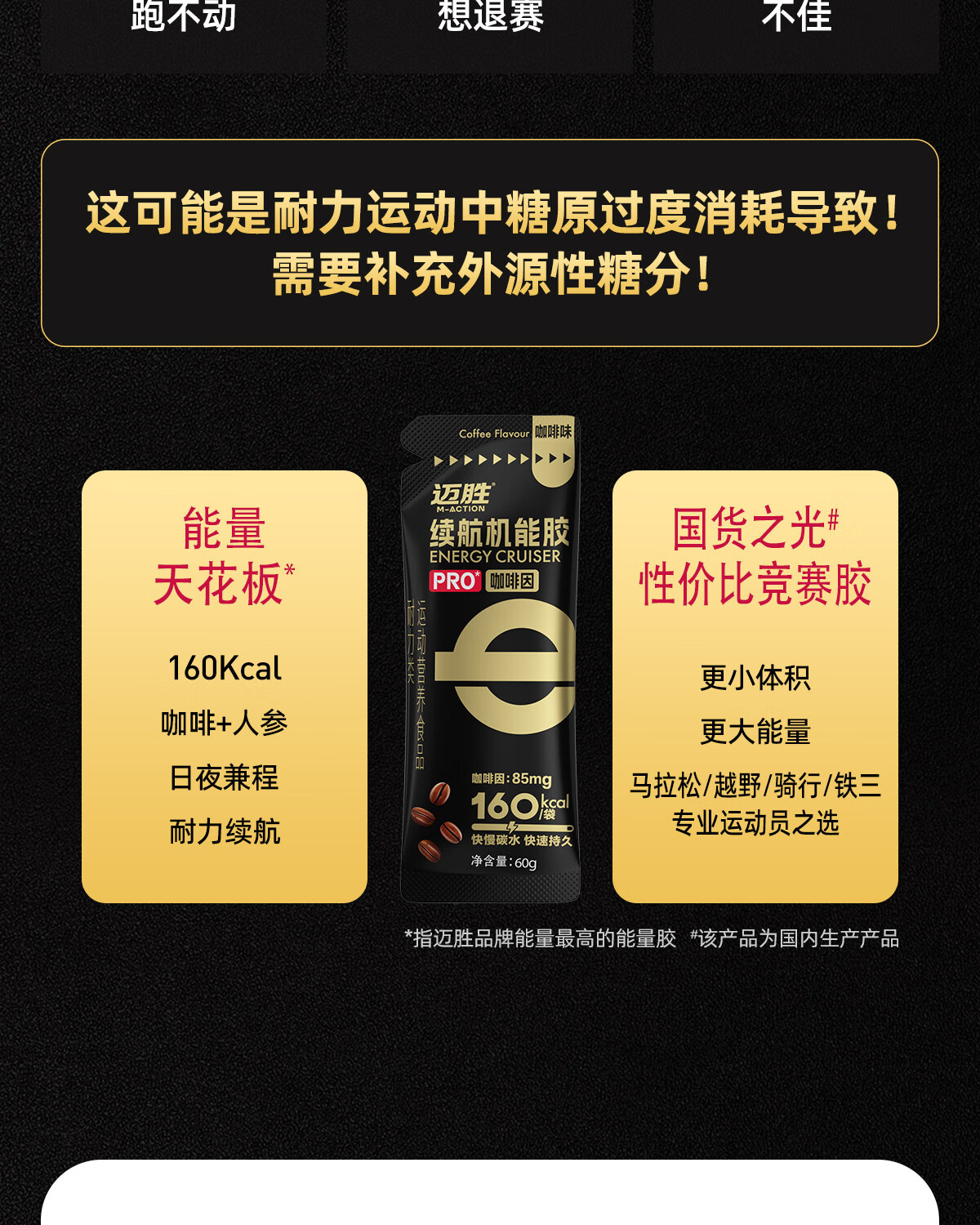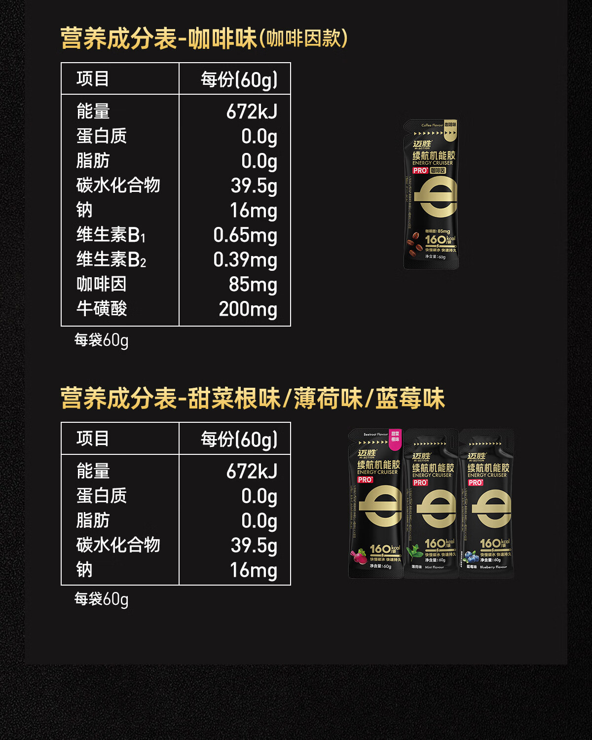 迈胜黑胶能量胶马拉松跑步越野骑行户外运动能量补剂续航机能胶饮料 【尝鲜】能量胶 60g*2袋 (口味随机)