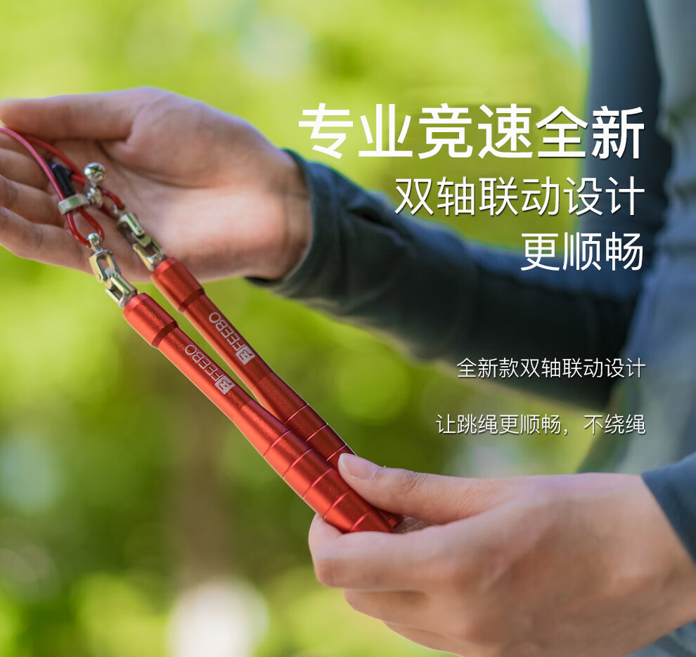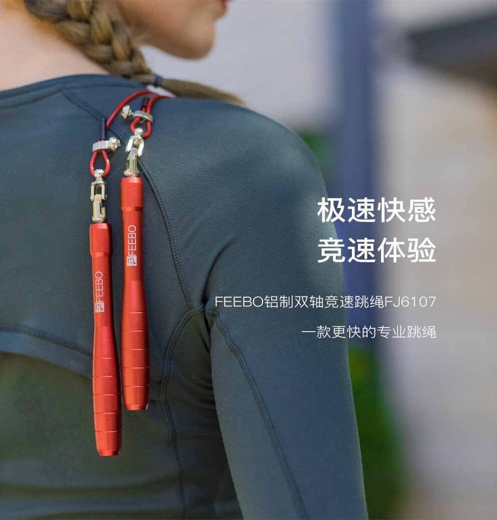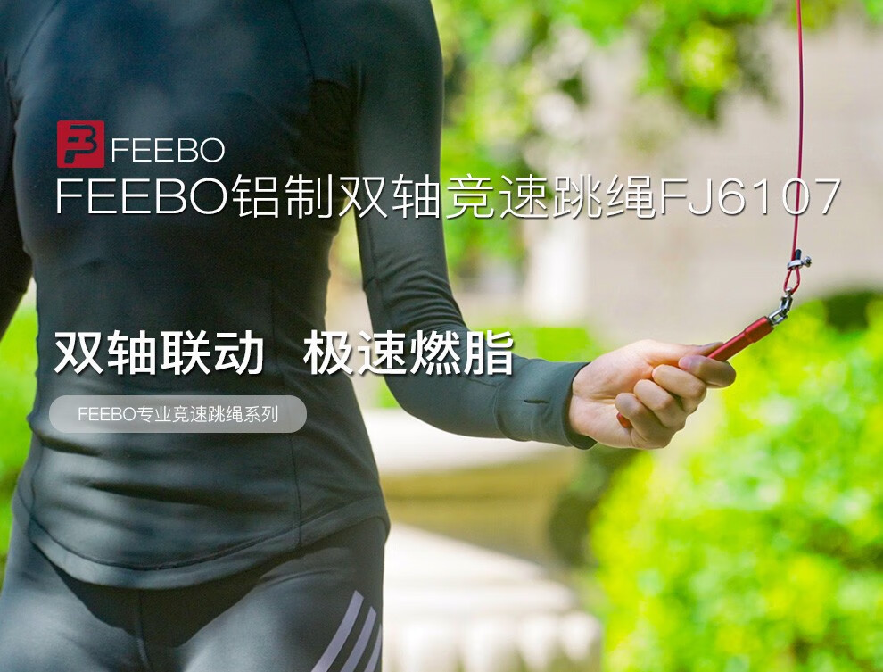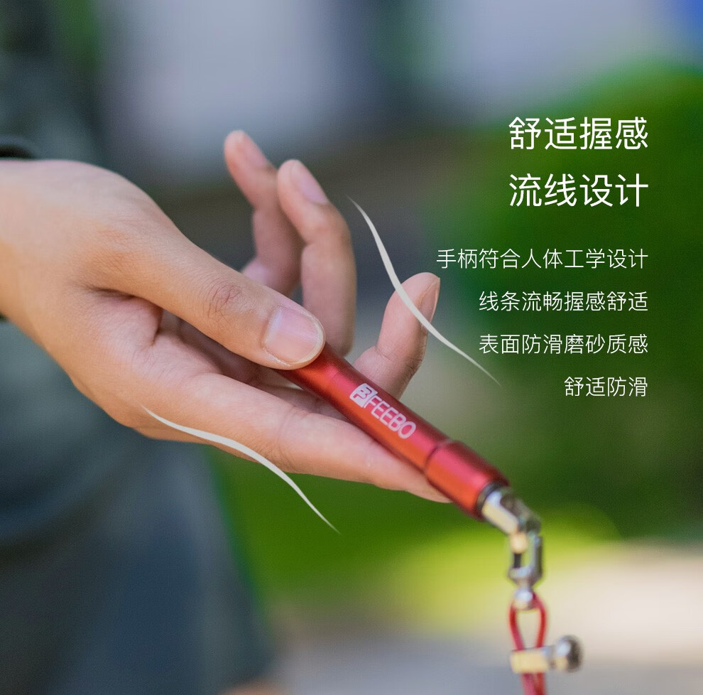 FEEBO跳绳轴承竞速中考体育专用老师推荐专业成人健身比赛防缠绕钢丝绳 双轴竞速款FJ6107-红色3m*4mm