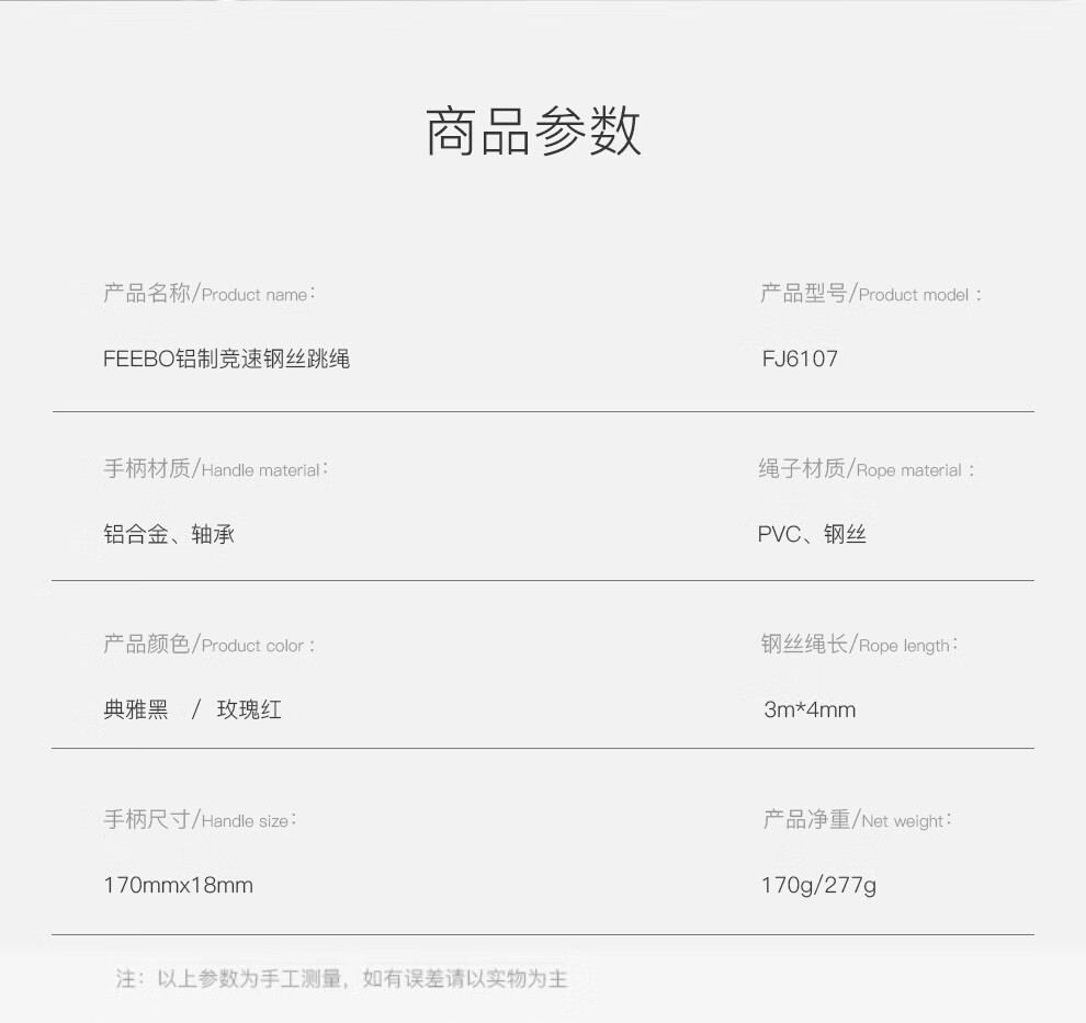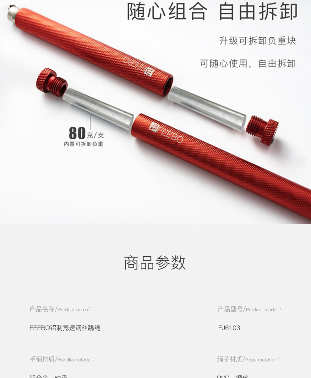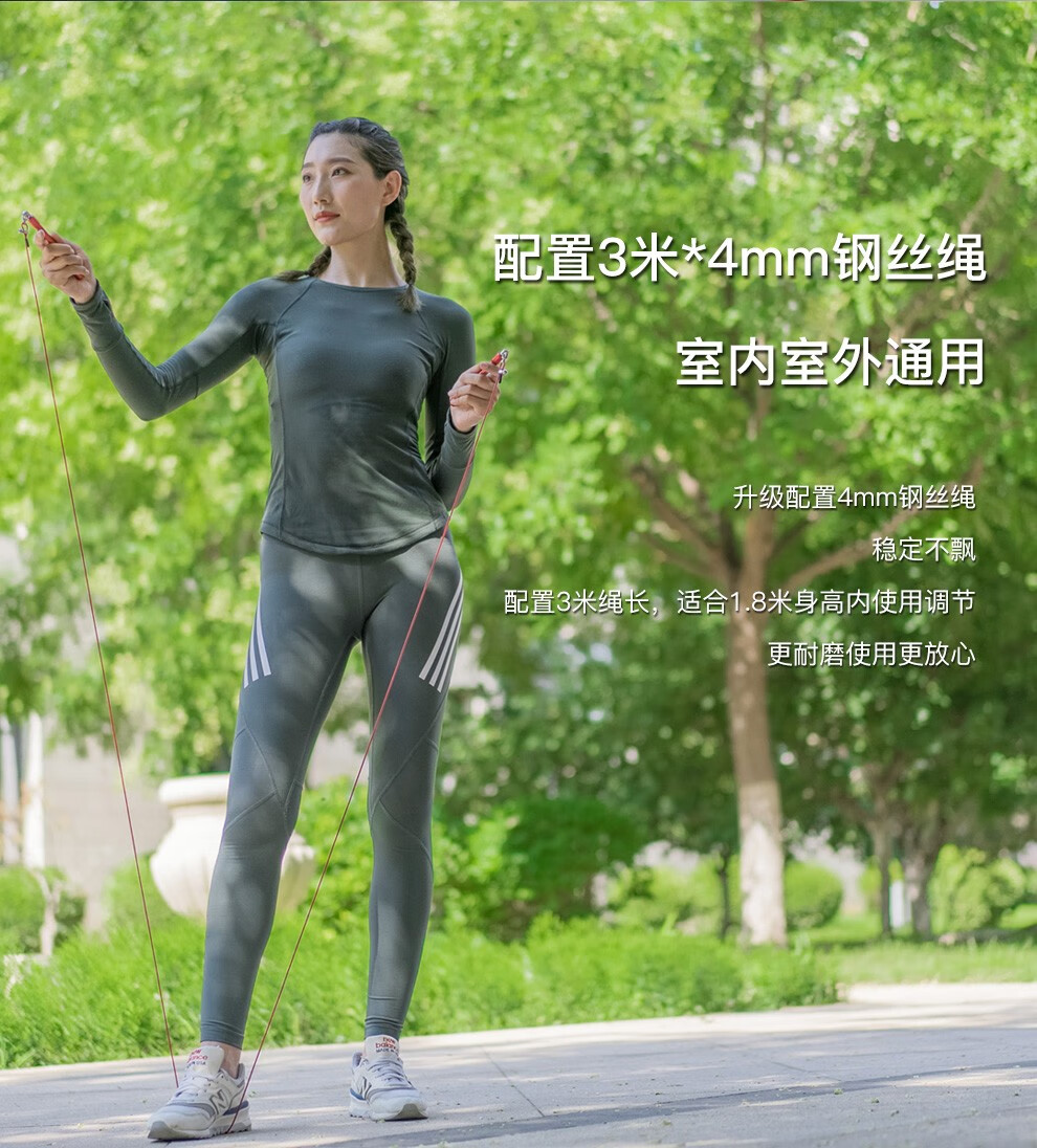 FEEBO跳绳轴承竞速中考体育专用老师推荐专业成人健身比赛防缠绕钢丝绳 双轴竞速款FJ6107-红色3m*4mm