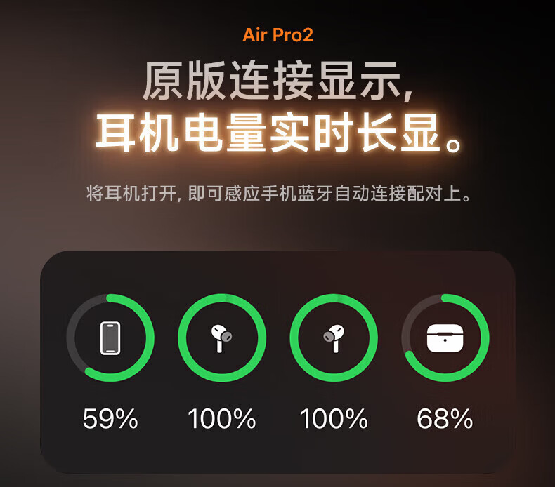 VGIO【丢失免费补发】Air第5代蓝牙耳机无线适配苹果华为主动降噪iPhone17/16/15/14/13全入耳式华强北 开盖弹窗+主动降噪+滑动调音量+空间音頻+改名定位 【顶配版】支持全功能