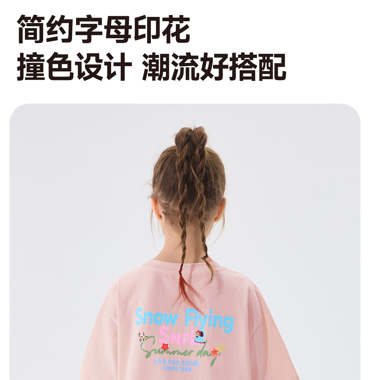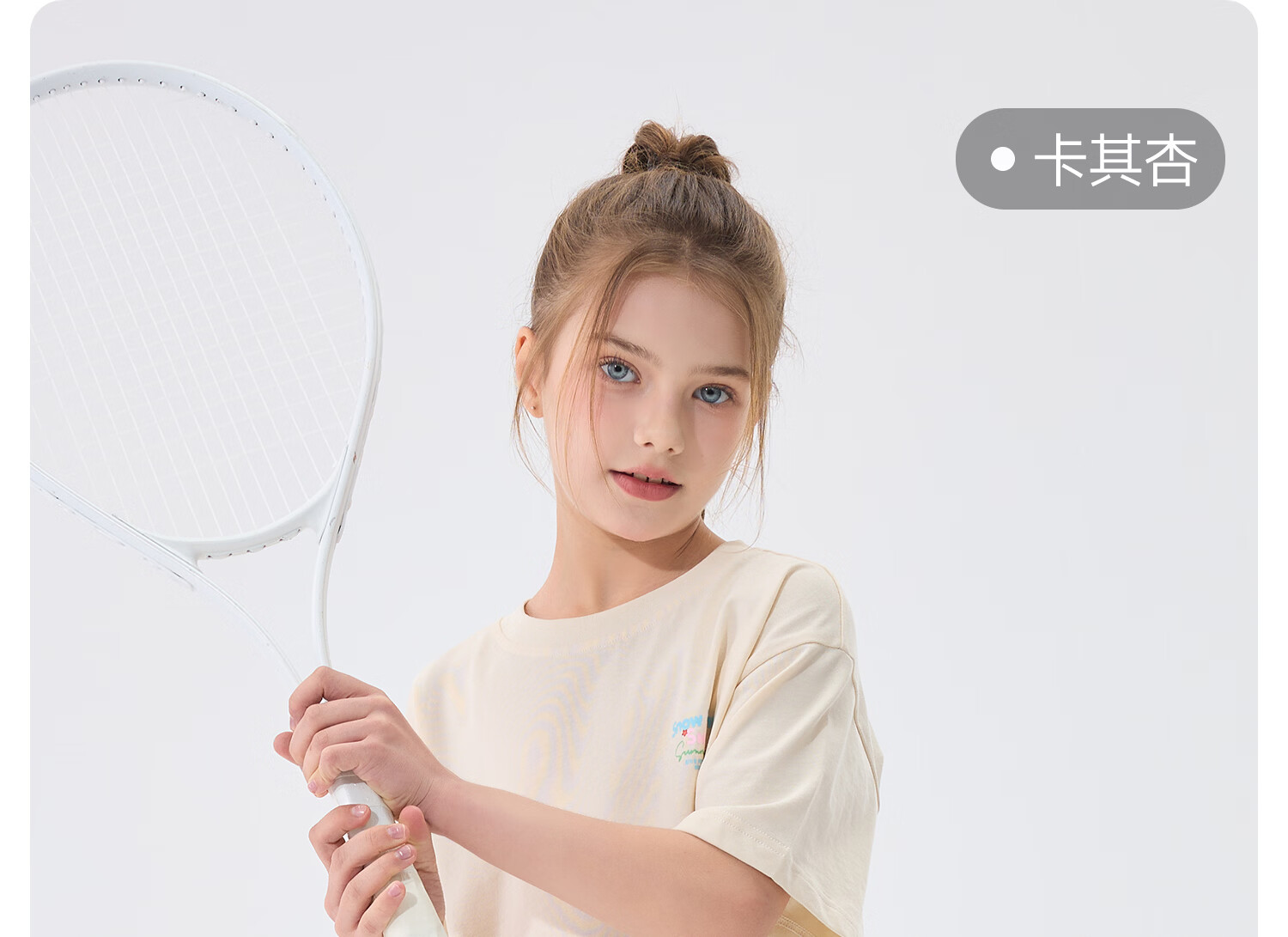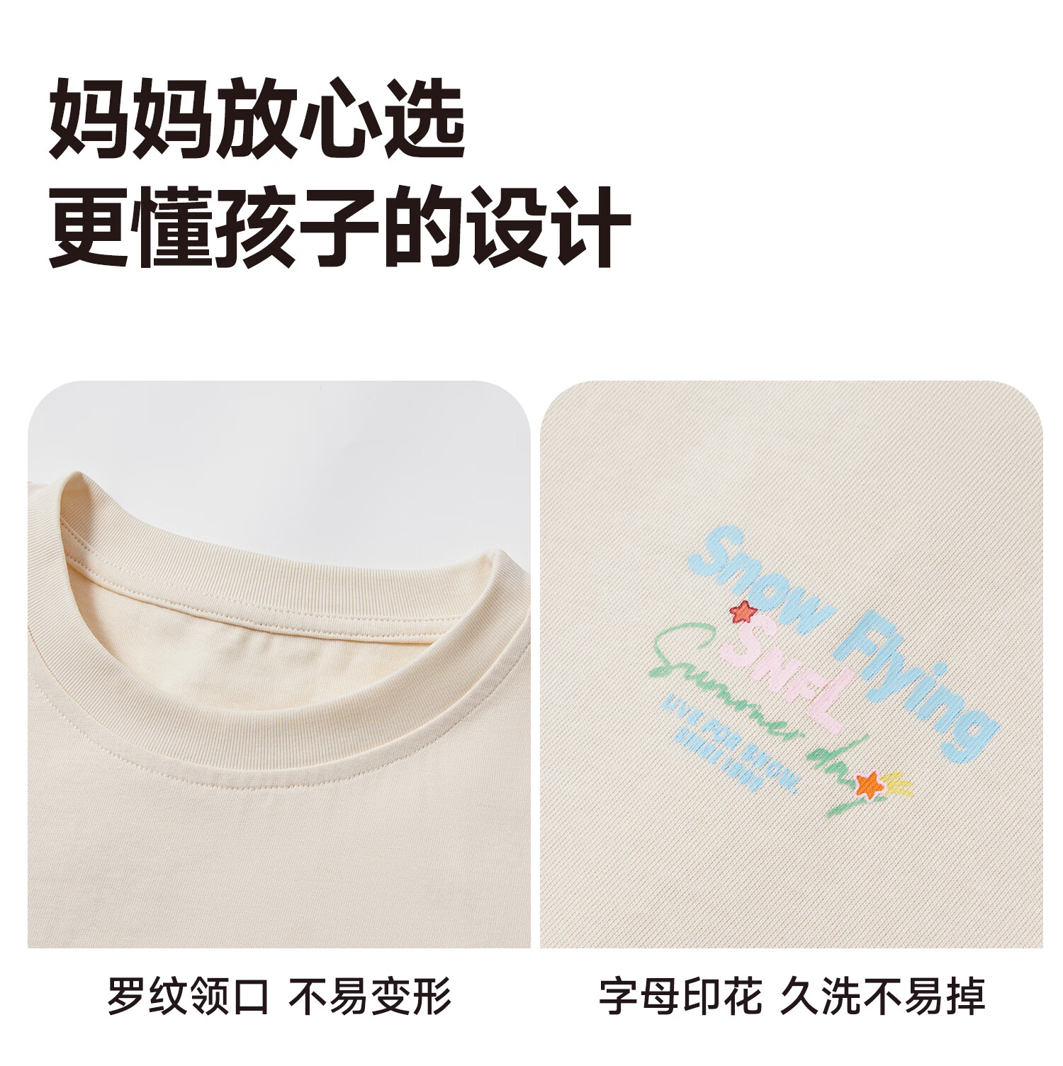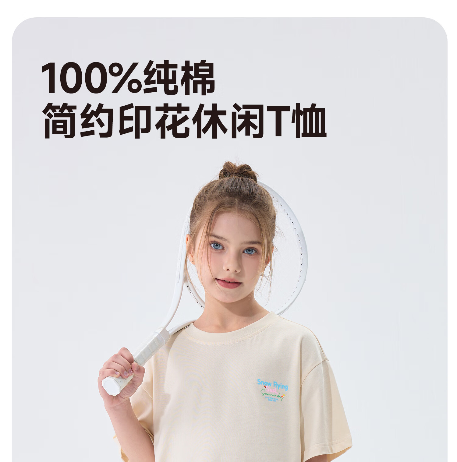 雪中飞(SNOWFLYING)儿童短袖2026夏季夏装男女童新款纯棉休闲运动上衣打底衫 卡其杏 140