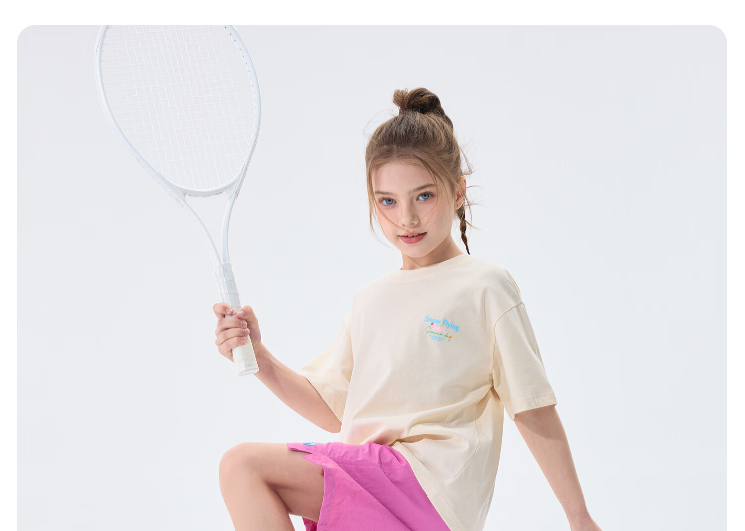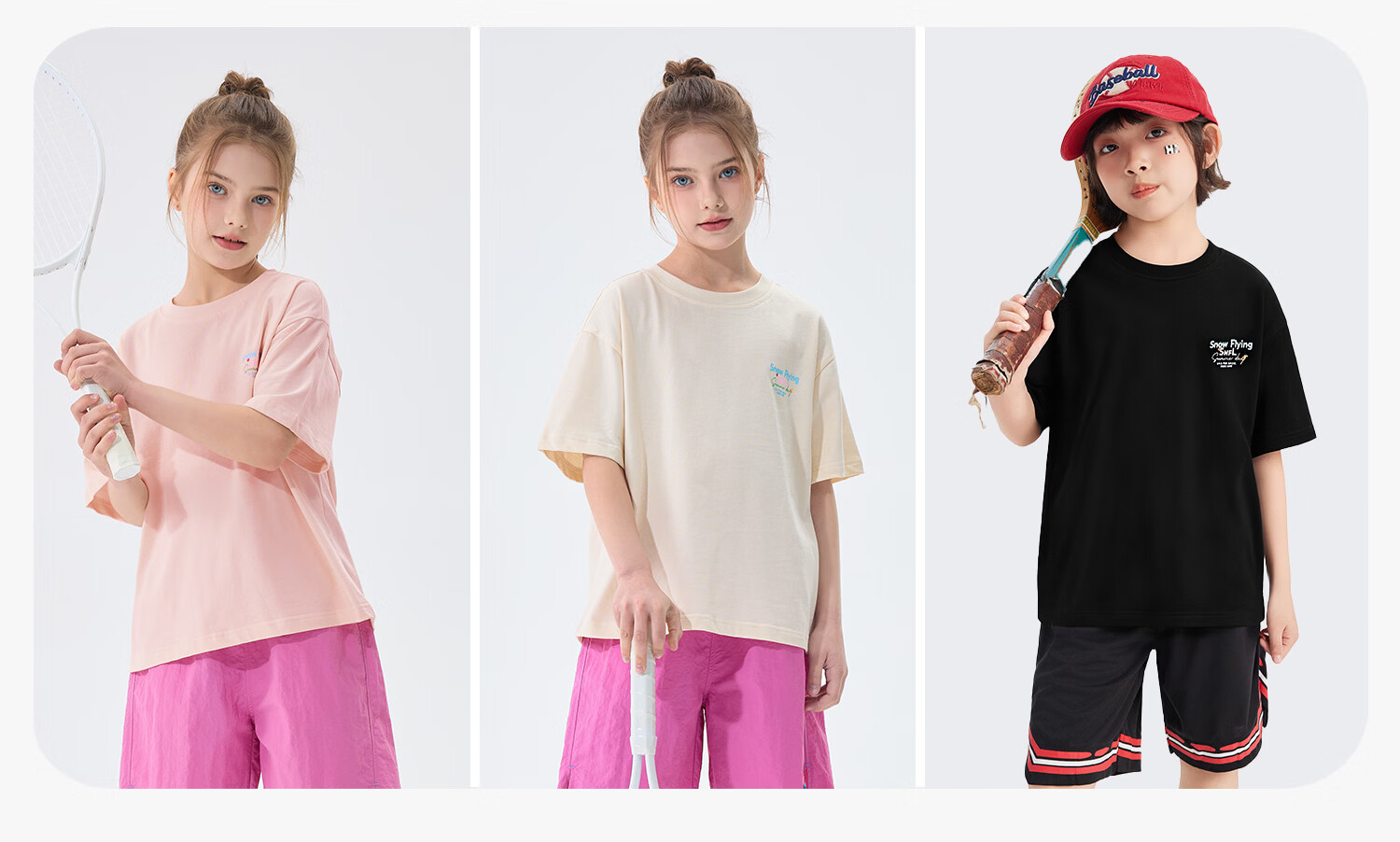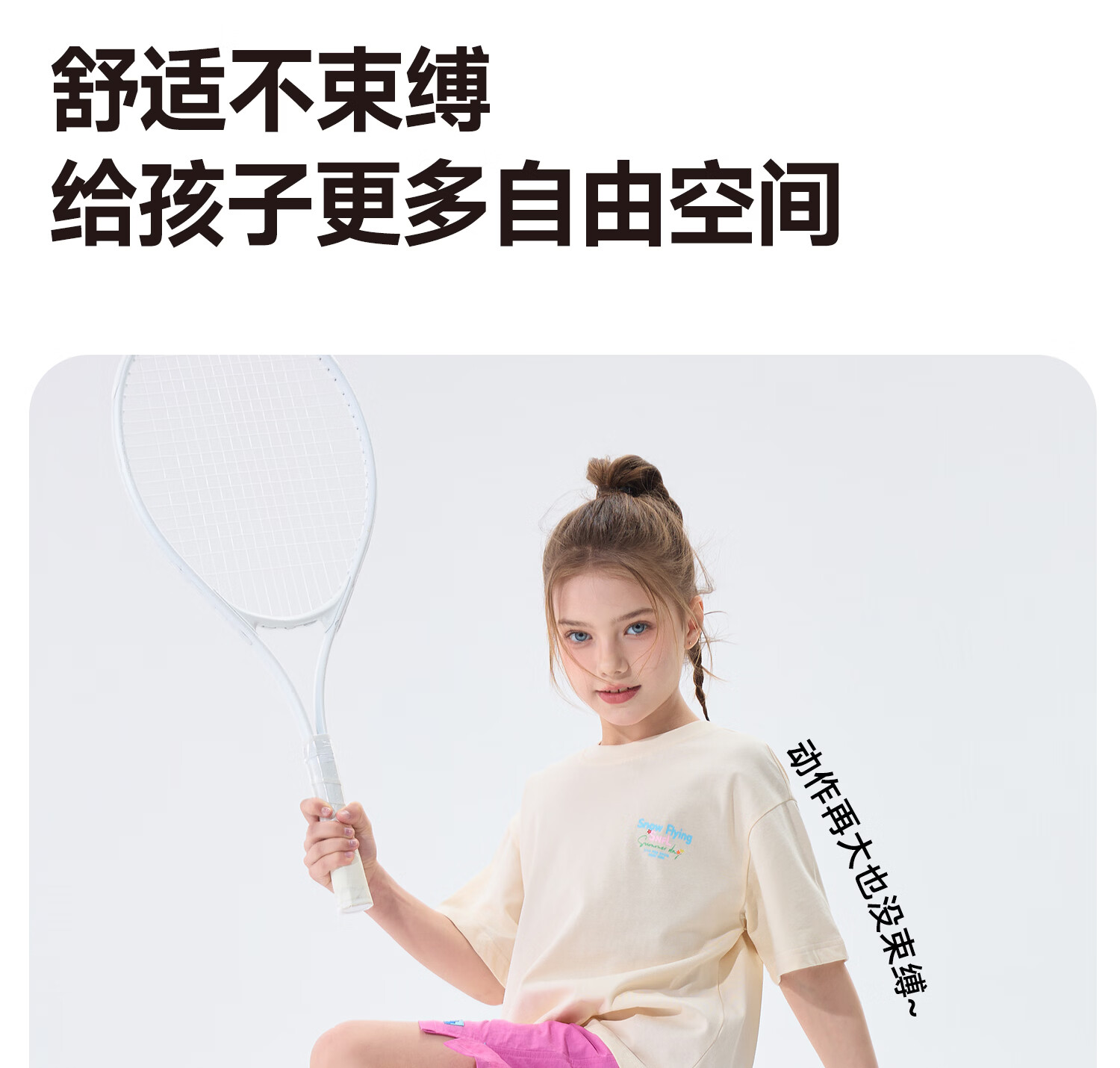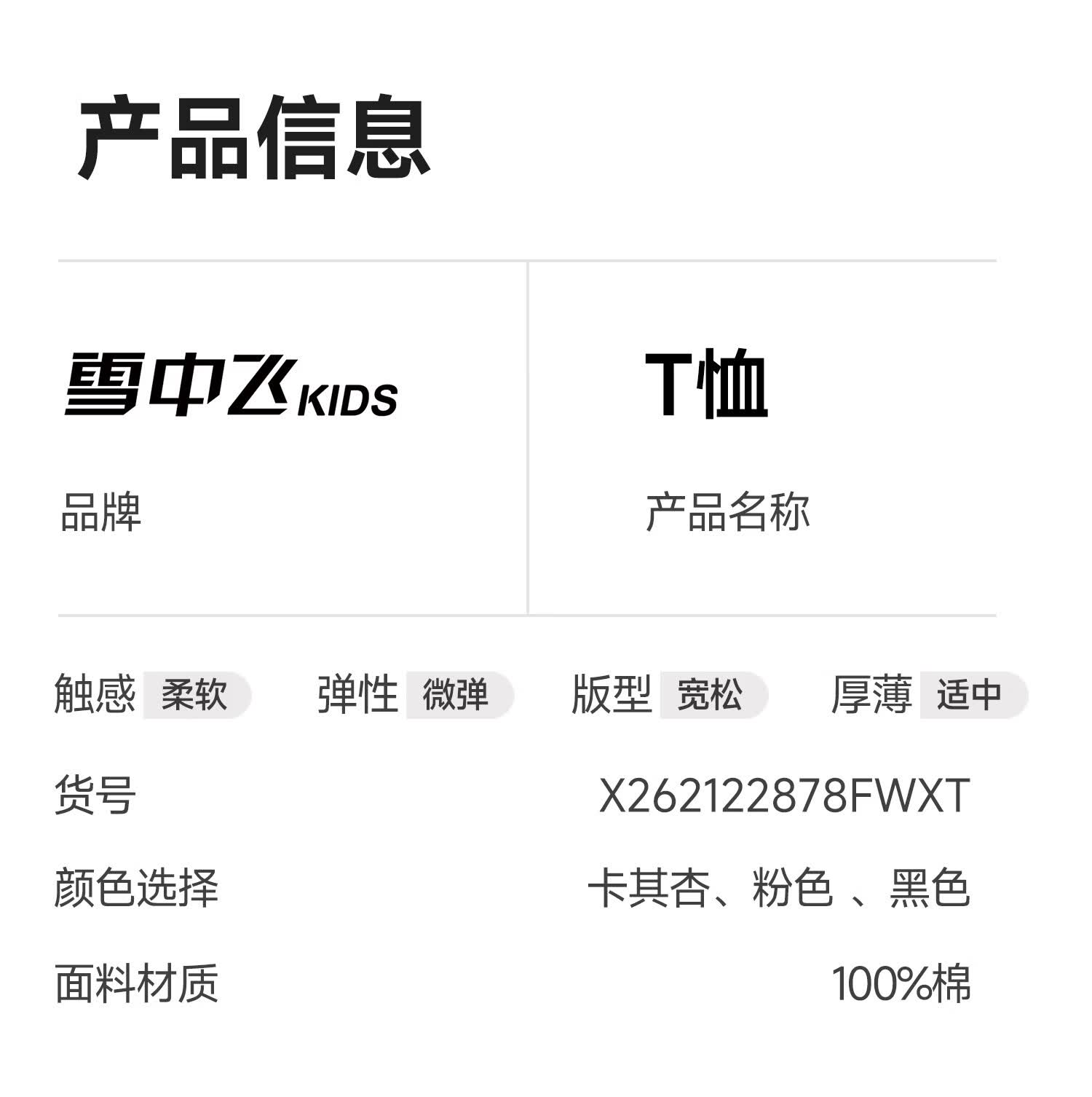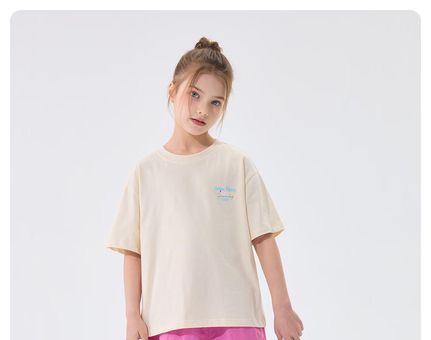 雪中飞(SNOWFLYING)儿童短袖2026夏季夏装男女童新款纯棉休闲运动上衣打底衫 卡其杏 140