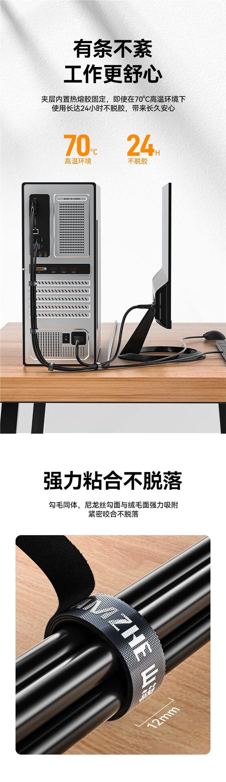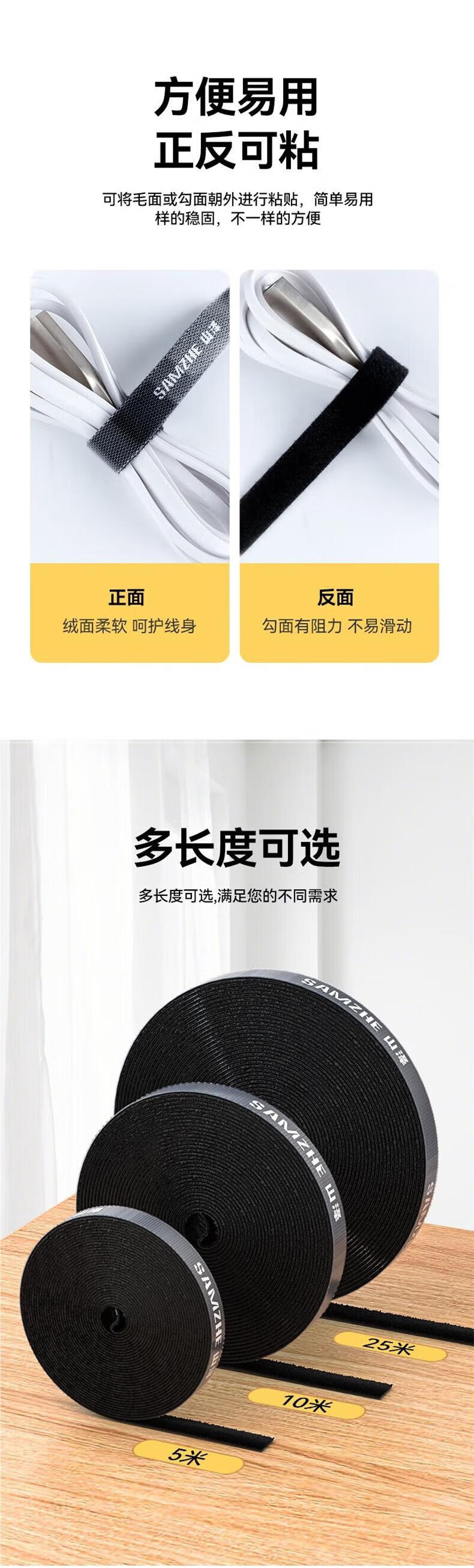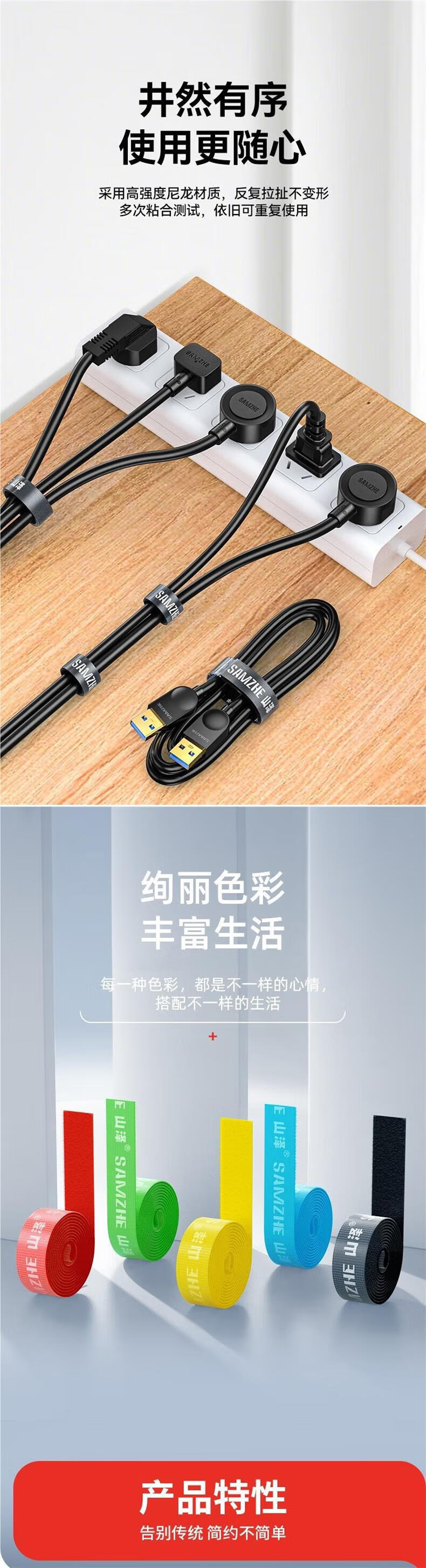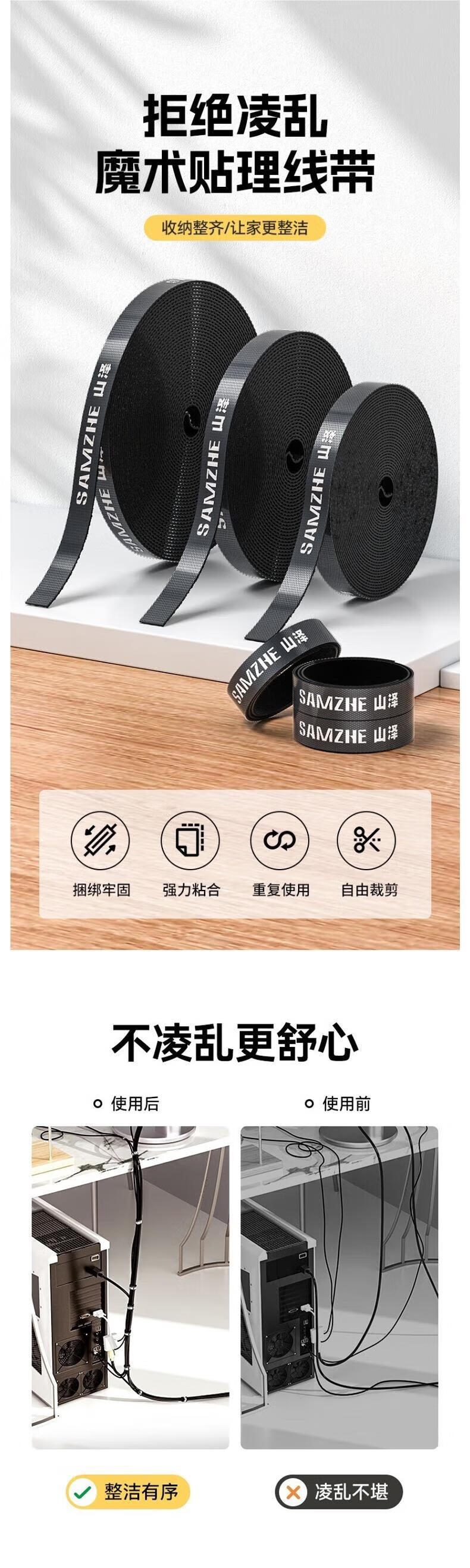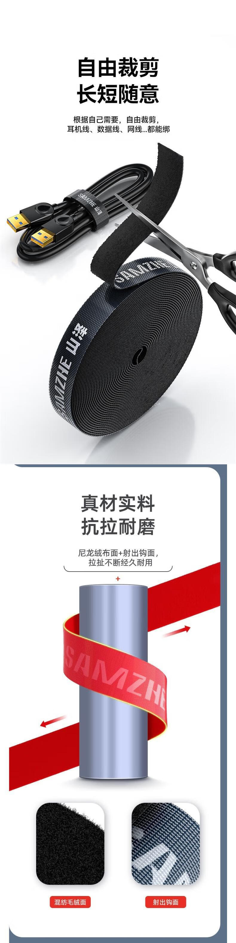 山泽【甄选好物】 电脑扎线带 自由裁剪束线带 背靠背魔术贴 线缆收纳固定整理 可裁剪魔术贴【1米】红色 MST-10