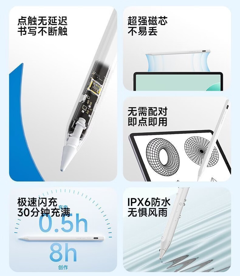 适用华为平板手写笔MatePad11.5S/Air/Pro通用磁吸触控笔 电容笔+防水+磁力+笔套4个+续航