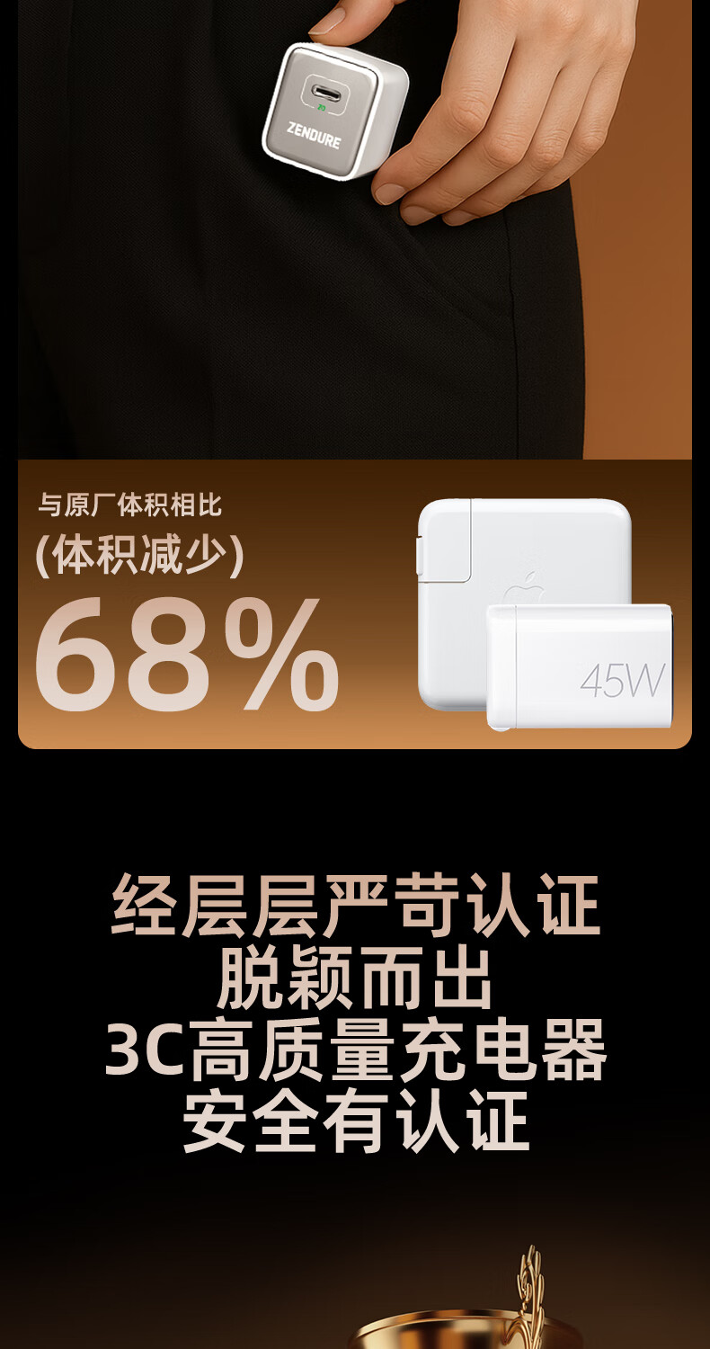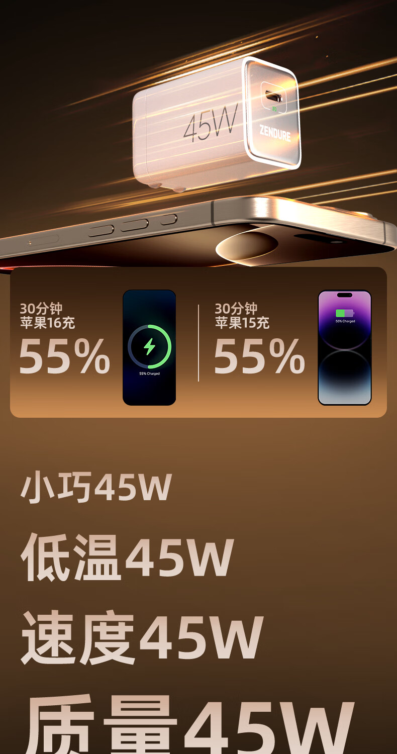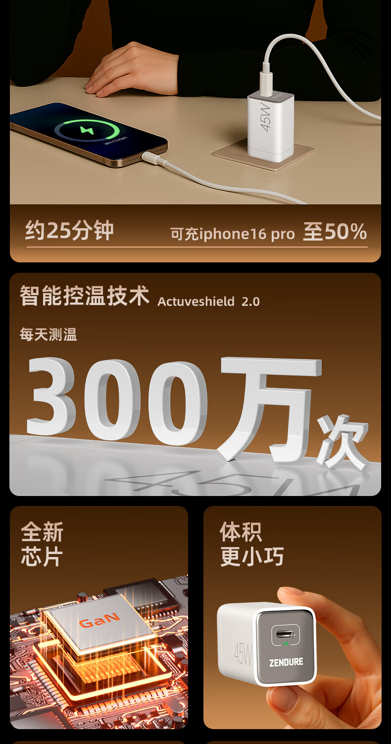 ZENDURE征拓 45w 氮化镓充电器USB-C口适用苹果16充电器PD快充iPhone17 iPad 华为mate60Pro安卓手机快充 【3C认证】45W Type-C 快充 白色