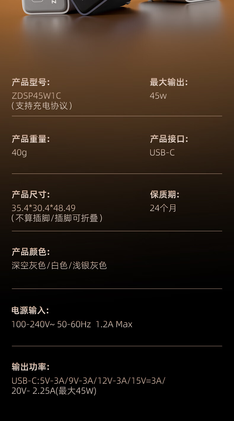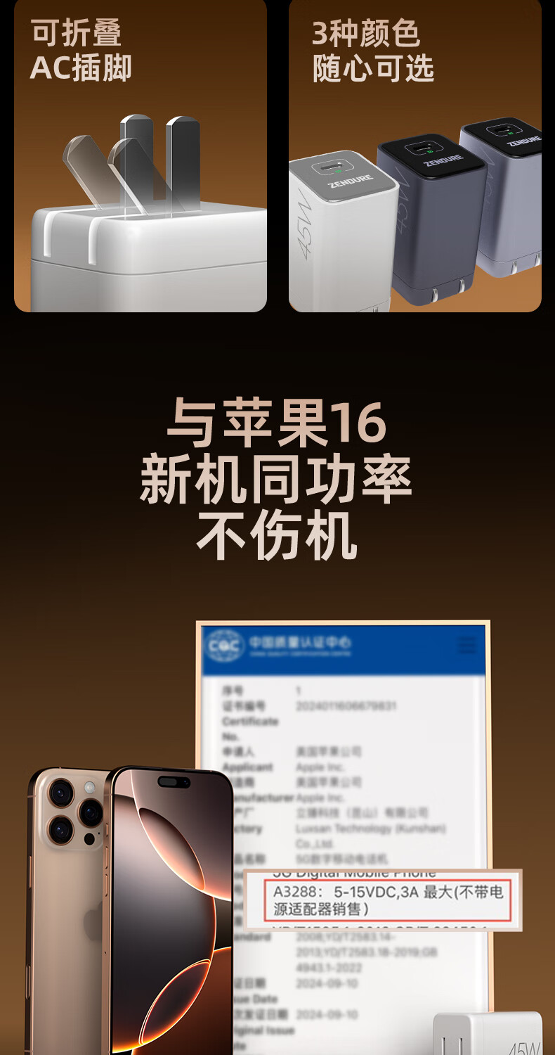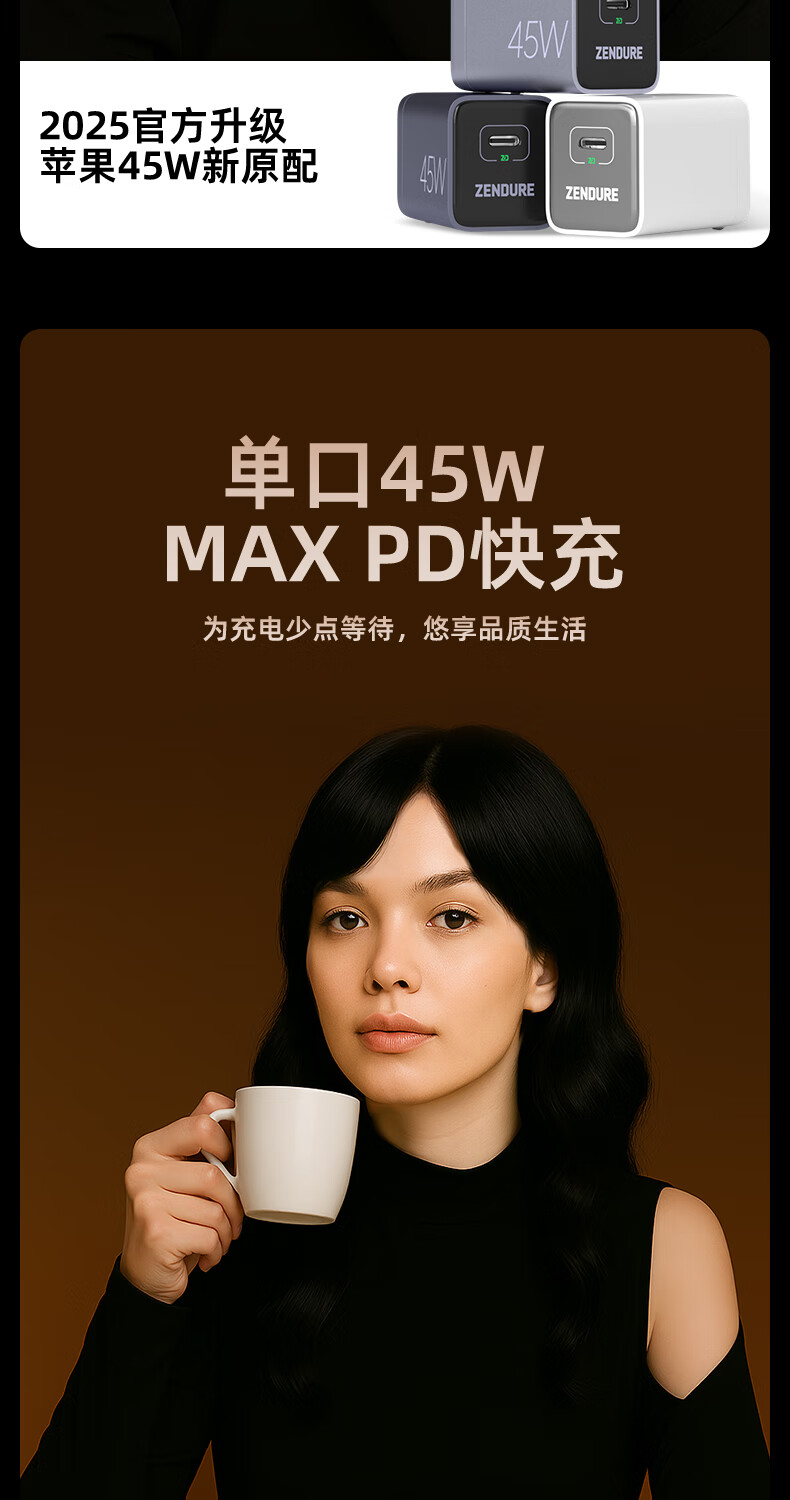 ZENDURE征拓 45w 氮化镓充电器USB-C口适用苹果16充电器PD快充iPhone17 iPad 华为mate60Pro安卓手机快充 【3C认证】45W Type-C 快充 白色